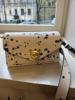 Beautiful handbag for all my daily items. Unique colour outside, with solid black leather lining and sides. Fits my credit card holder, iphone, and more. I call it my “dalmatian “ handbag. Love it. Thank you.