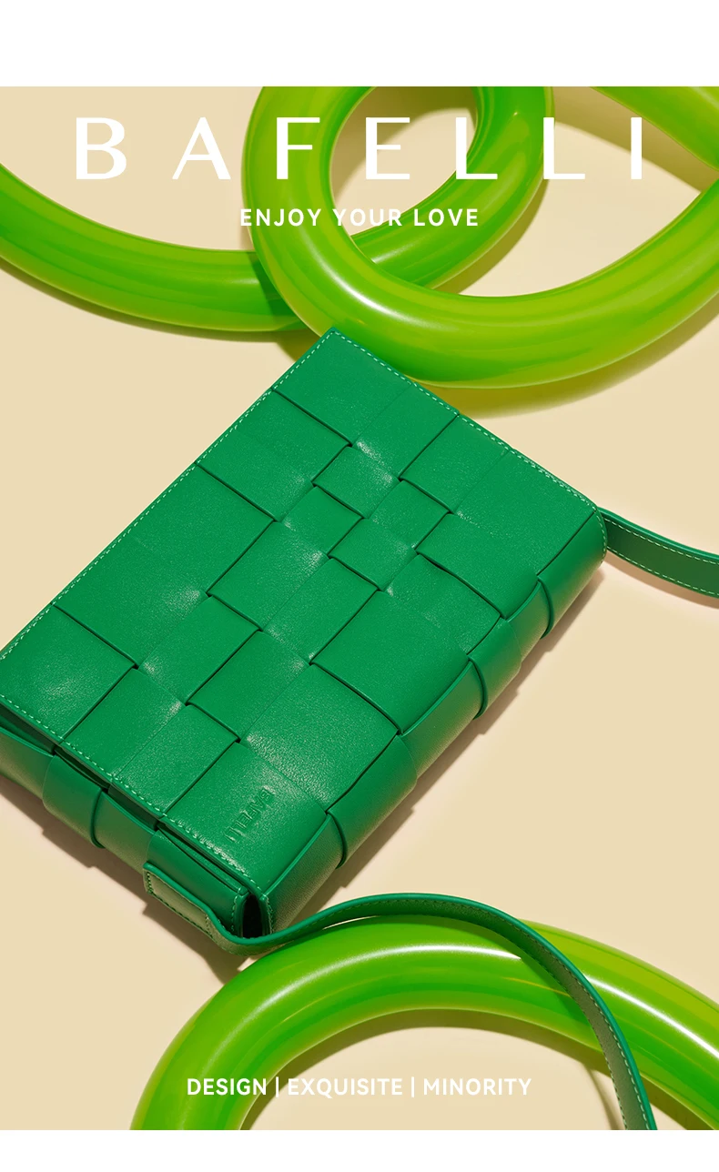 BAFELLI HANDBAG 2025 NEW WOVEN FASHION GENUINE LEATHER BOX BAG SHOULDER CROSSBODY PURSE WOMEN’S FEMALE LUXURY BRAND CLASSICAL