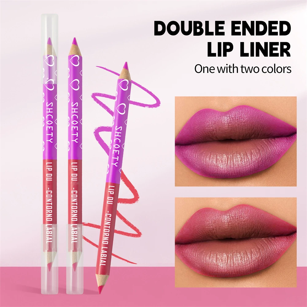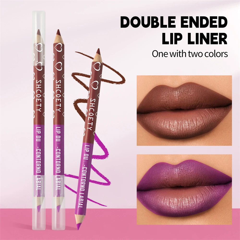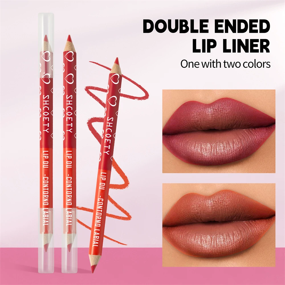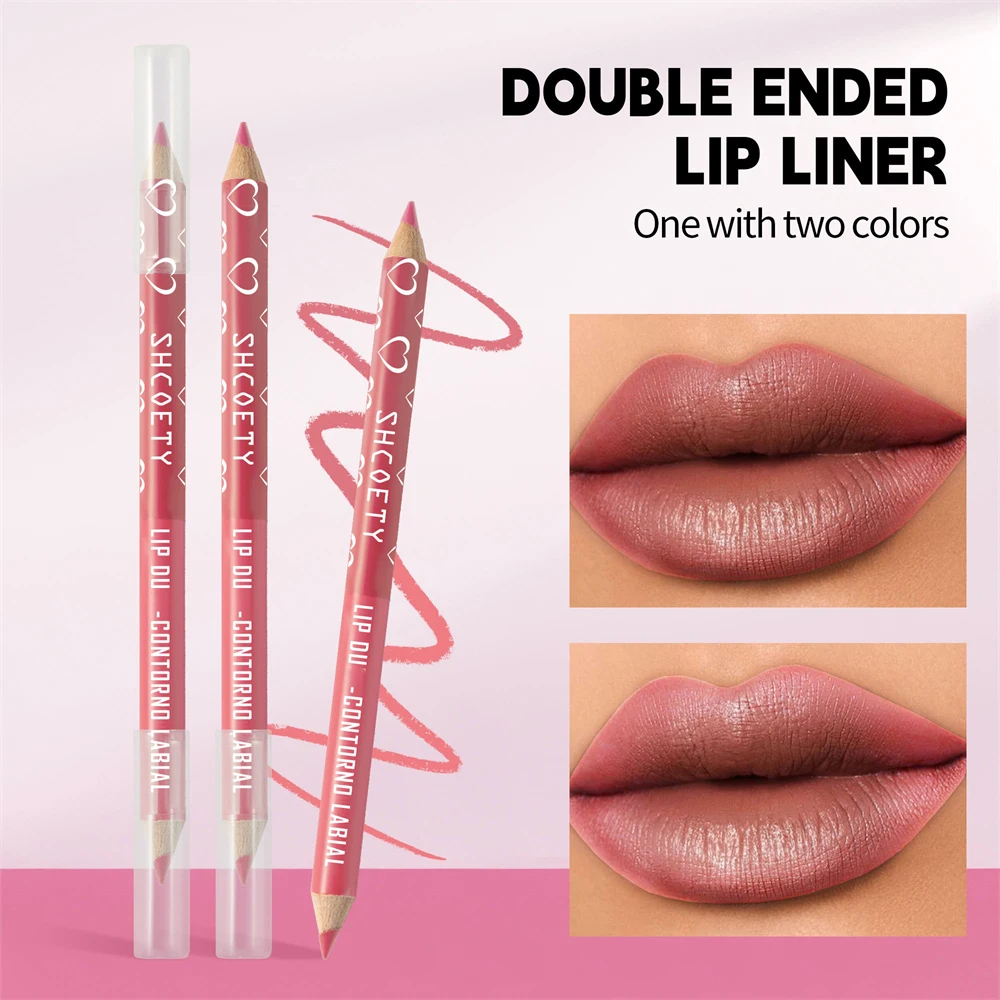 Bicolor Nude Lipliner Pen Wooden Matte Gradient Labial Liner Waterproof Lasting Lipstick Pencil Durable Lip Outline Pen Makeup
