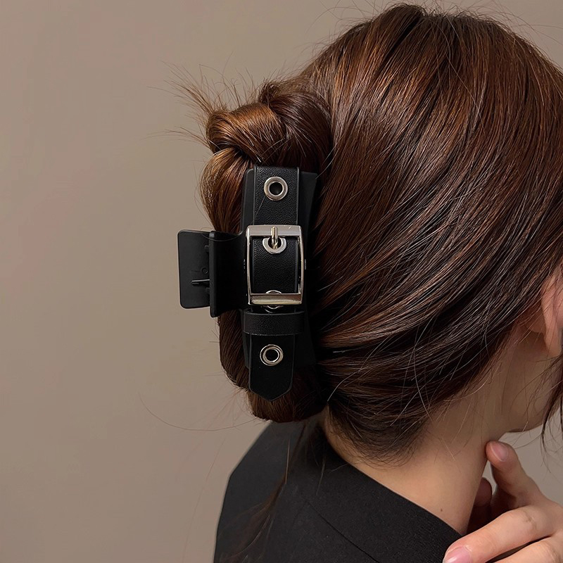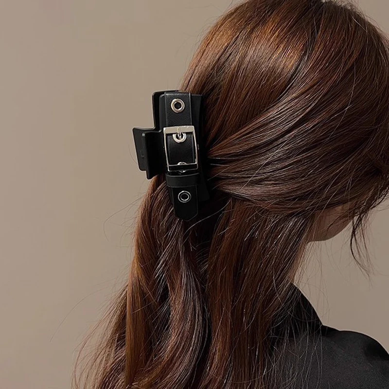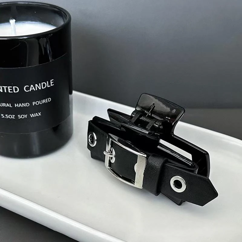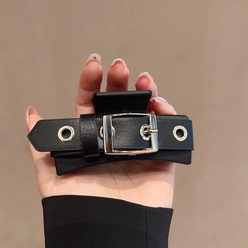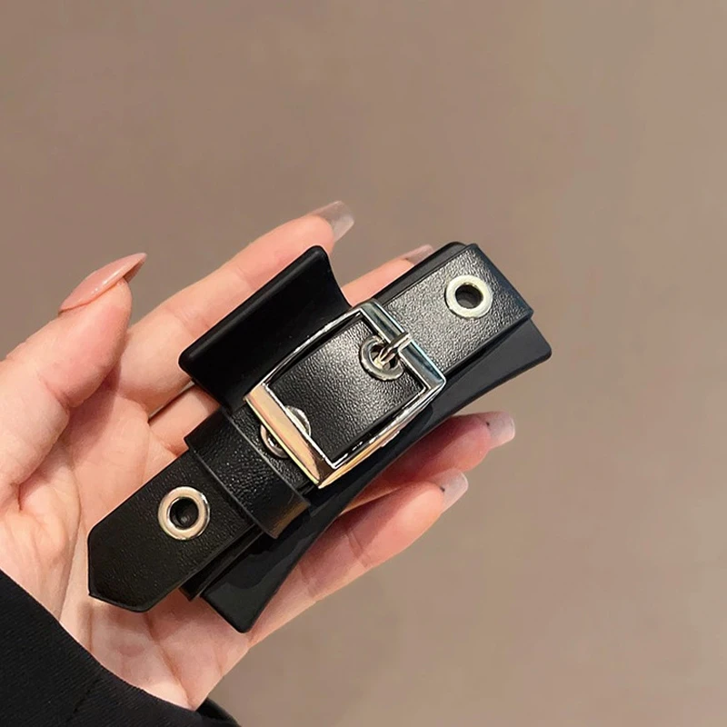 Black Leather Strap Square Novelty Hair Claw Punk Style Y2K Hair Accessories for Women Cool Shark Clip Unique Fashion Hairpin