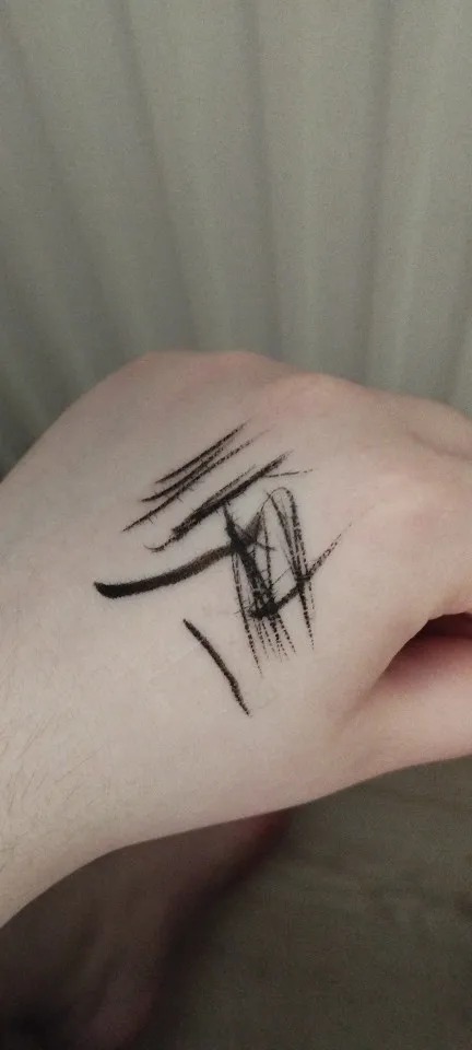 Everything is fine, but the package took the longest to arrive — about a month. It seems to be waterproof: if you don't rub it, it doesn't come off with soap. If you apply some force, it comes off, but not completely, about 50%. I tried washing it off with soap, facial cleanser, and foam. Overall, the result is visible in the photo. The only thing is that it's not yet clear how to wash it off the eyes later.
