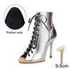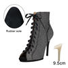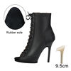 Black Sexy PU Platform Jazz Latin Custom Dance Shoes Lace-up High Heels Dance Shoes Soft-soled Short Boots Dance Boots for Women