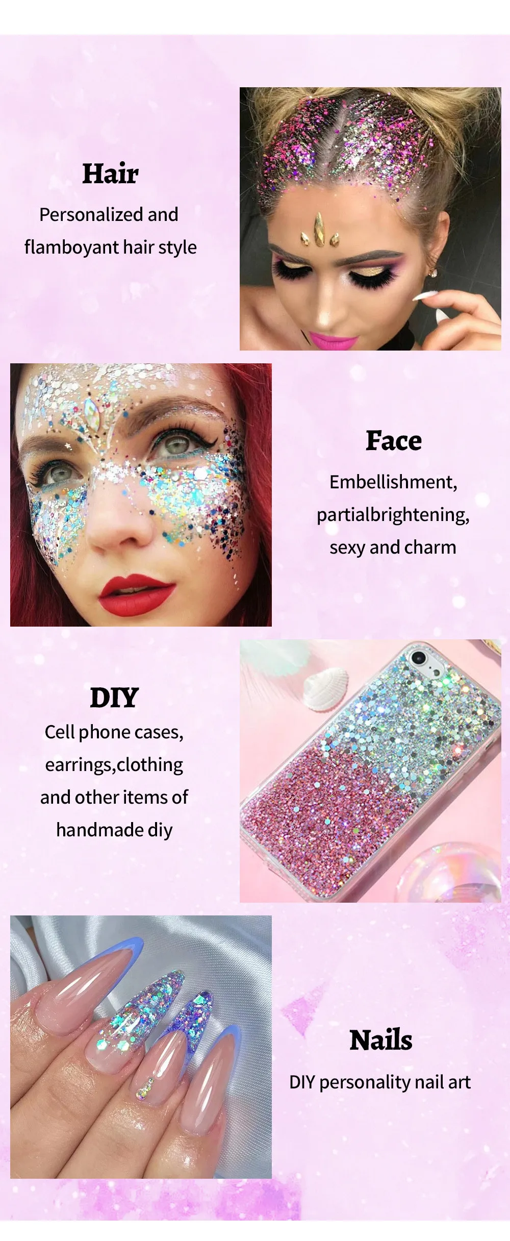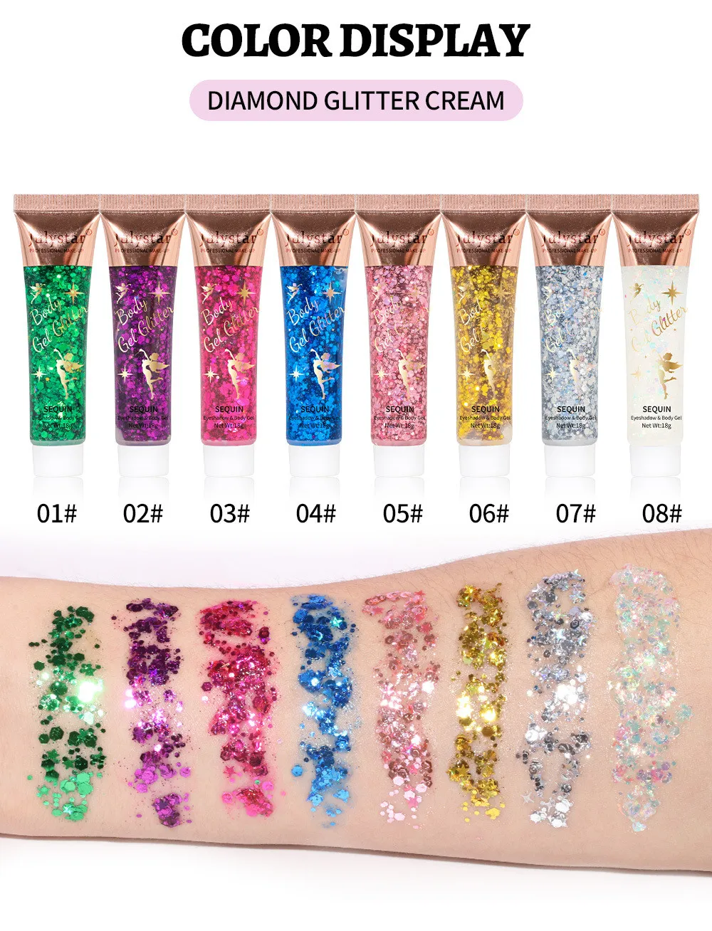 The glitter is just a bomb. I took it to the garden for my daughter. For holidays and visitors it is applied to the area near the eyes. They even applied it to the hairstyle. The sparkles are large and small. I recommend. They wait a long time for us. I tried it in the photo for feedback.