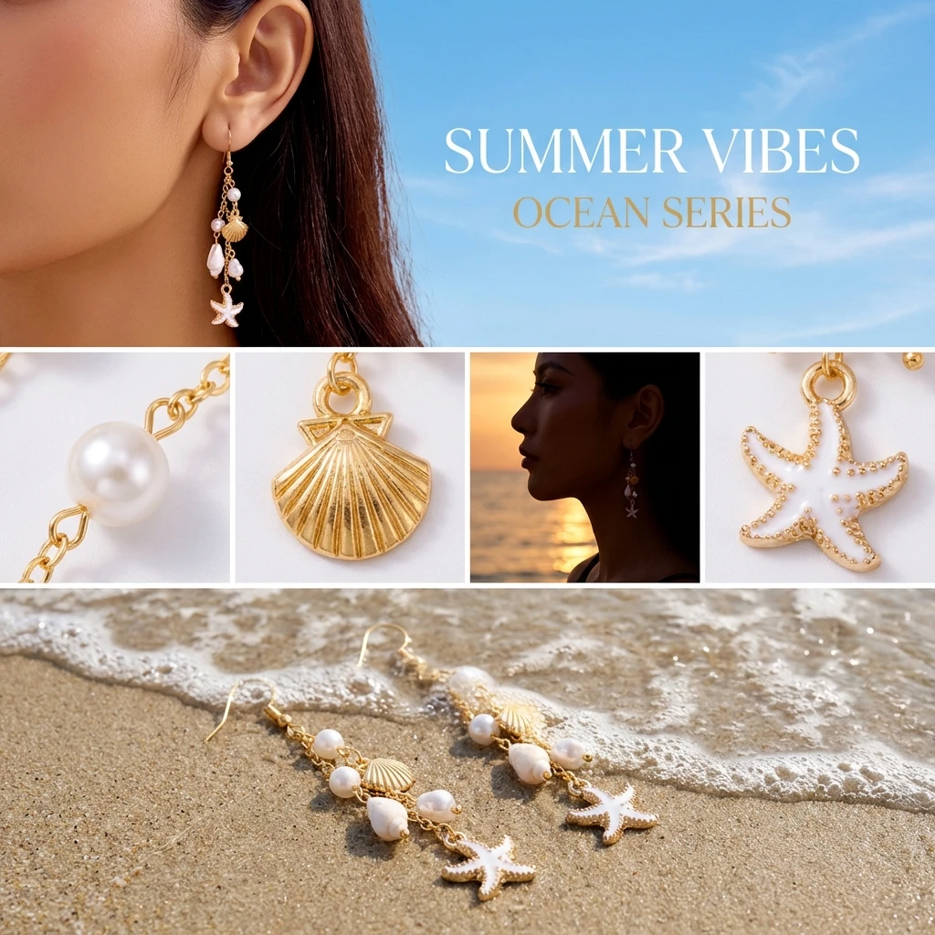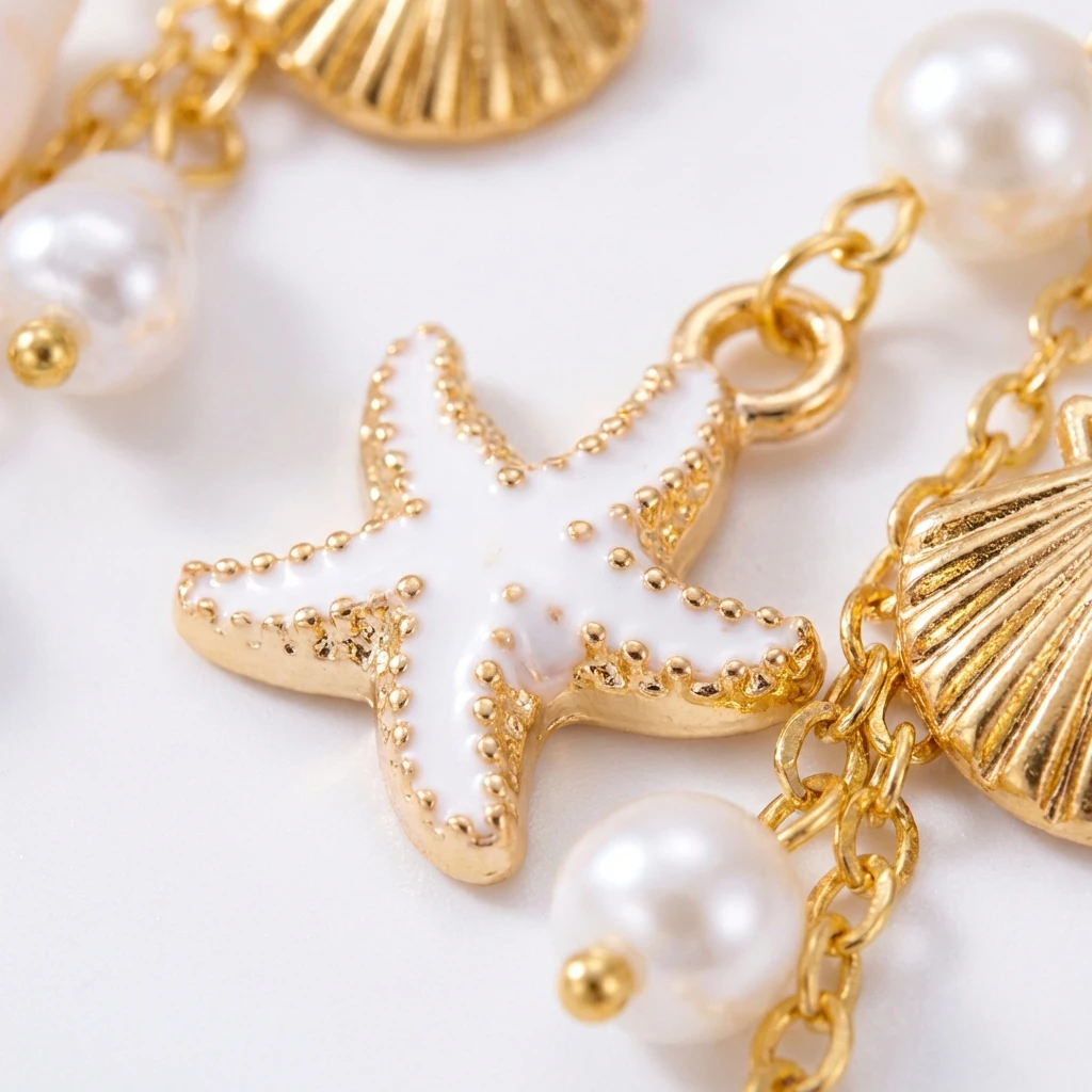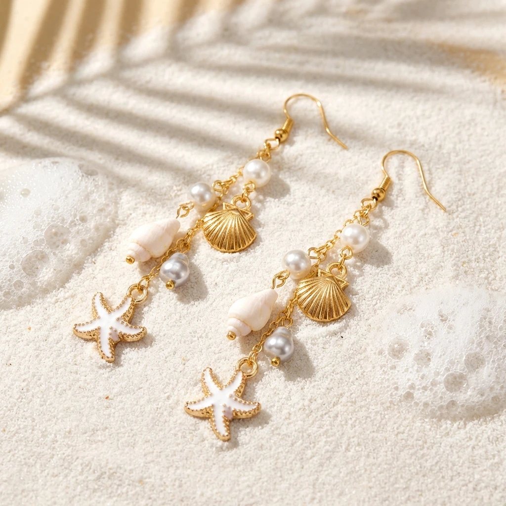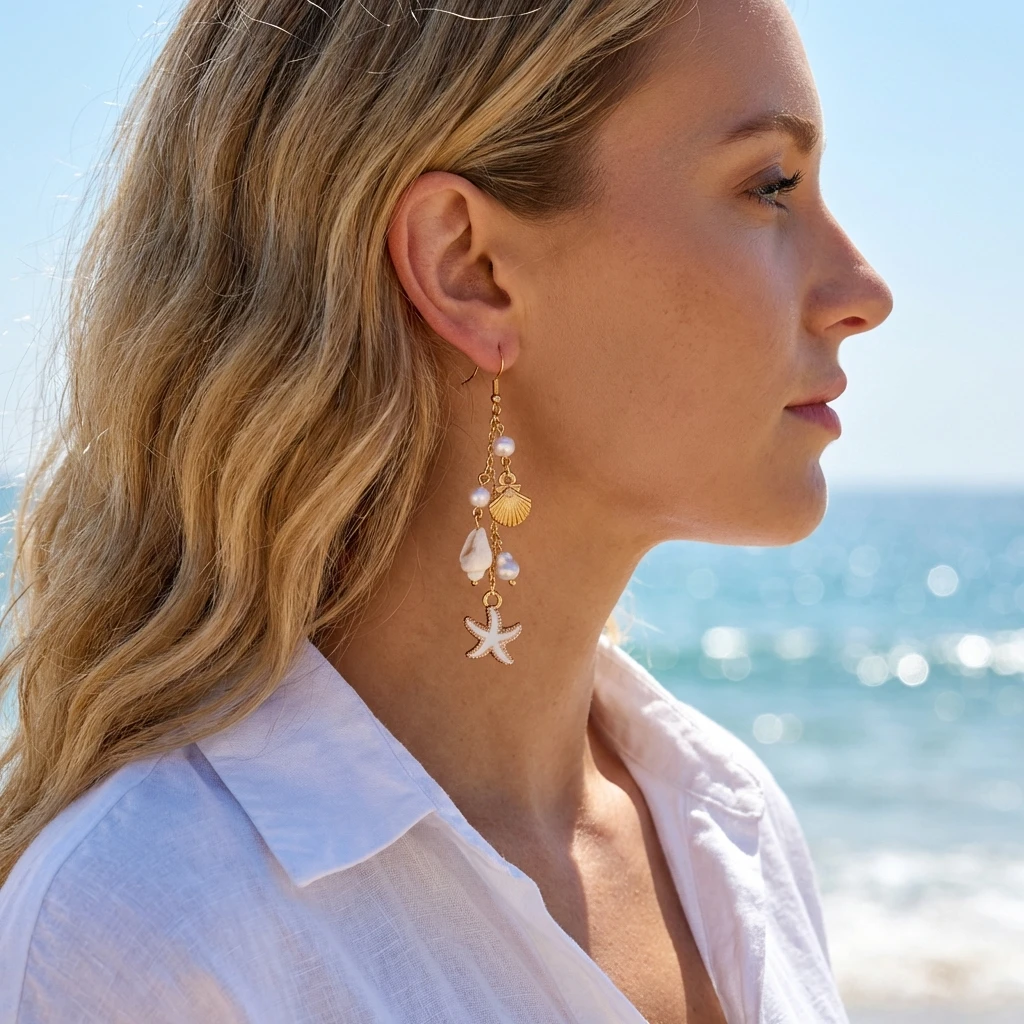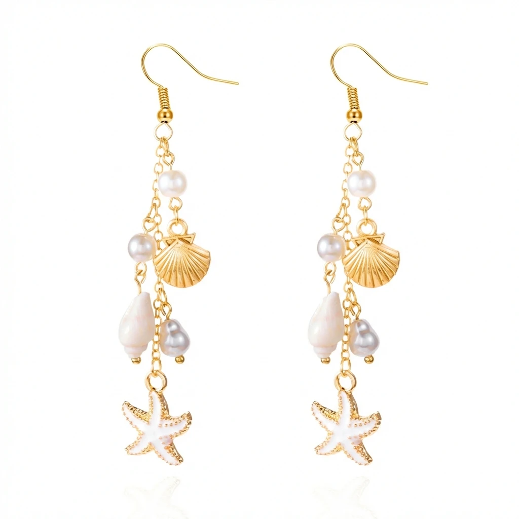 Inspired by the Bohemian Ocean Series, these earrings feature a unique starfish and conch shell pendant for a beachy vibe.