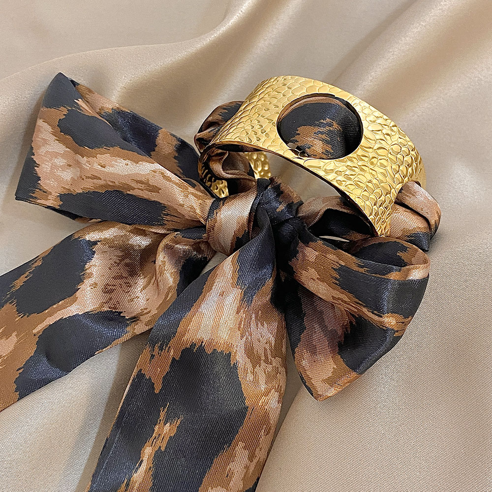 Boho Leopard Ribbon Braided Wrap Stainless Steel Cuff Bracelet for Women Trendy Gold Color Chunky Bangle Bracelets Jewelry Gifts