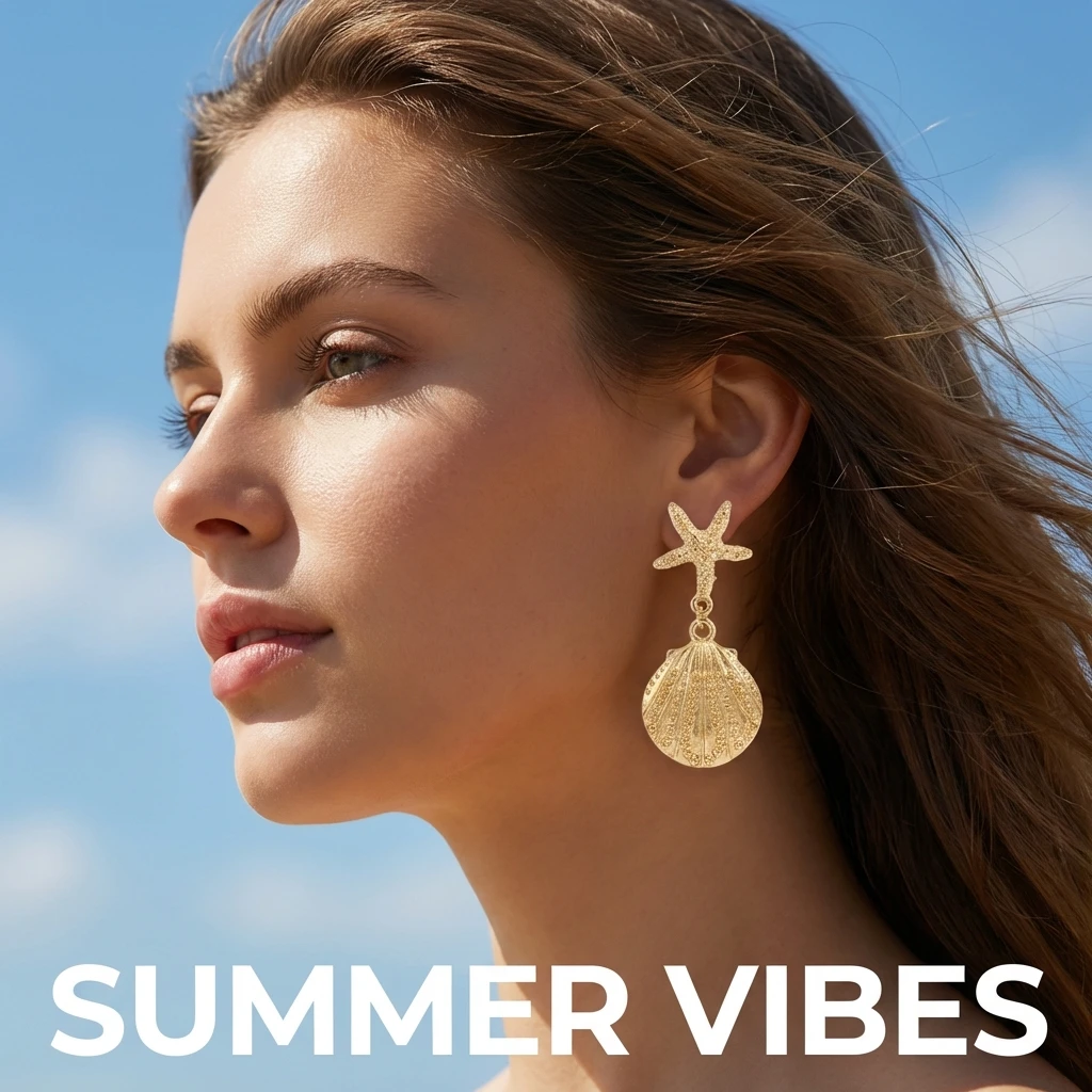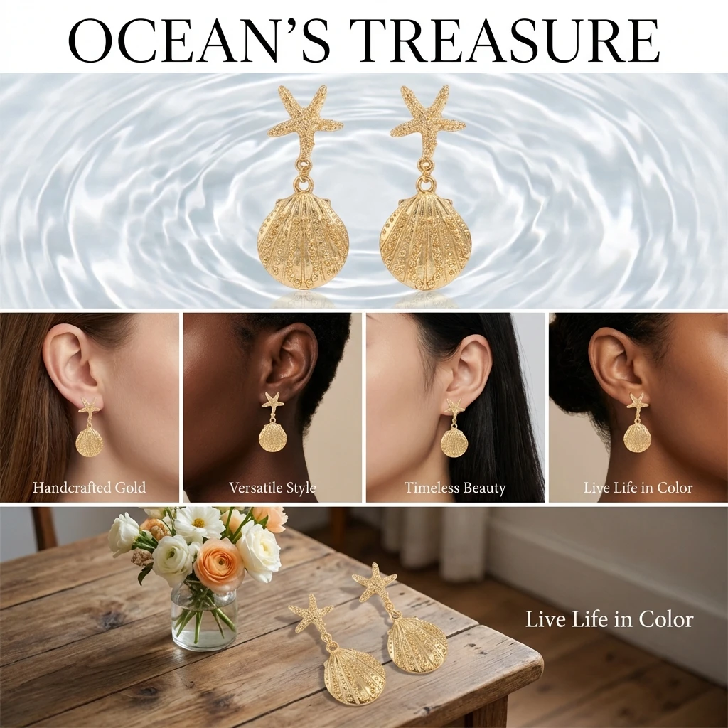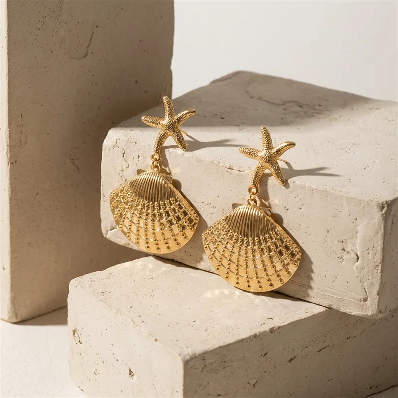 Exude coastal charm with these boho starfish shell pendant earrings, perfect for beachy vibes.