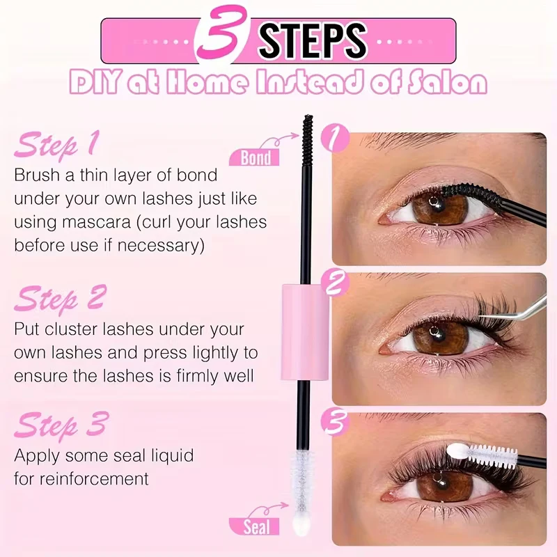 Bond & Seal Eyelash Glue 72 Hours 2-in-1 DIY Clustered Eyelashes Latex Free Waterproof for Sensitive Extension Glue Makeup Tools