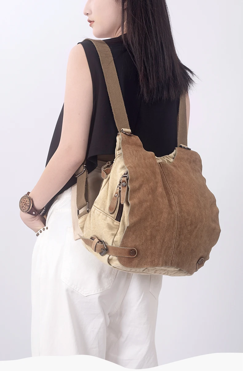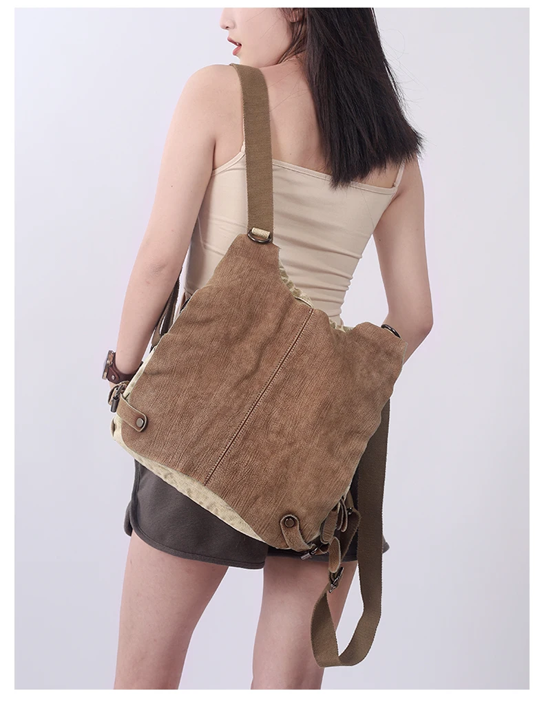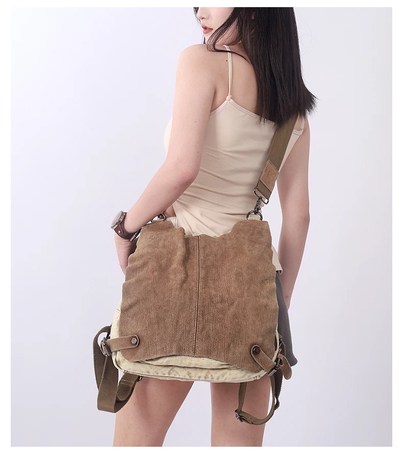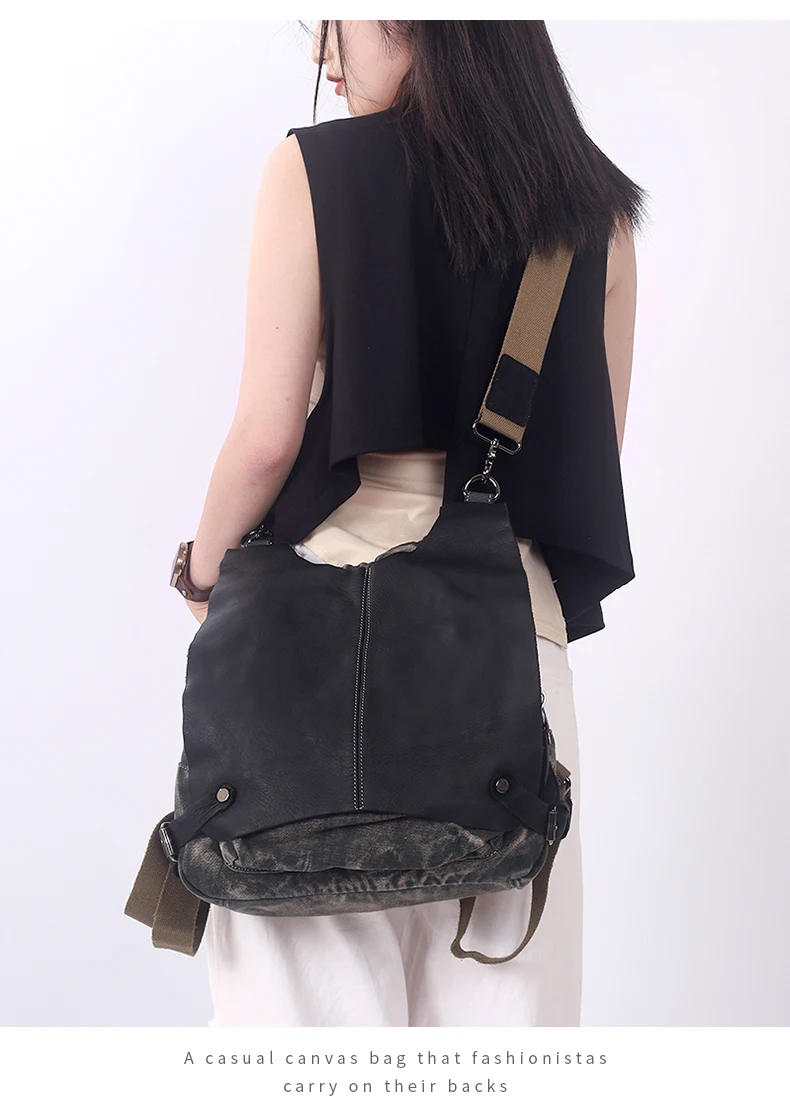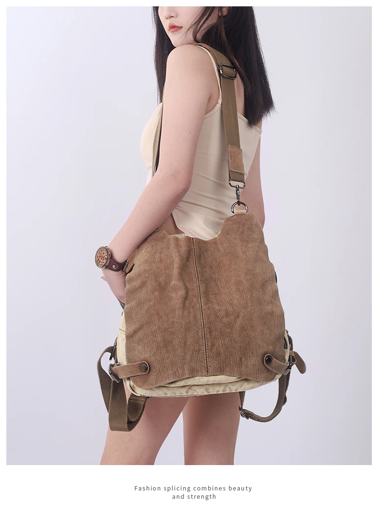 Canvas With Leather Women’s Backpack 2023 New Handbags Travel Bag Commuter College Students Bag Lady Shoulder Messenger Bags