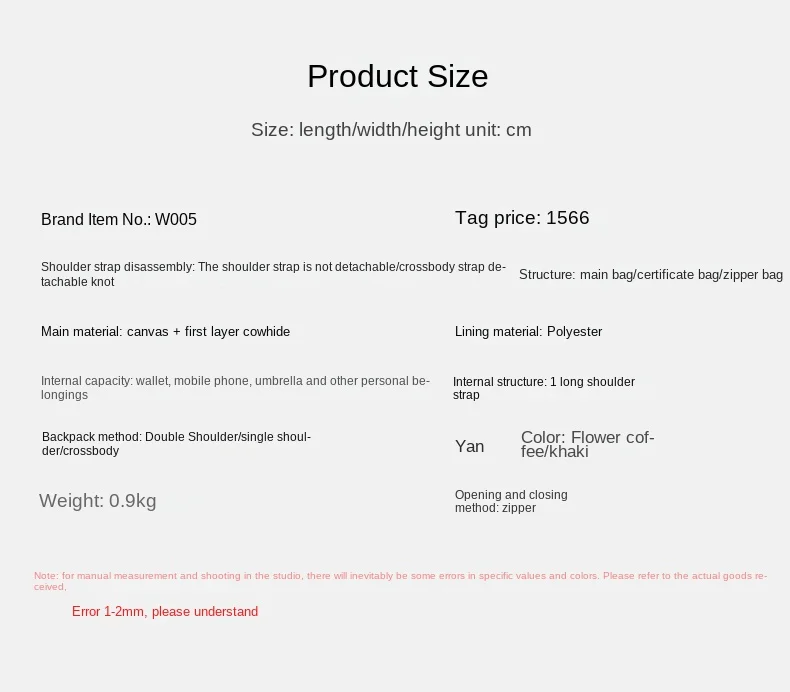 Material: Canvas With Leather