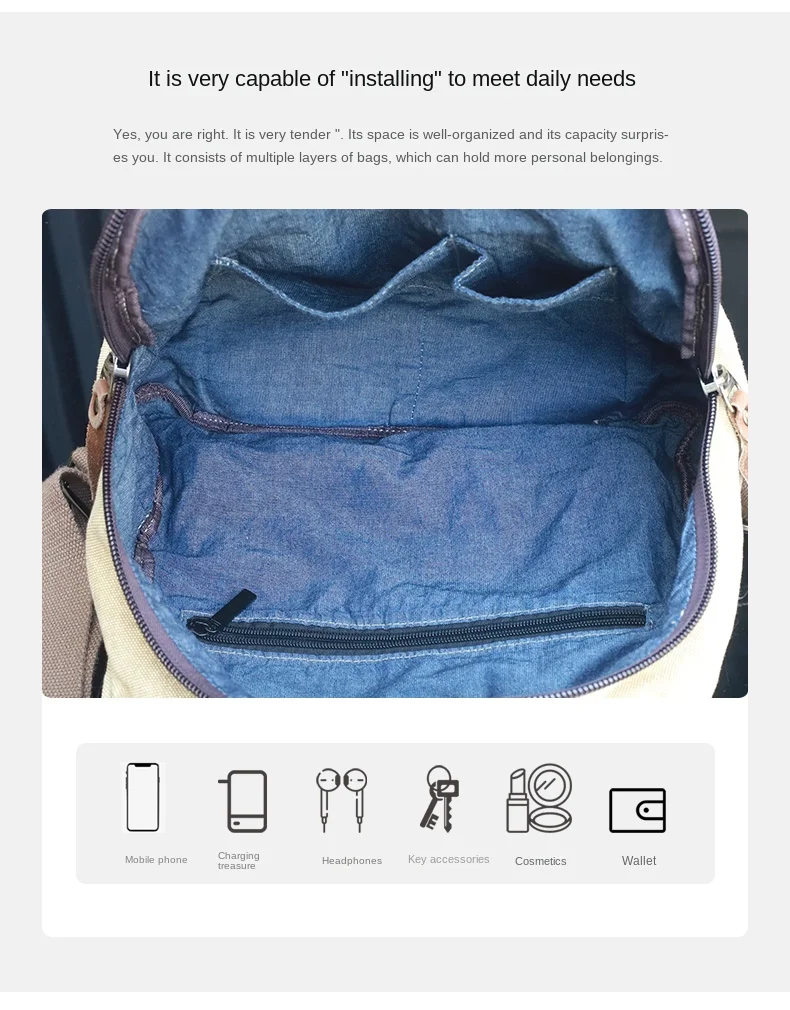 Structure: main bag, zipper bag, mobile phone bag