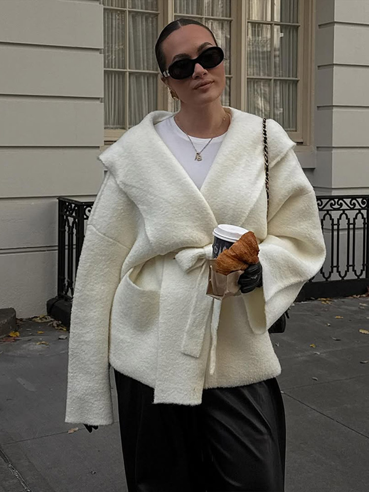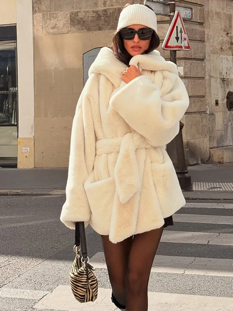Casual Belted Hooded Woolen Women’s Coat Solid Thicken Soft Lapel Loose Full Sleeves Lady Warm Coats 2025 Autumn Winter Outwears