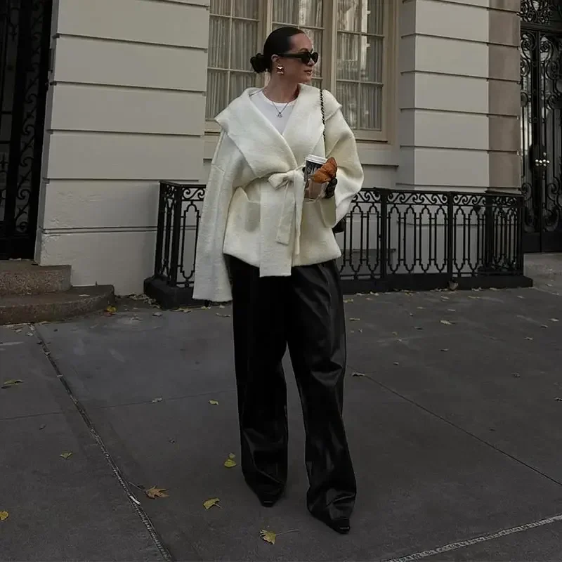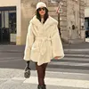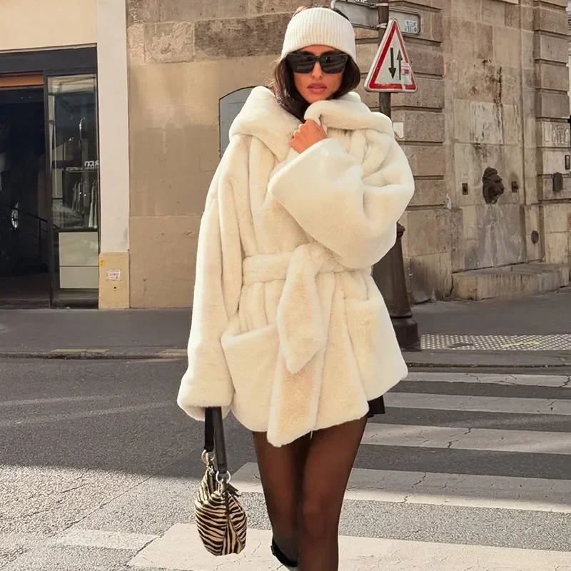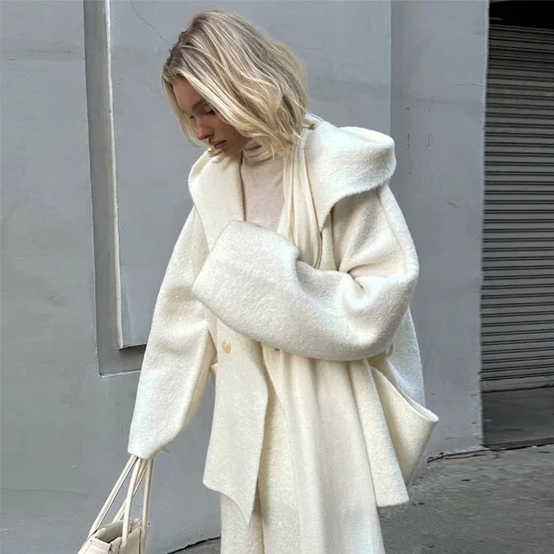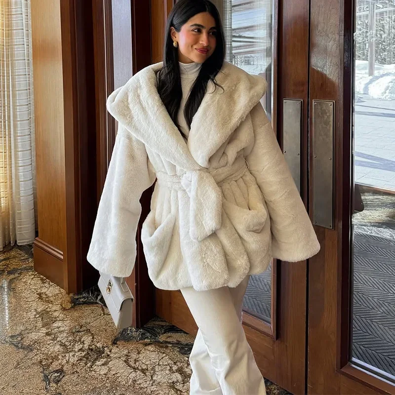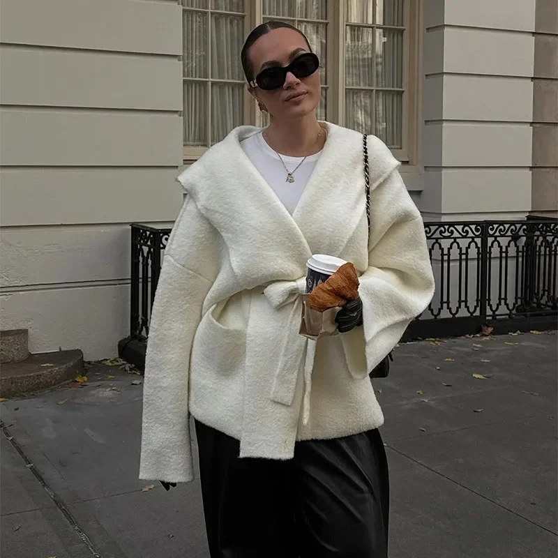 Casual Belted Hooded Woolen Women’s Coat Solid Thicken Soft Lapel Loose Full Sleeves Lady Warm Coats 2025 Autumn Winter Outwears