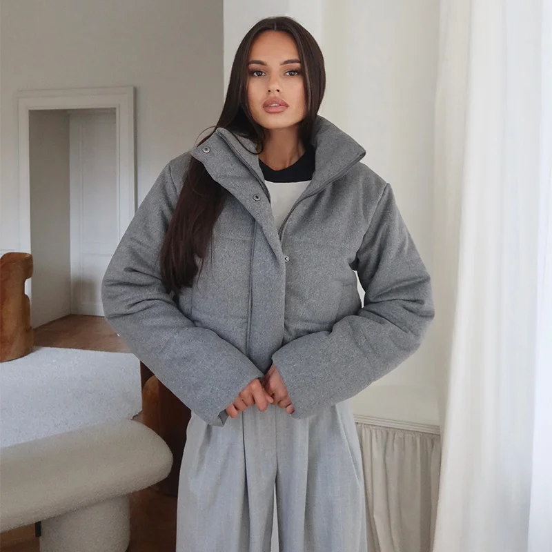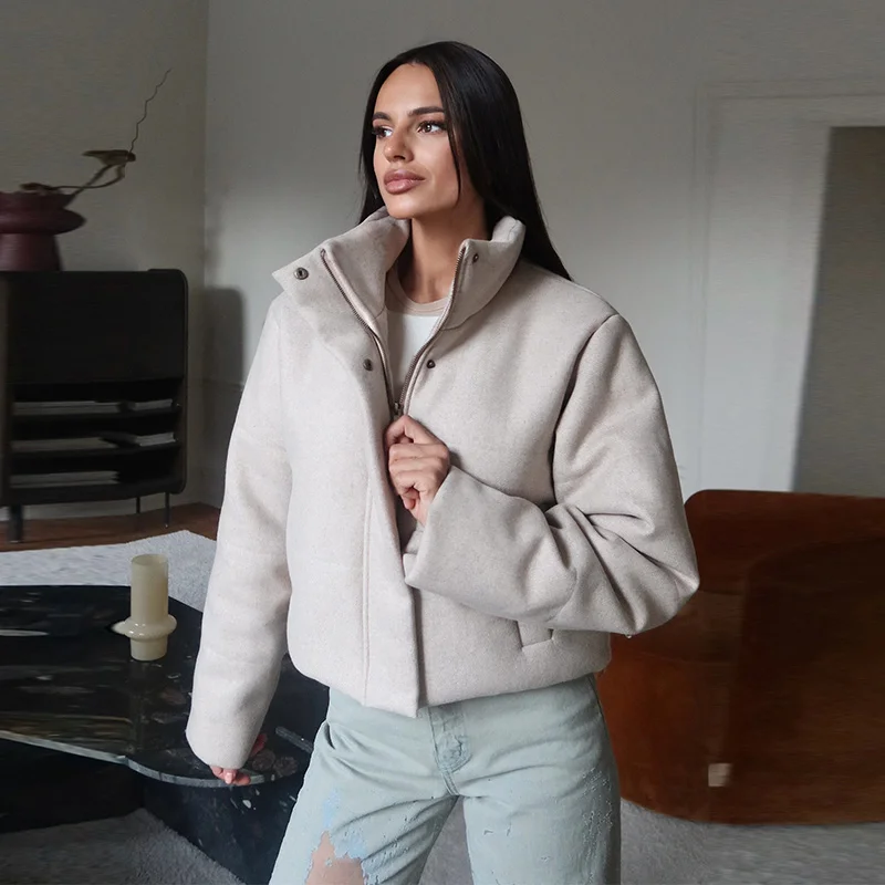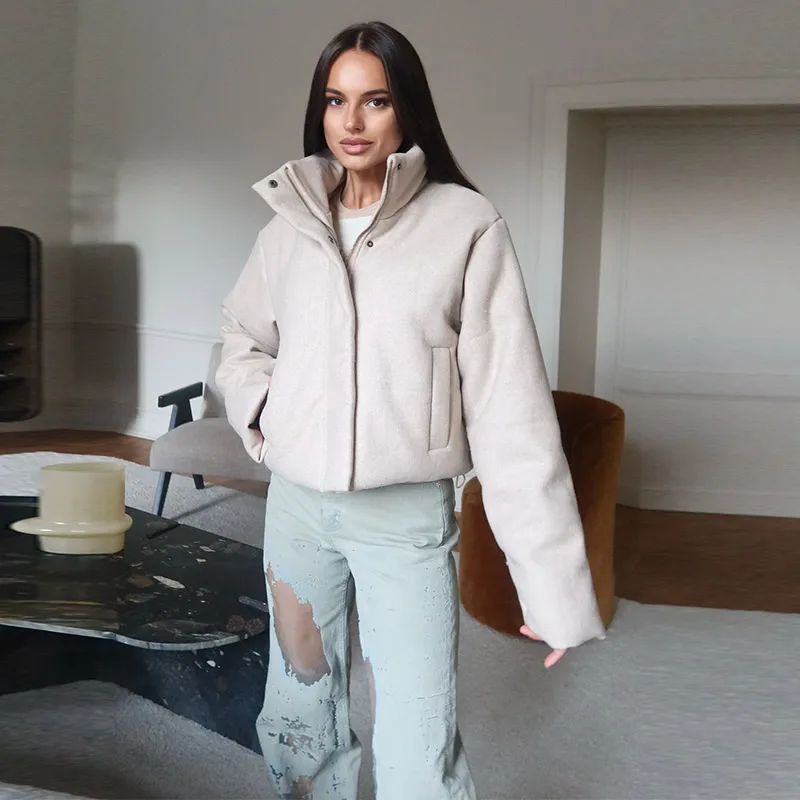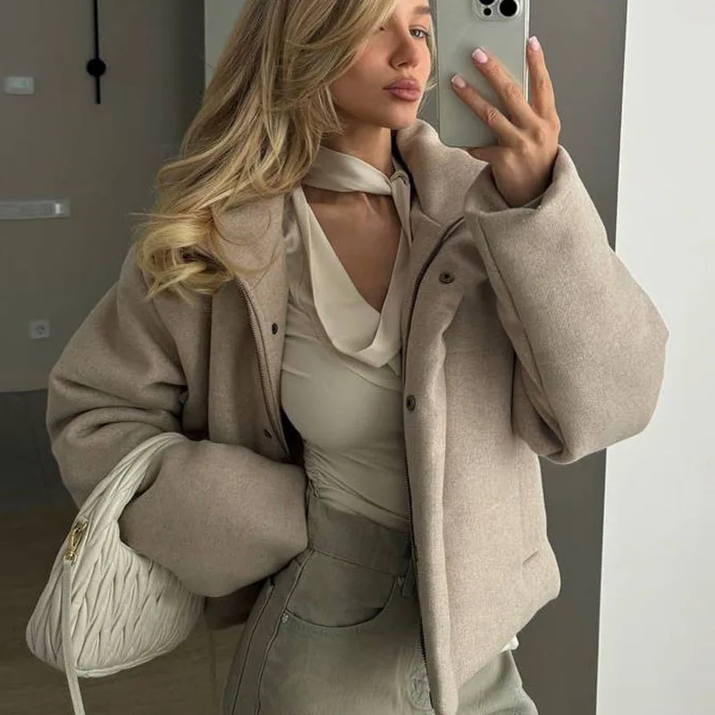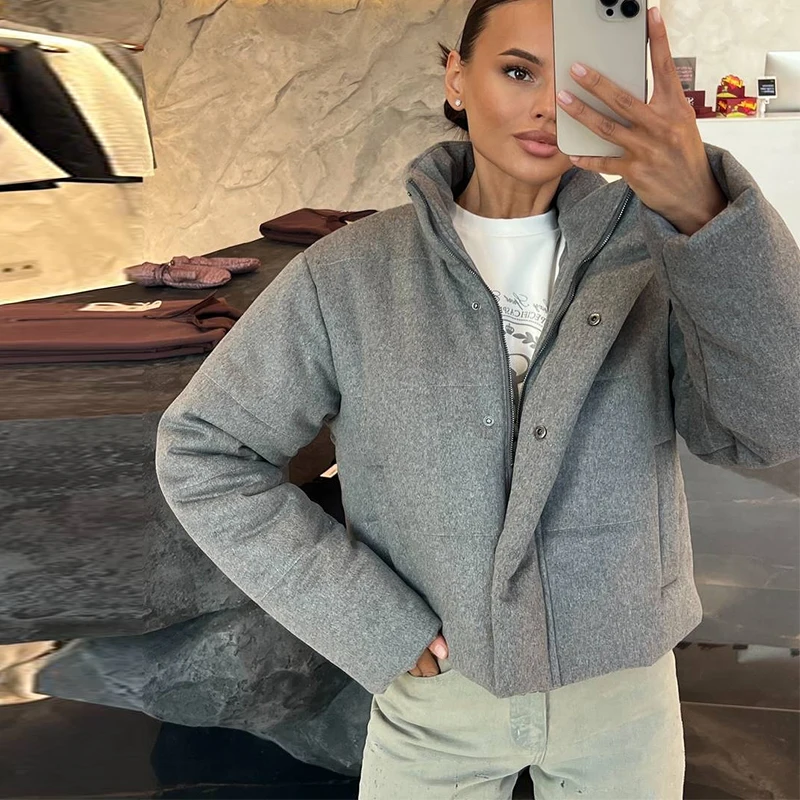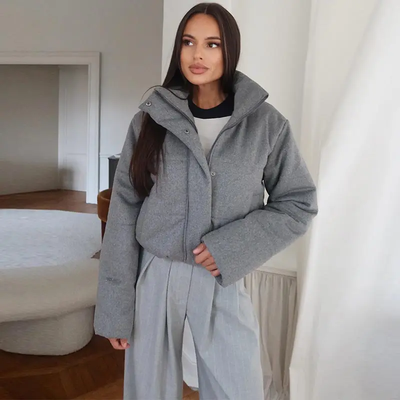 Casual Hooded Cotton-padded Coat Women Solid Single Breasted Zipper Cropped Coats Female Autumn Winter Fashion Lady Warm Outwear