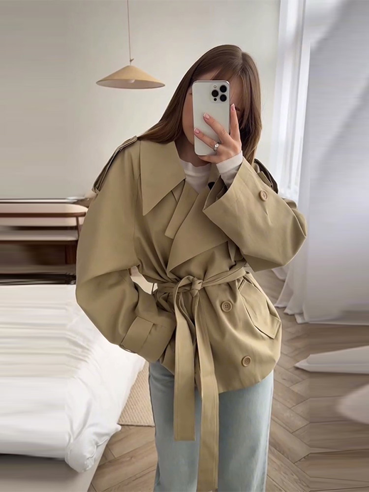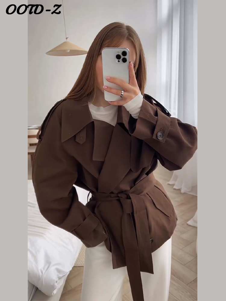 Casual Lace Up Jackets Women Loose V-neck Long Sleeves Solid Buttons Coats Female 2025 Autumn Fashion Office Lady Outwears