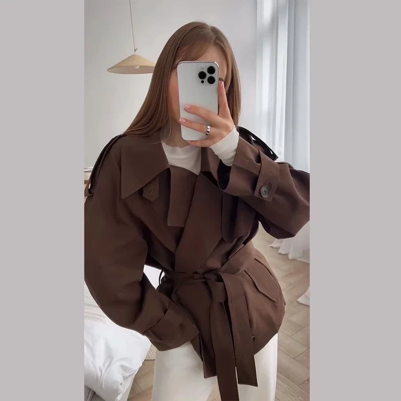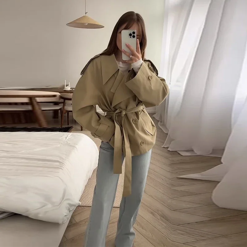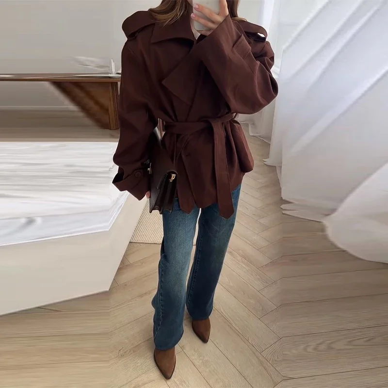Casual Lace Up Jackets Women Loose V-neck Long Sleeves Solid Buttons Coats Female 2025 Autumn Fashion Office Lady Outwears