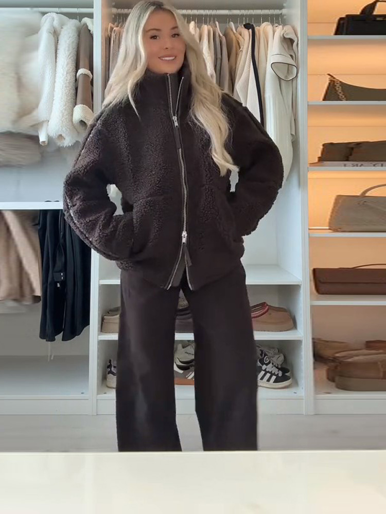 Casual Lamb Wool Zipper Jacket Women Solid Loose Full Sleeves Stand Collar Pockets Coats Female Autumn Winter Warm Lady Outwears