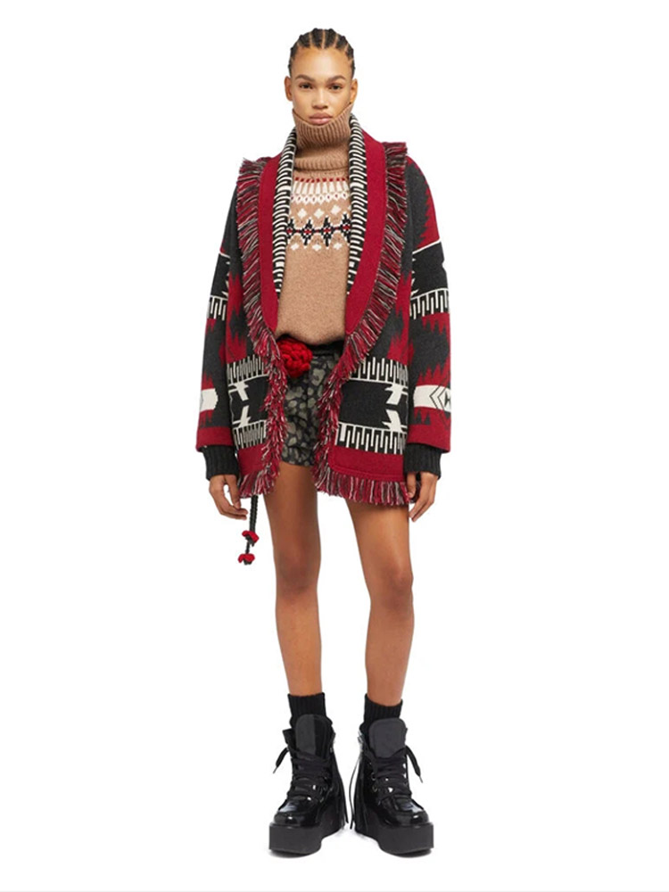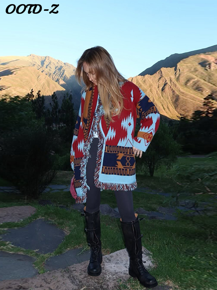 Casual Patterned Tassel Knitted Cardigan Women Chic Lace Up V-neck Full Sleeves Coats Female 2025 Autumn Fashion Lady Outwears