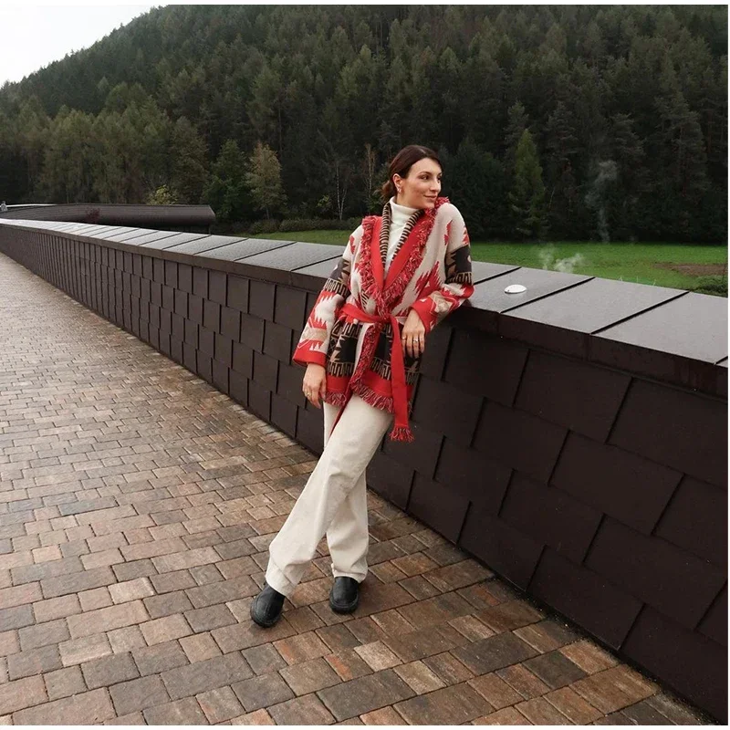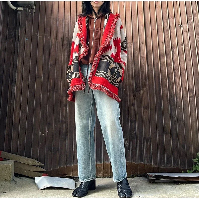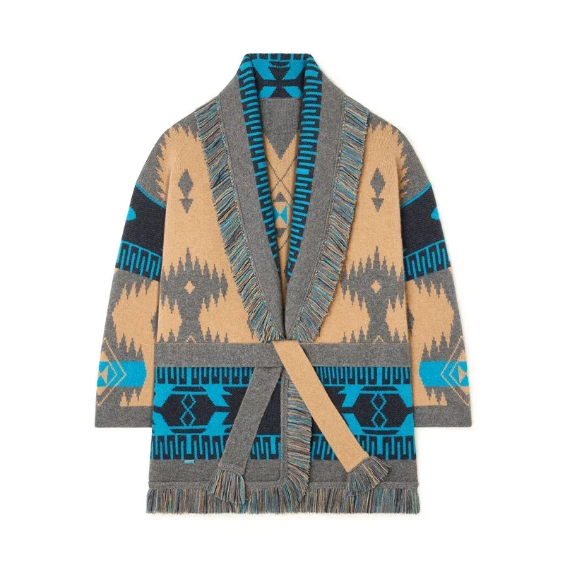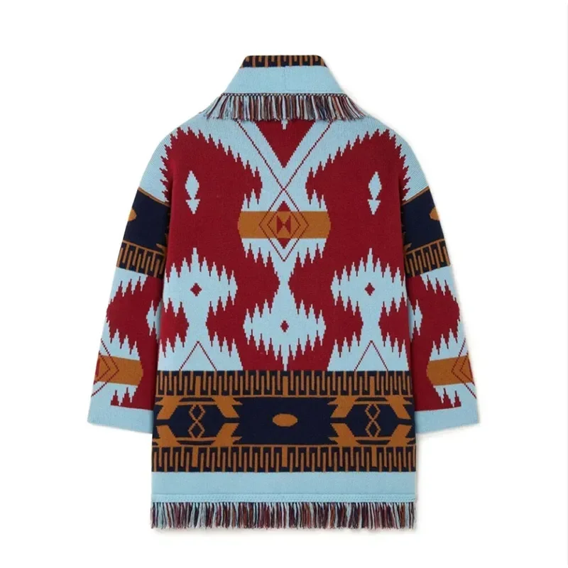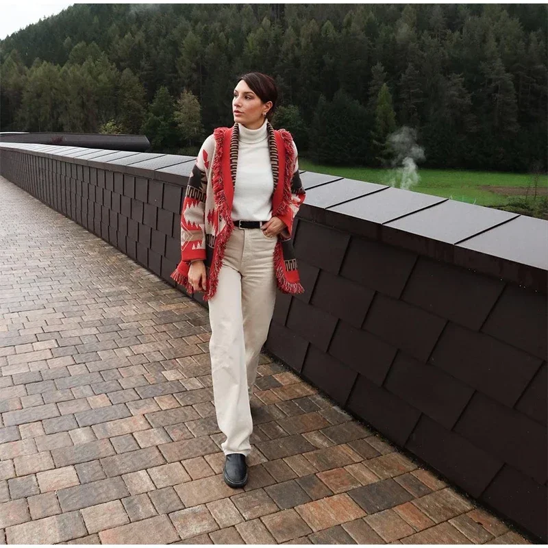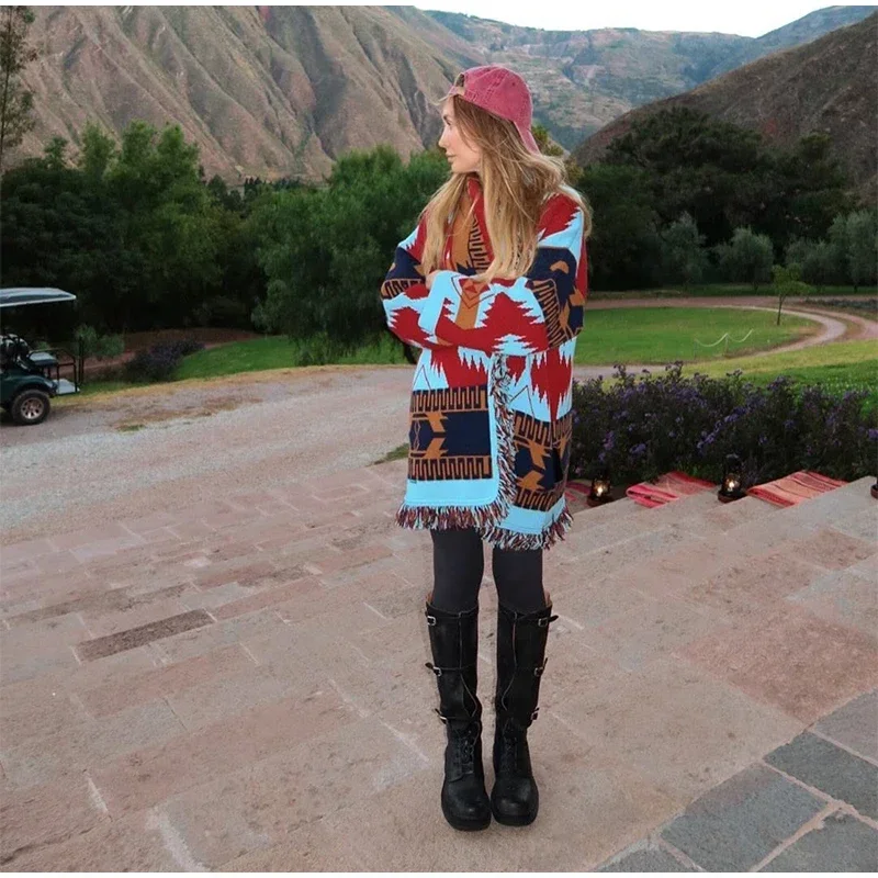 Casual Patterned Tassel Knitted Cardigan Women Chic Lace Up V-neck Full Sleeves Coats Female 2025 Autumn Fashion Lady Outwears