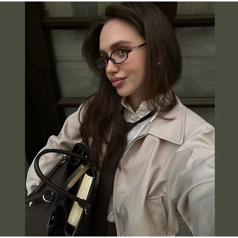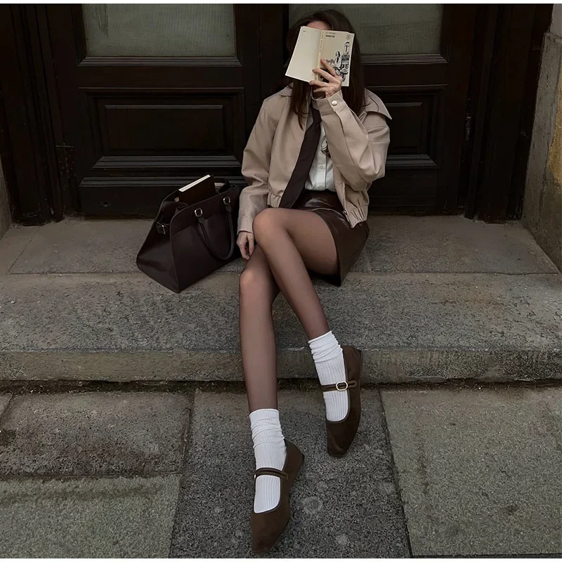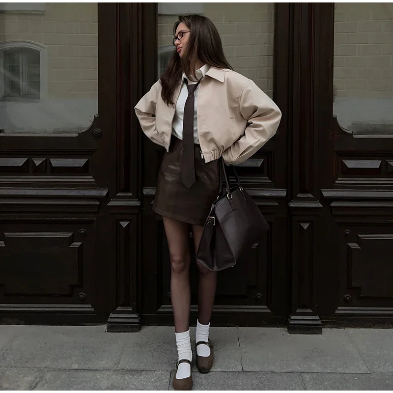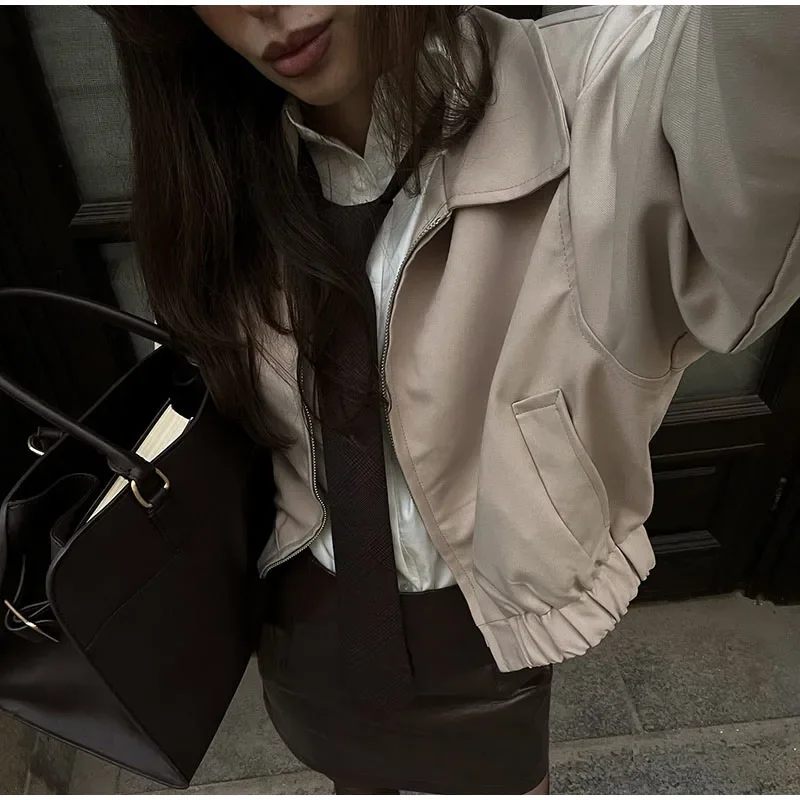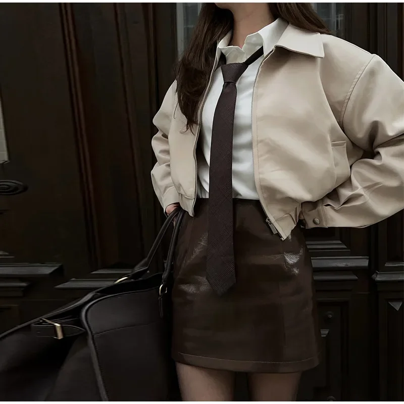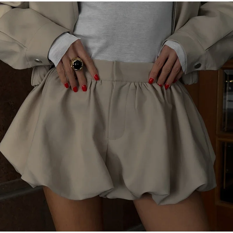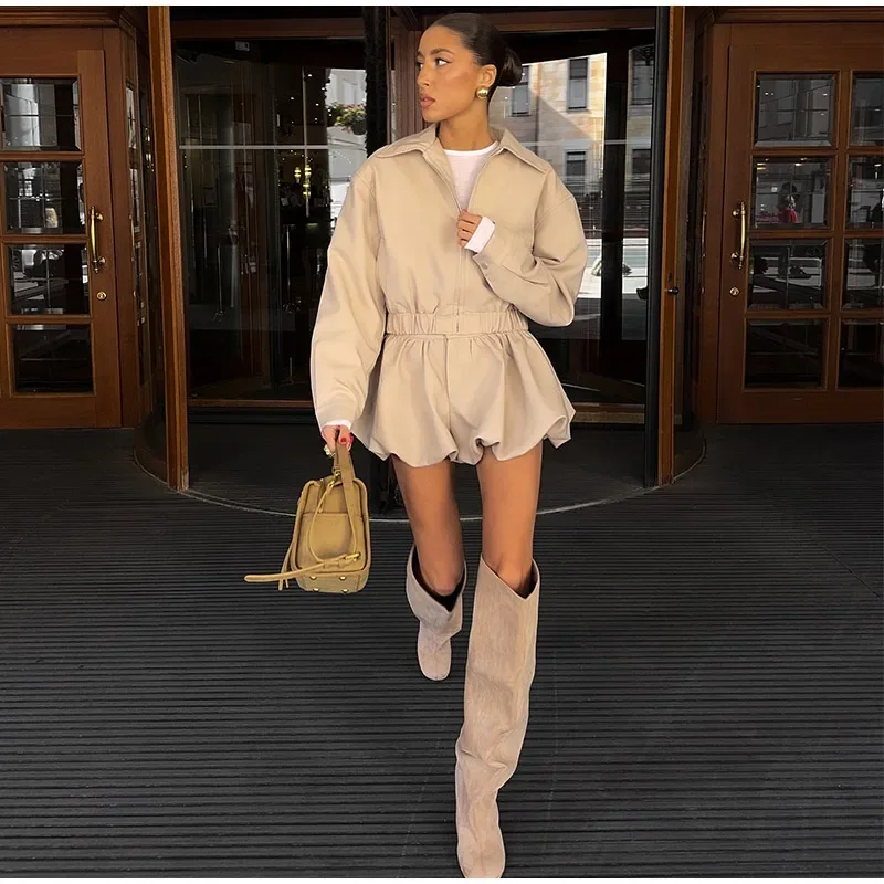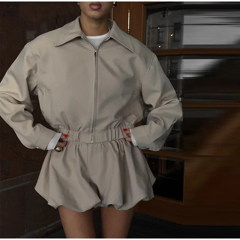 Casual Solid Coat Tulip Shorts Women Set Lapel Long Sleeve Zippers Elastic-hem Jacket Short Pants 2025 Autumn Chic Lady Outwears