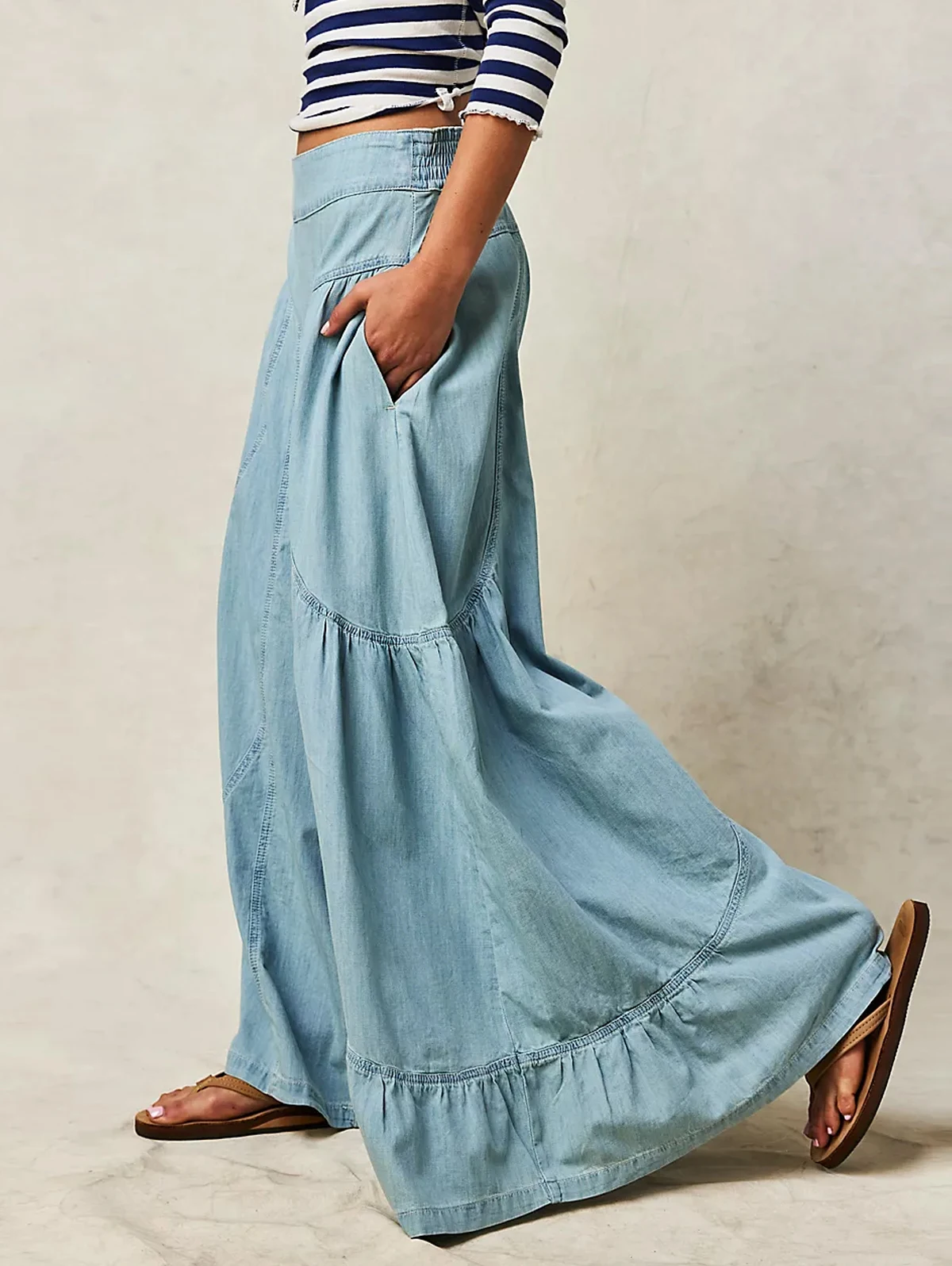 Casual Solid Color Pants Spring Summer Clothes Elastic Waist Loose Womens Wide Leg Spliced Trousers with Pocket