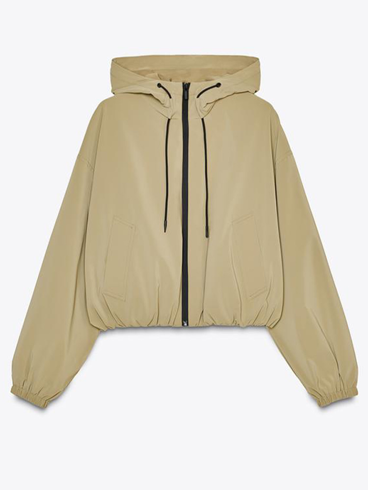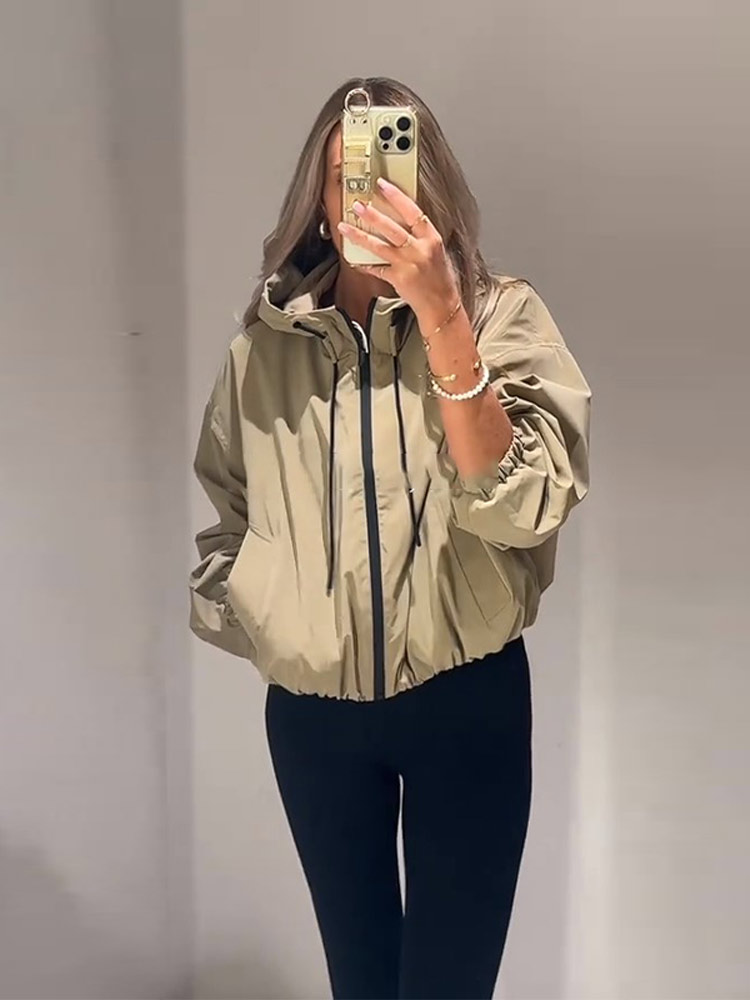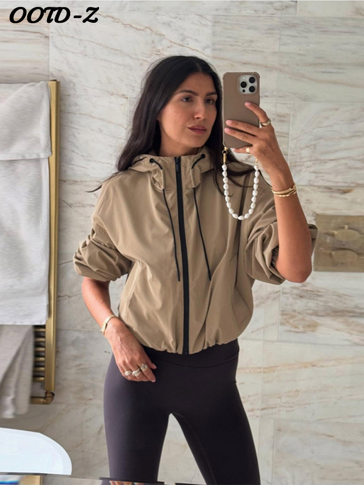 Casual Solid Hooded Women’s Cropped Jacket Drawstring Zipper Pockets Lady Coats Autumn Fashion Female Street Sporty Outwears New