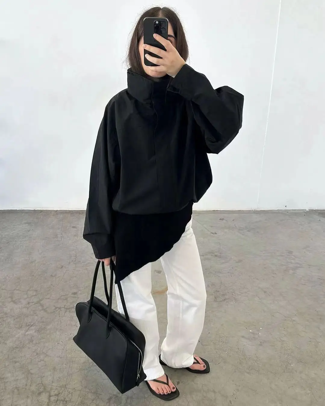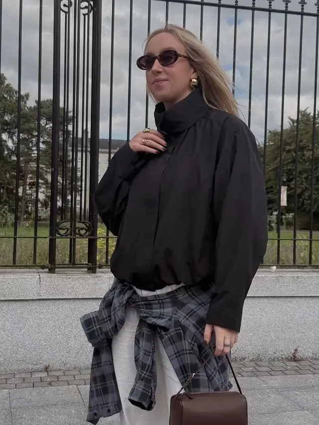 This cream-white stand-collar jacket is absolutely eye-catching. Just pair it with a pair of wide-leg pants, and it exudes a casual elegance. It's a versatile piece, and i'm obsessed with the neat and sharp look it brings me! 😍
