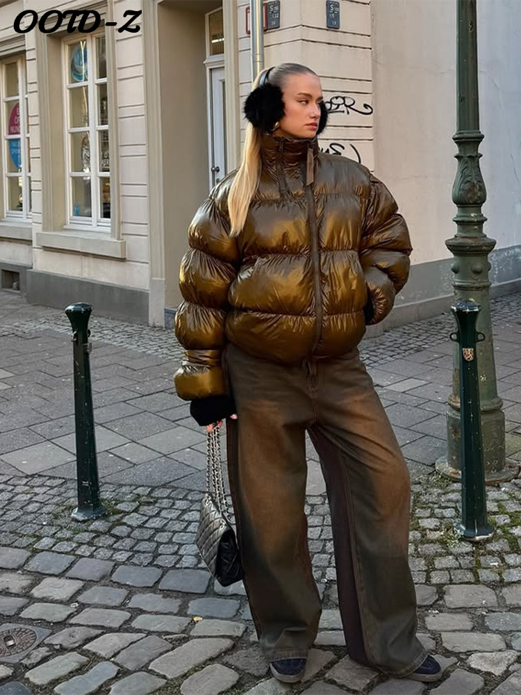 Casual Solid Thicken Cotton-padded Coat Women Loose Full Sleeve Lapel Zipper Warm Coat Female Autumn Winter Lady Street Outwears