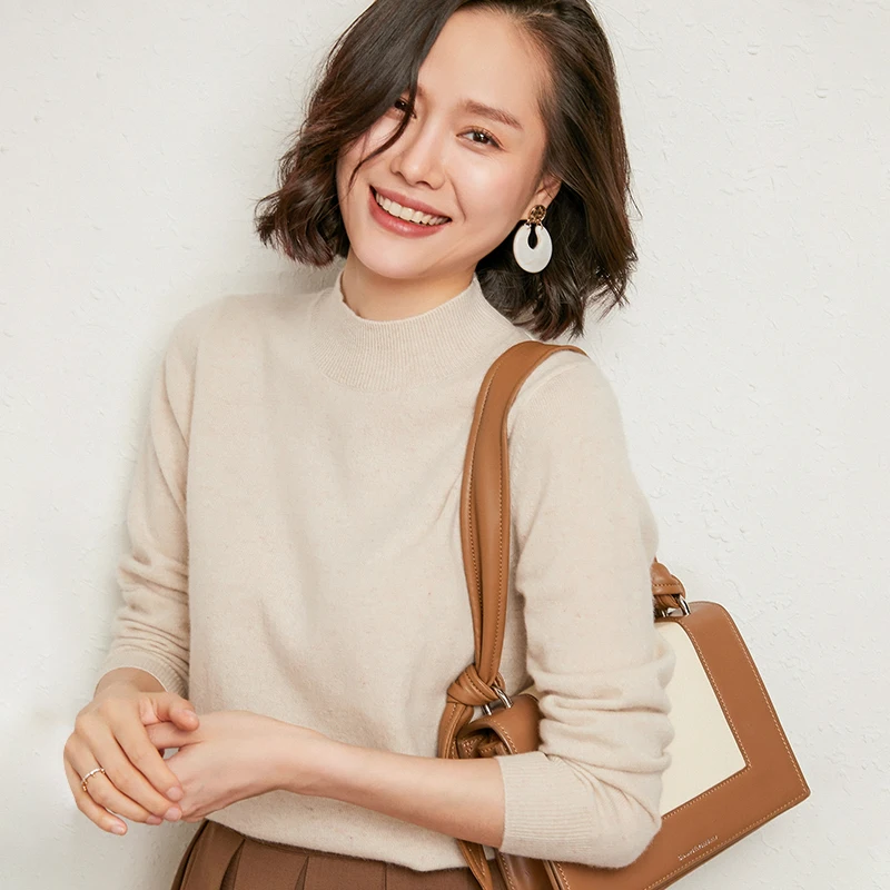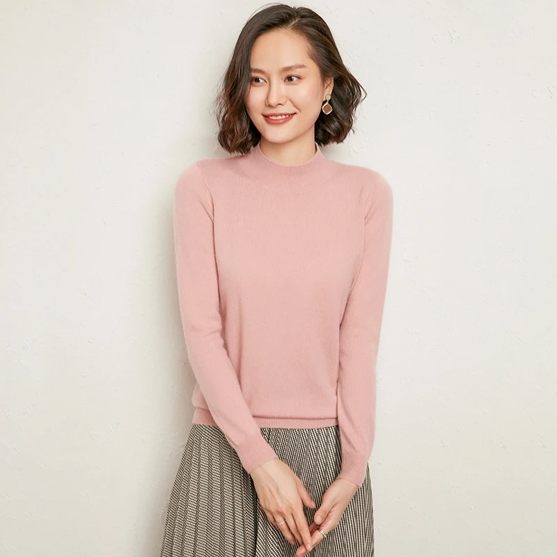 Casual Spring Autumn Women Sweater 2025 Knitted Pullovers Mock Neck Solid Cashmere Knit Basic Casual Bottoming Shirts Top Jumper
