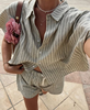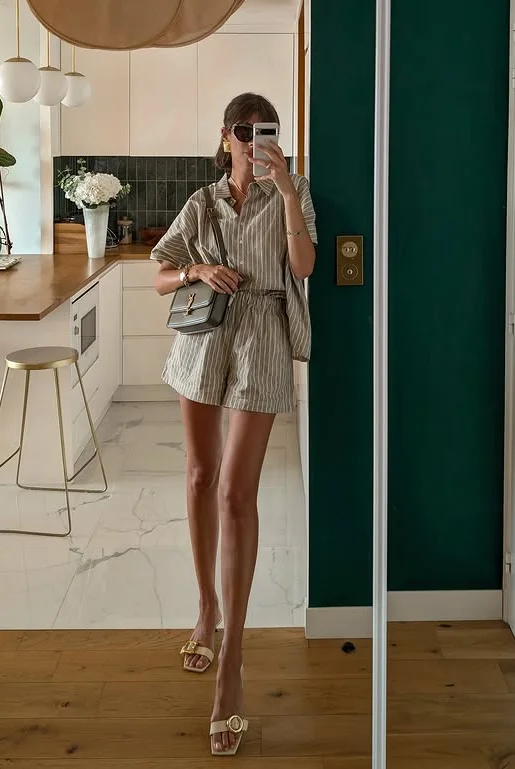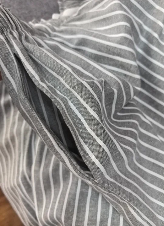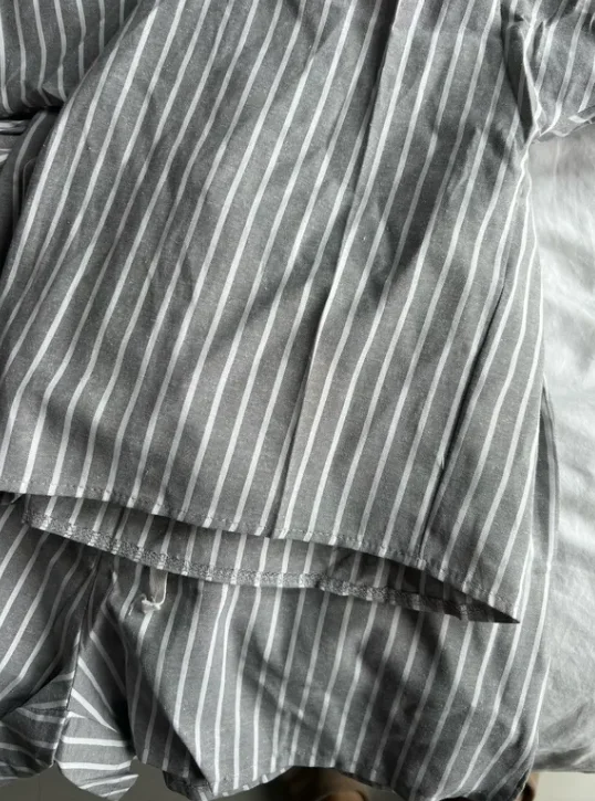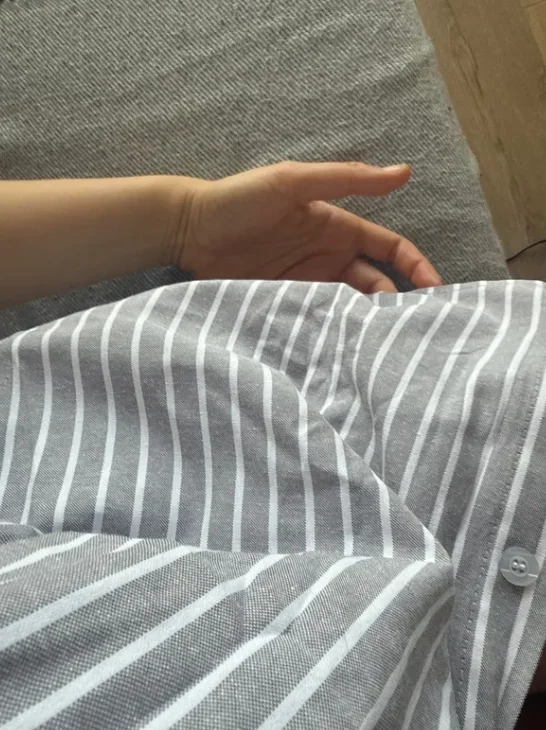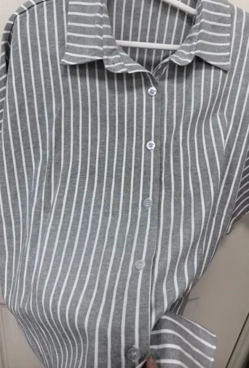 Super good, beyond my expectation! ! ! Classic stripe elements, simple and fashionable, regardless of age and occasion. Wearing a small coat and small white shoes outside makes the casual atmosphere full; wearing at home is also lazy and casual. The loose version has a strong tolerance for the figure, does not pick the figure, and is comfortable to wear without restraint. The vertical stripe design also has its own slimming effect, which visually lengthens the figure. Absolutely recommended