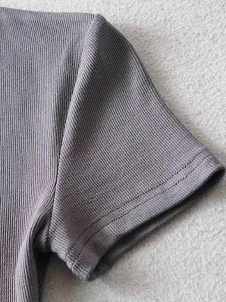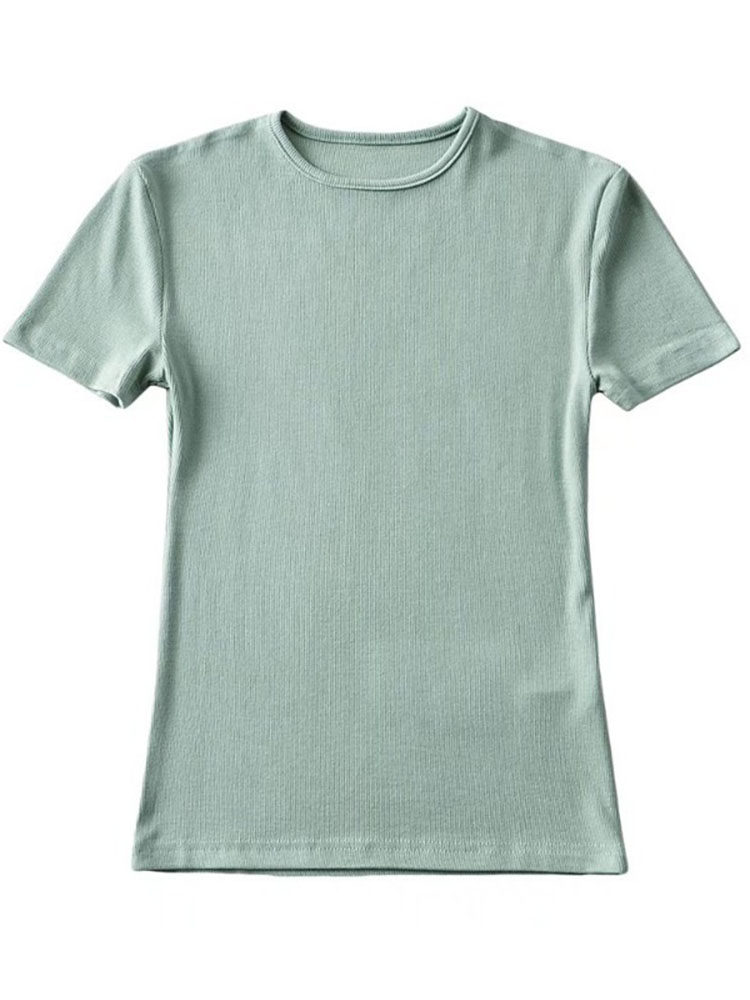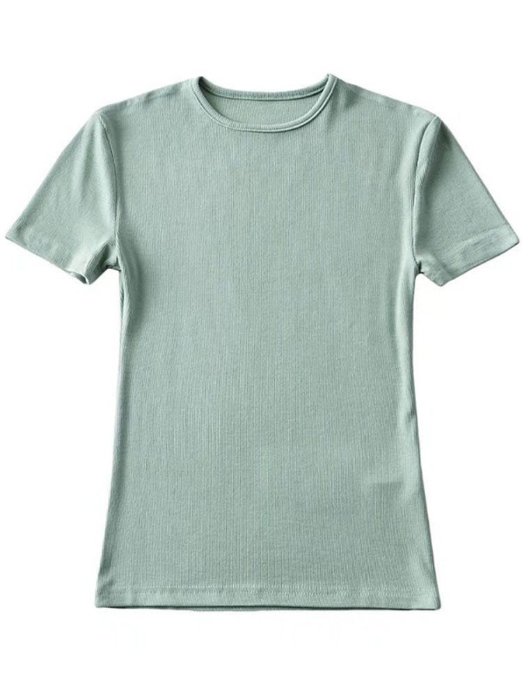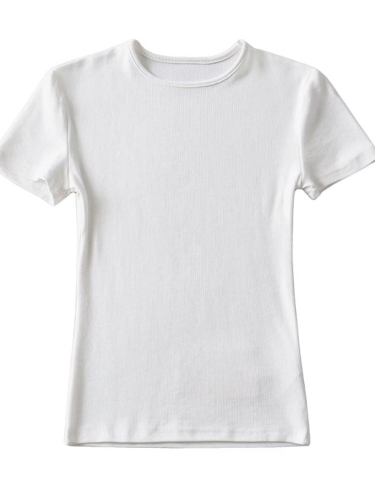 Casual Summer Woman Skinny Fit T-shirt Tight Short-Sleeve O-neck Tee Basic Solid Crop Tops T Shirt