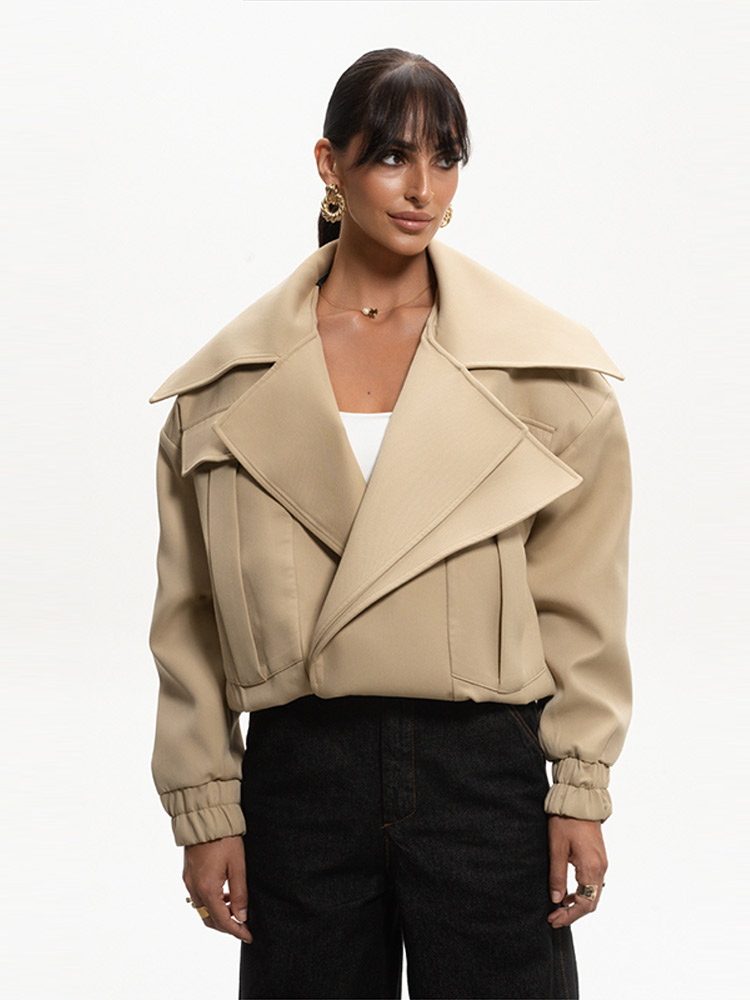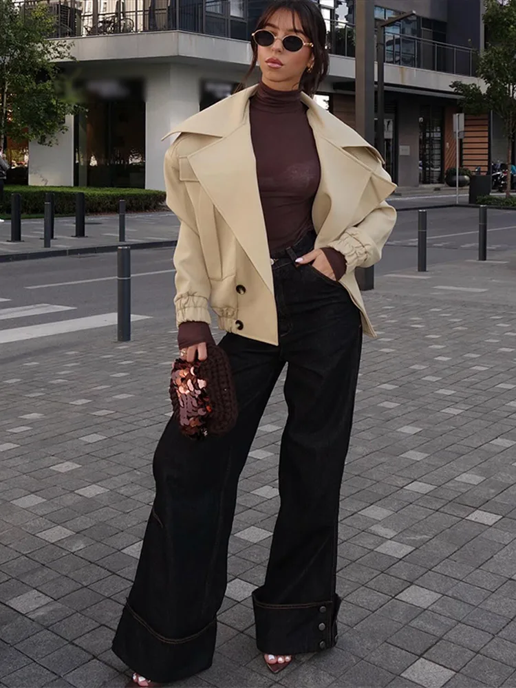 Casual V-neck Solid Jacket Women Lapel Button Full Sleeve Solid Loose Coat Lady 2025 Chic Autumn Winter Female Street Outerwears