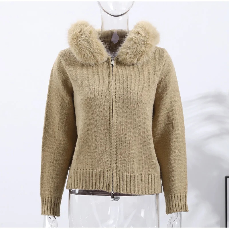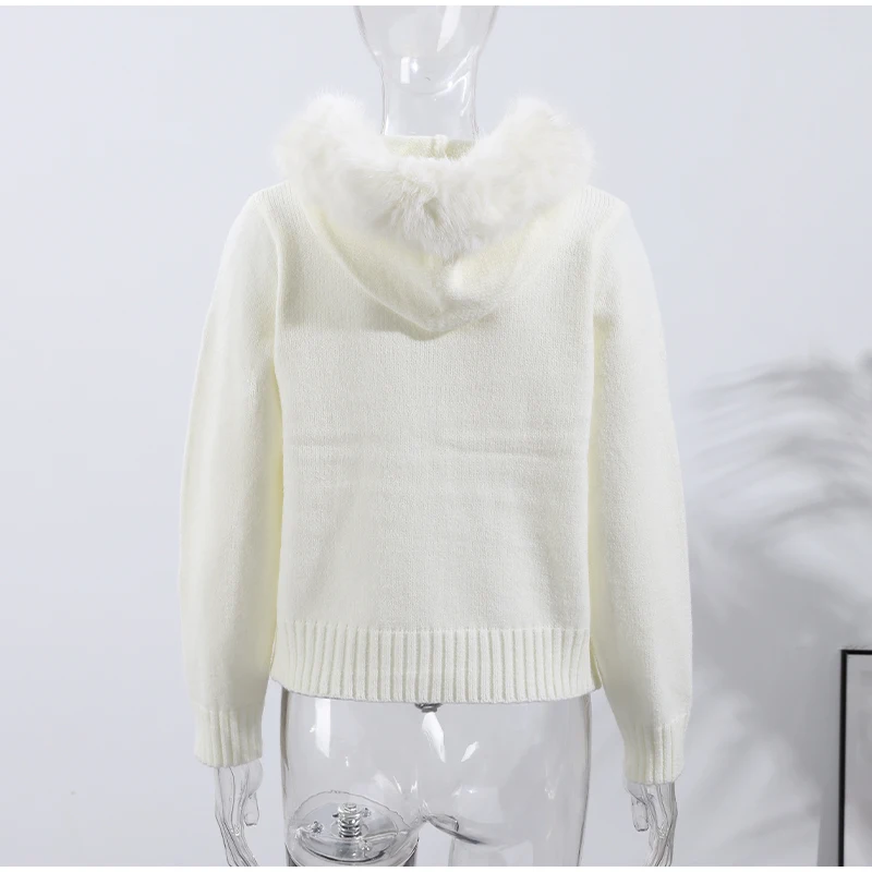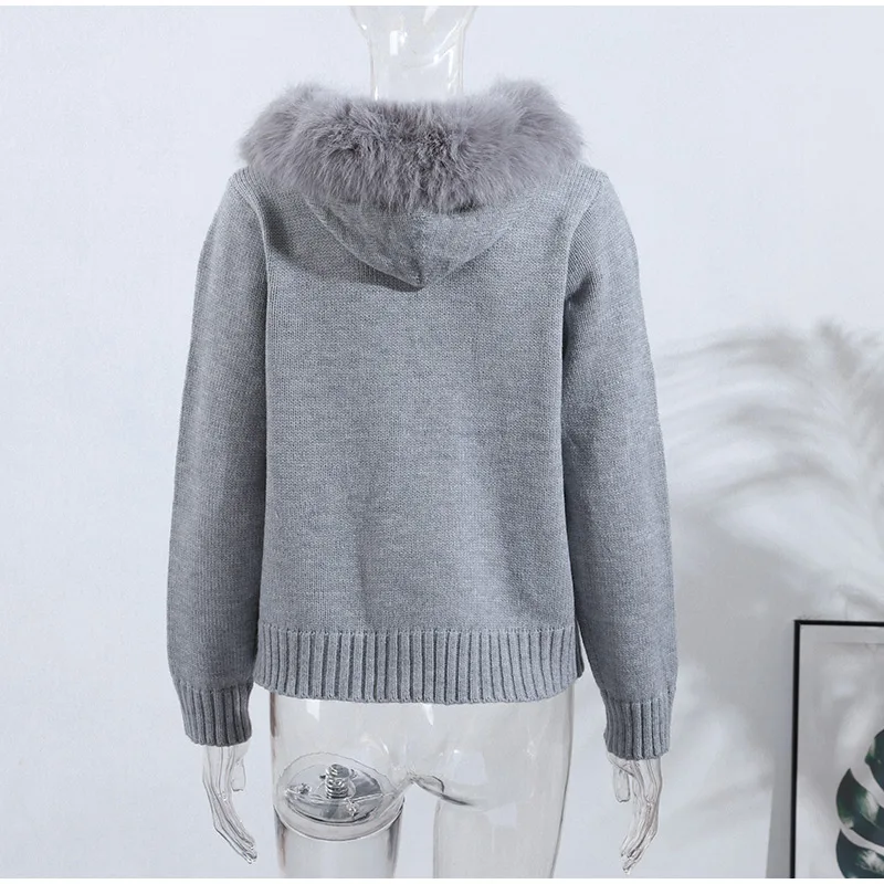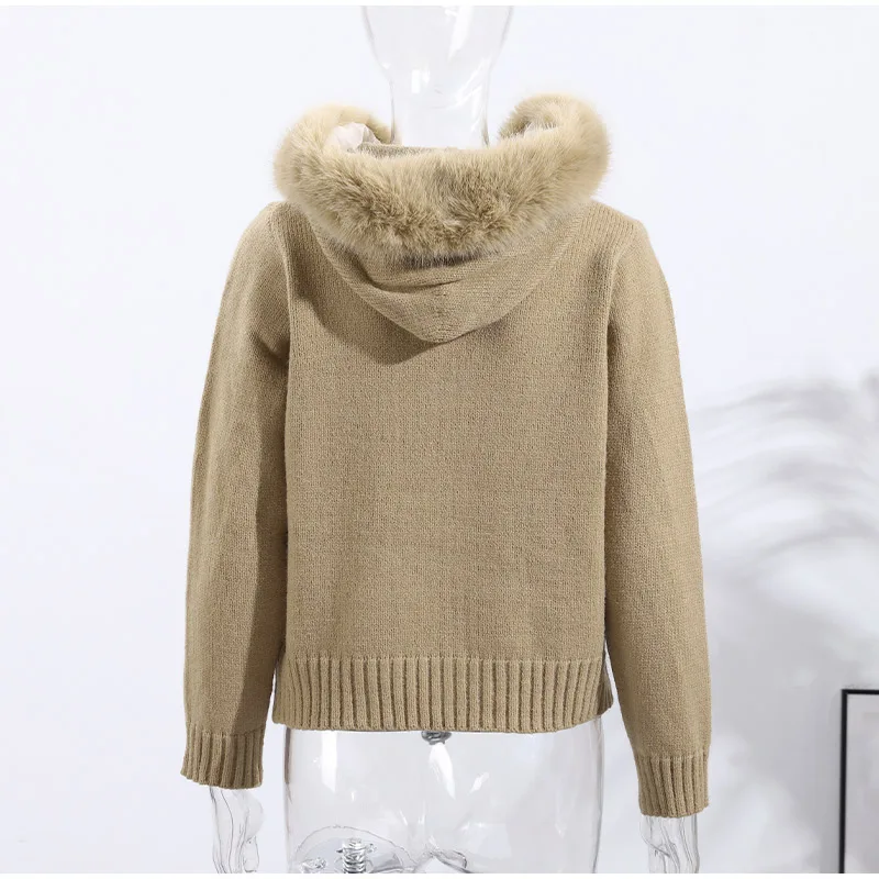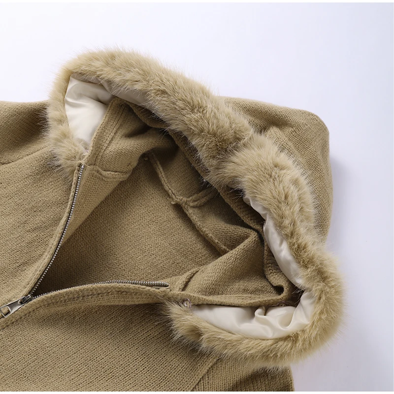 Casual Warm Knitted Hooded Cardigan Women Loose Zipper Full Sleeve Sweater Coat 2025 Autumn Winter Lady New Solid Cardigans