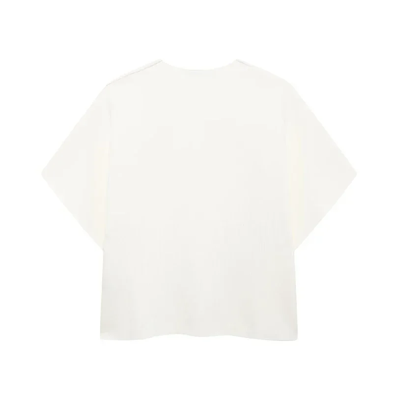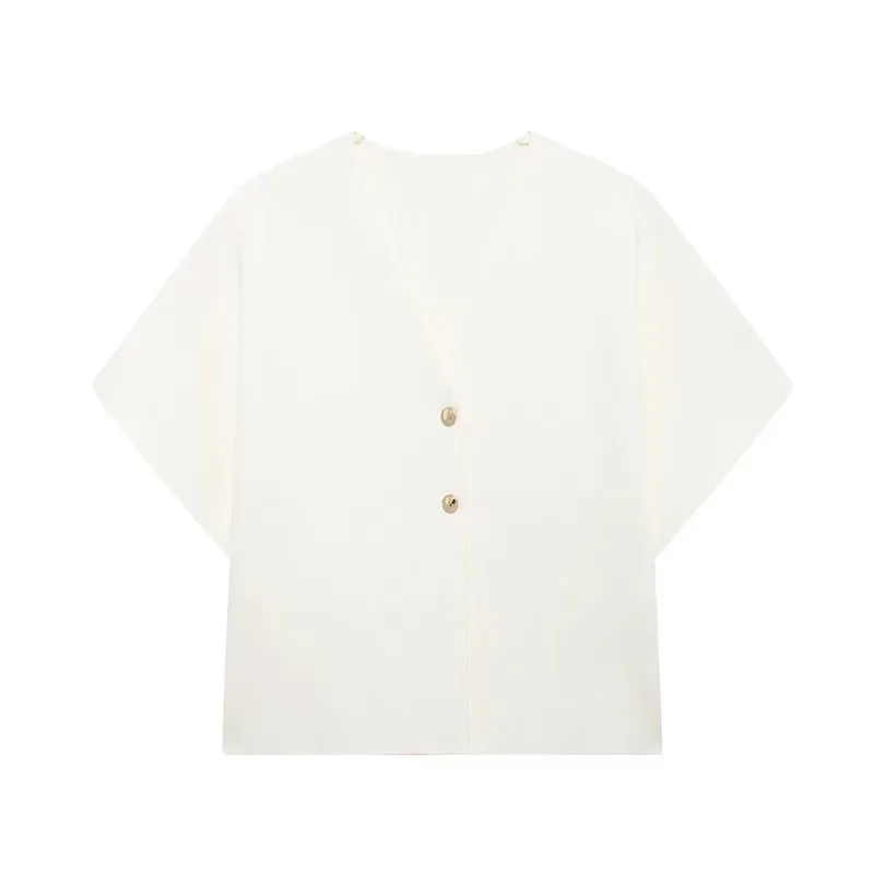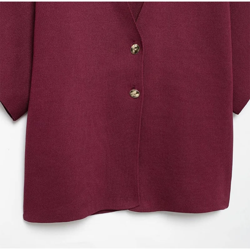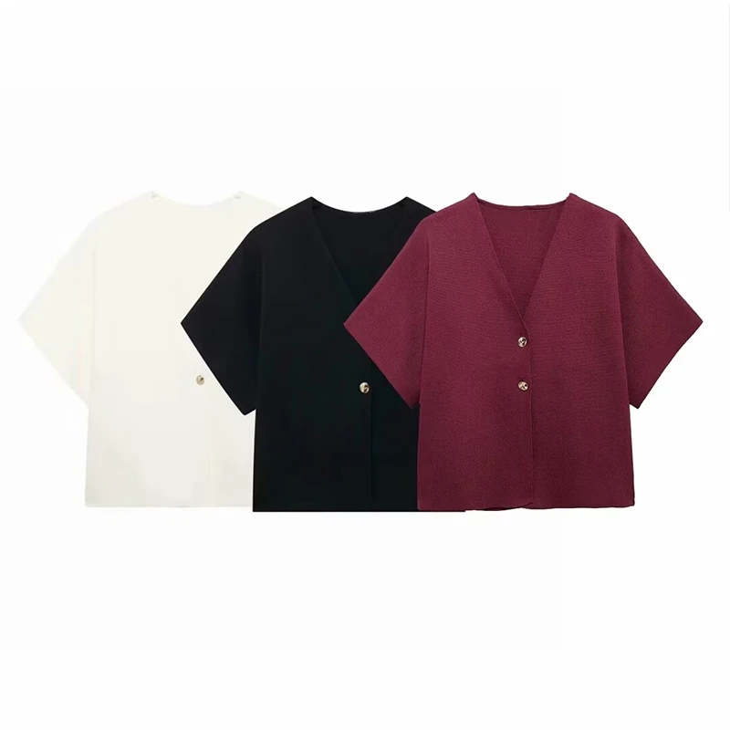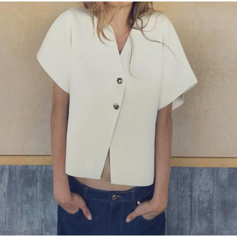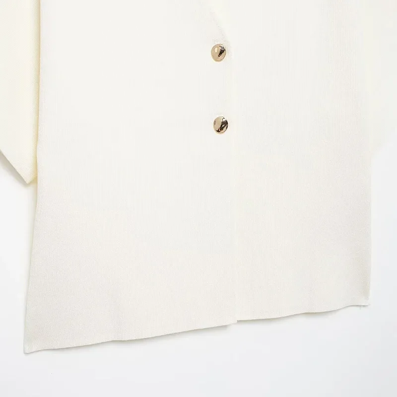 Casual White Knitted Vests Top Women Short Sleeve V-neck Two Buttons Waistcoat 2024 Summer Autumn Fashion All-match Knitwear