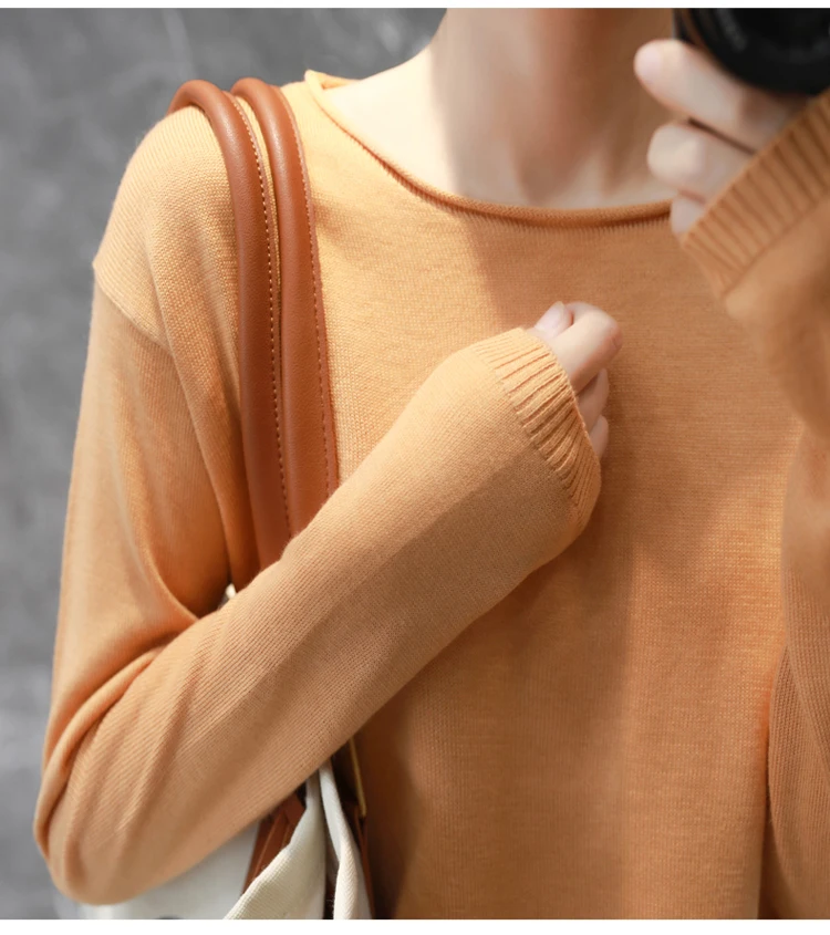 Casual Women Sweaters White Long Sleeve O-neck Basic Pullovers Spring Autumn Solid Korean Sweater Bottoming Shirts V-neck Jumper