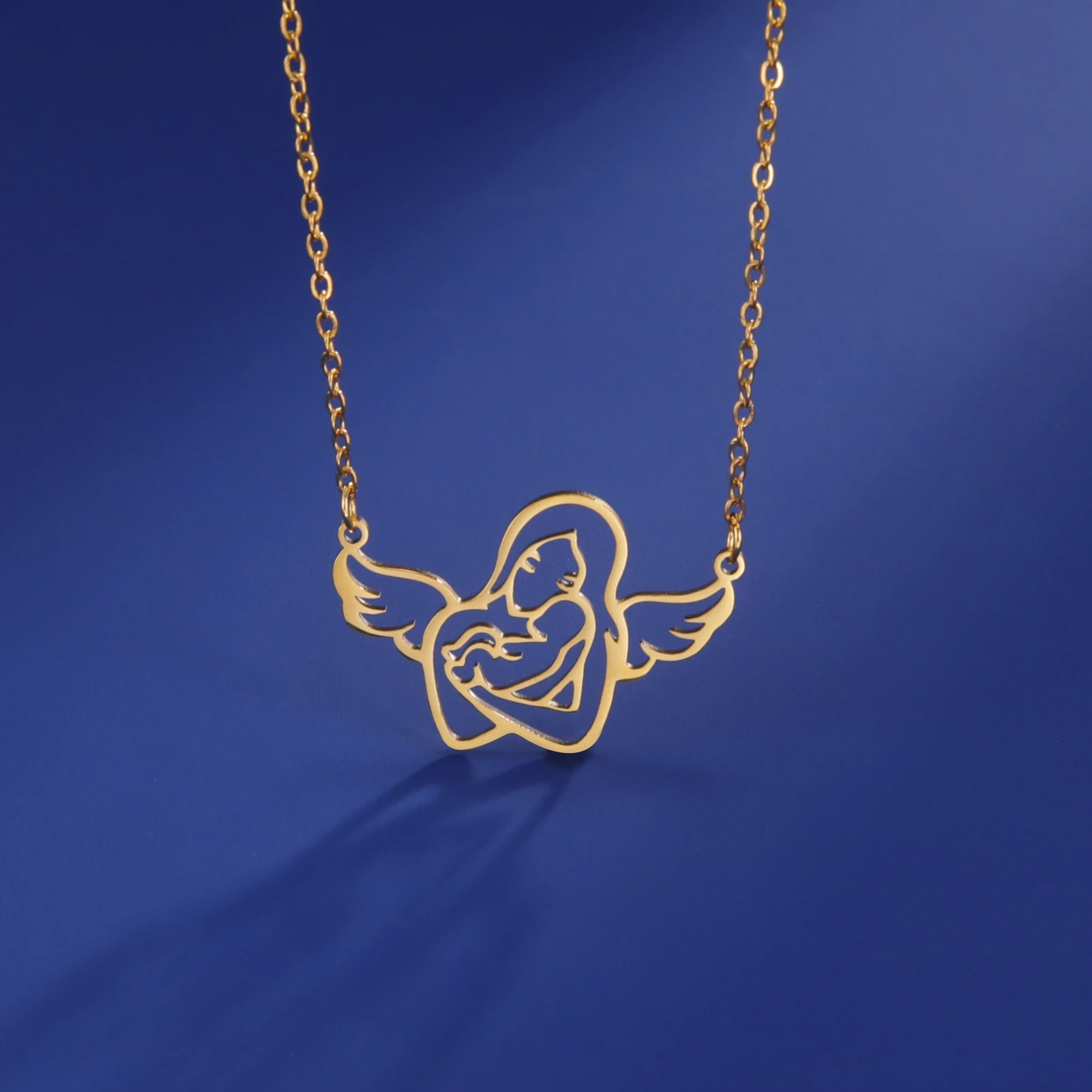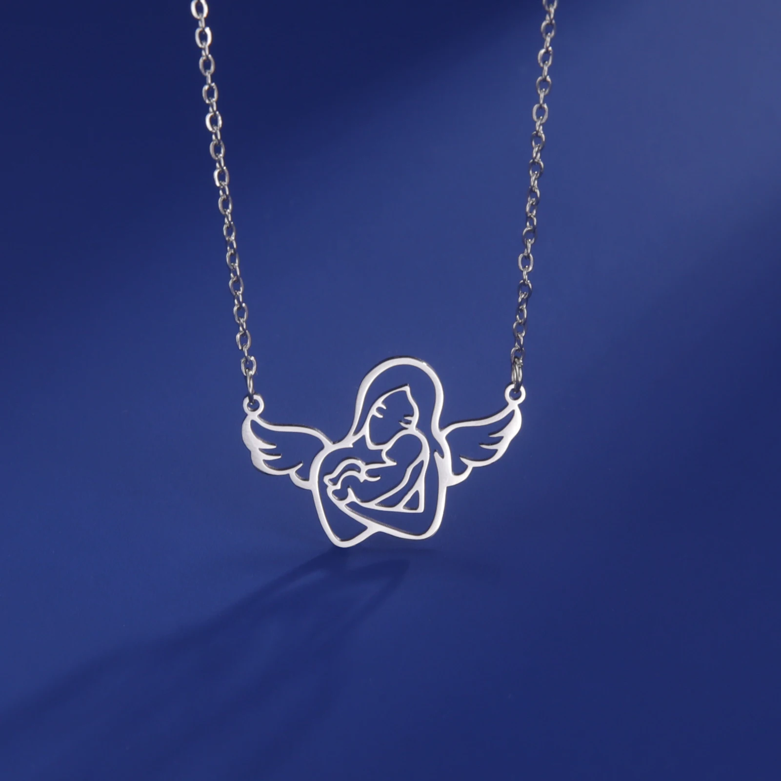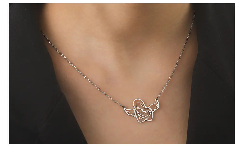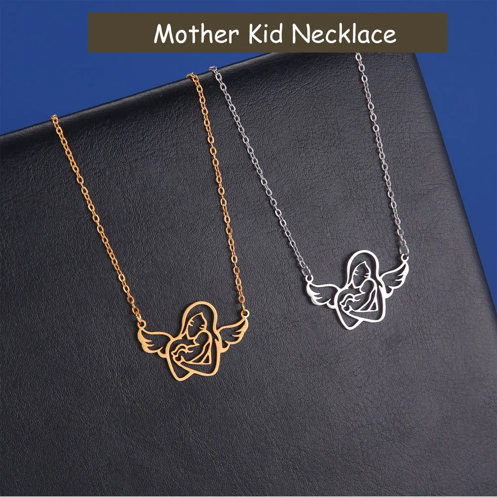 Angel Mom Hugging Child Necklace