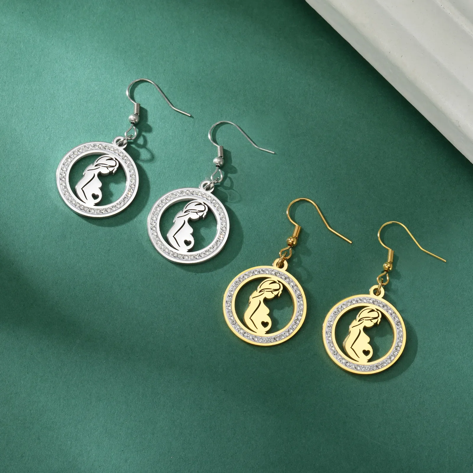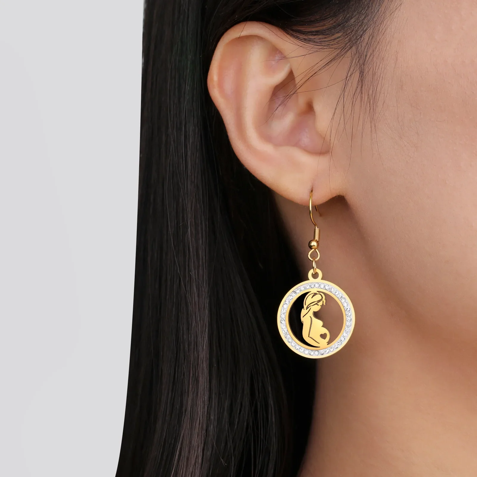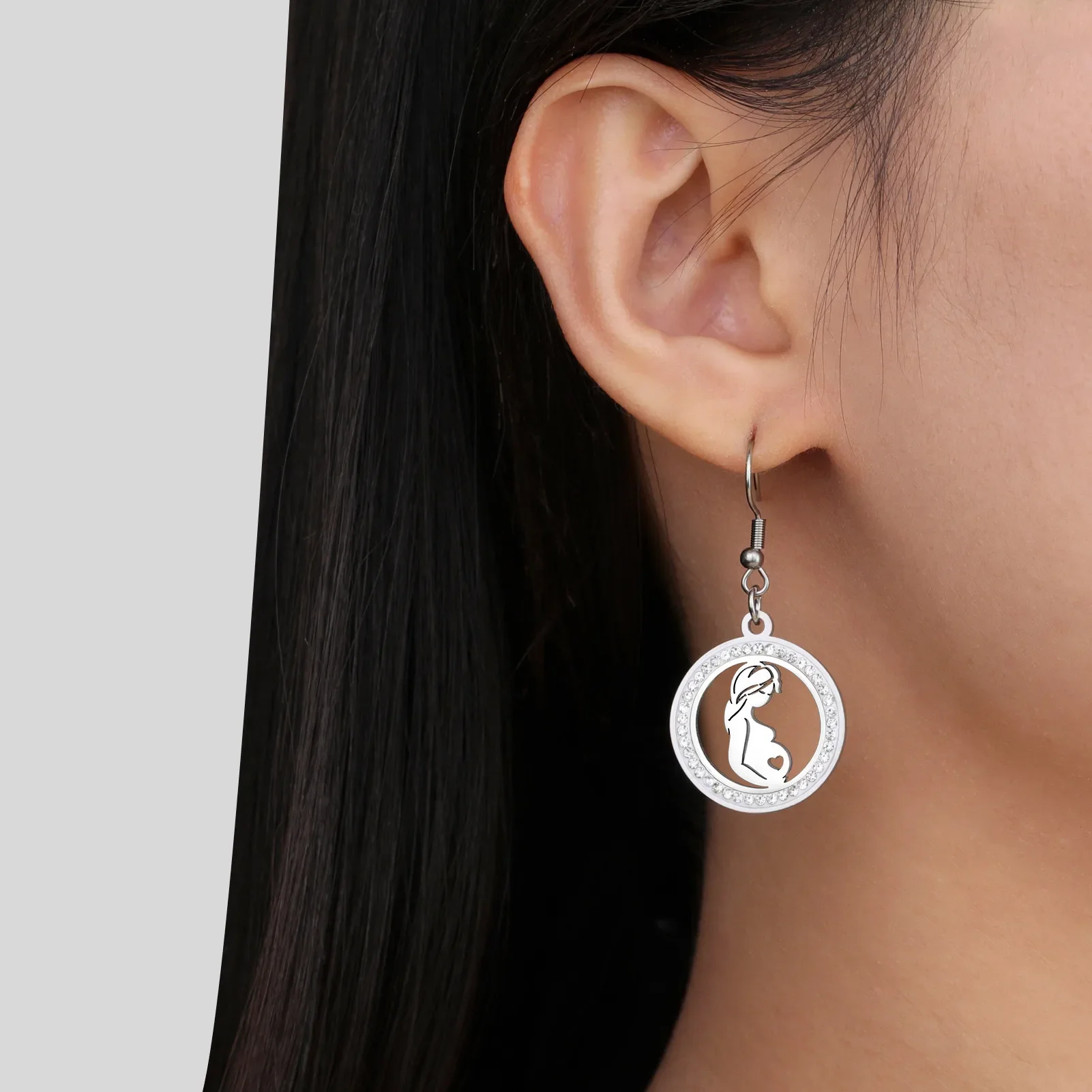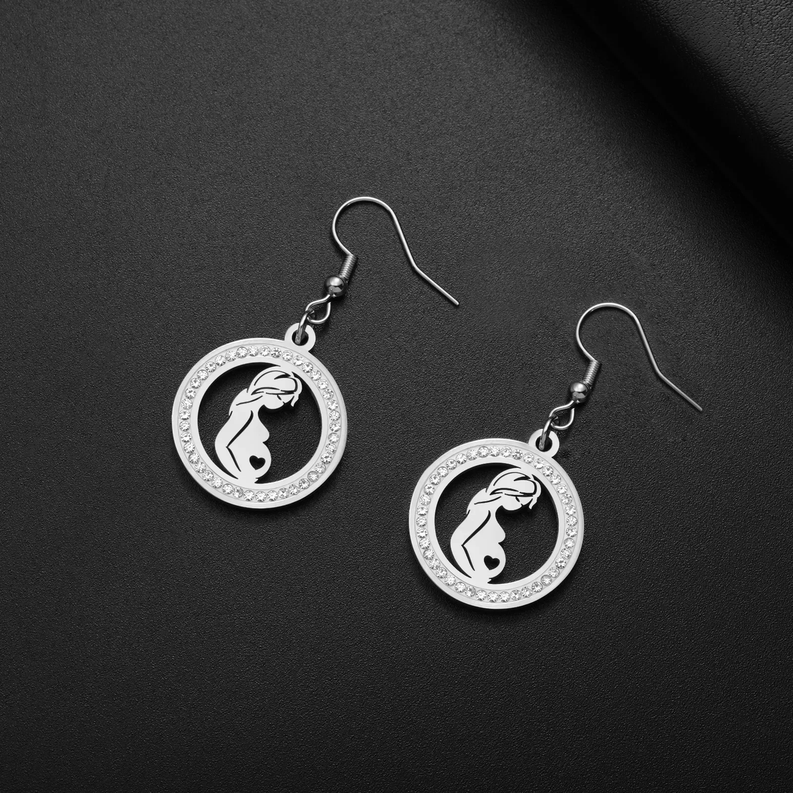 Cazador Clear Zircon Mom Baby Pregnant Mother Round Dangle Earrings Stainless Steel Jewelry Earrings Mother’s Day Gift 2026