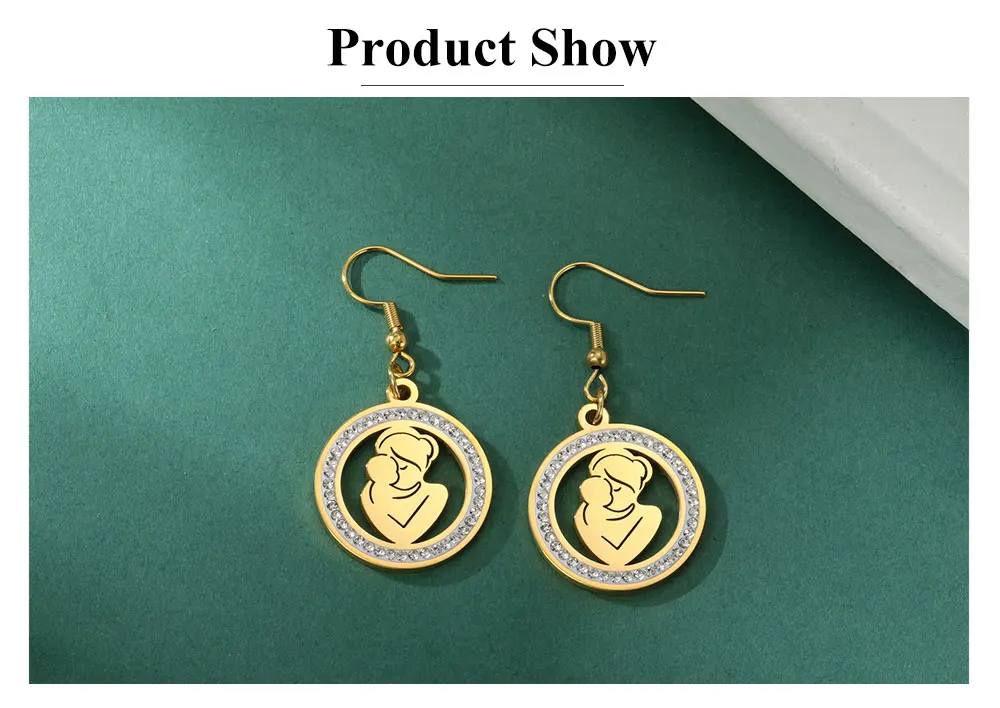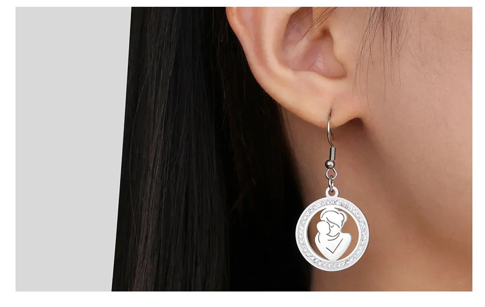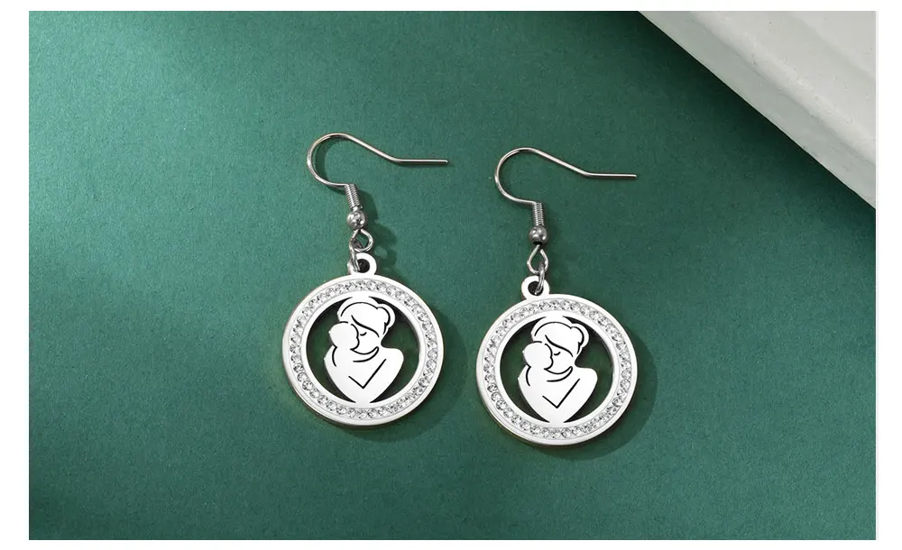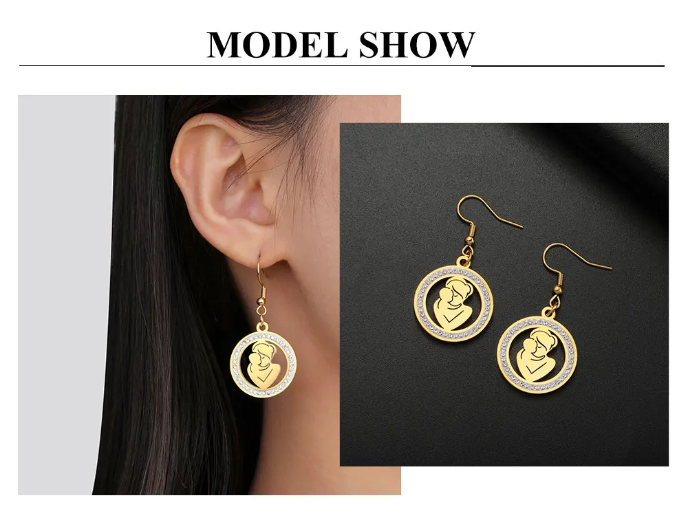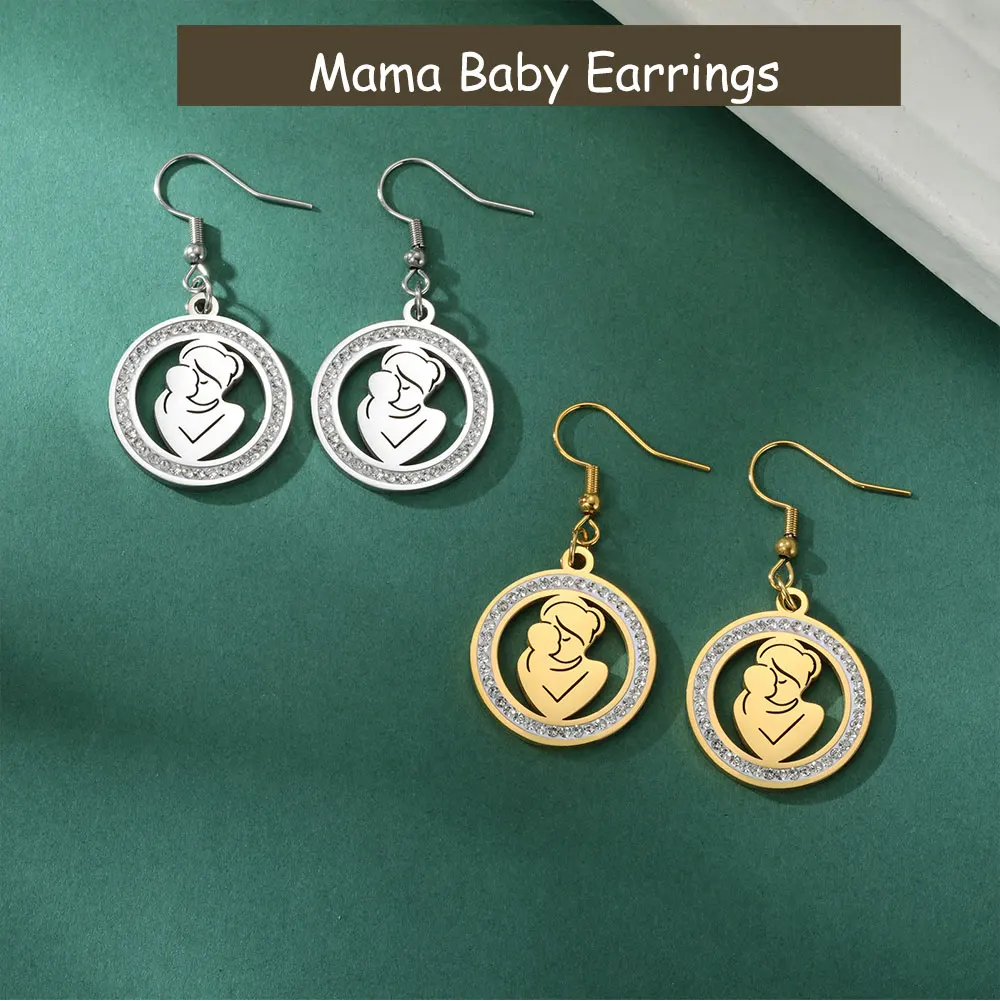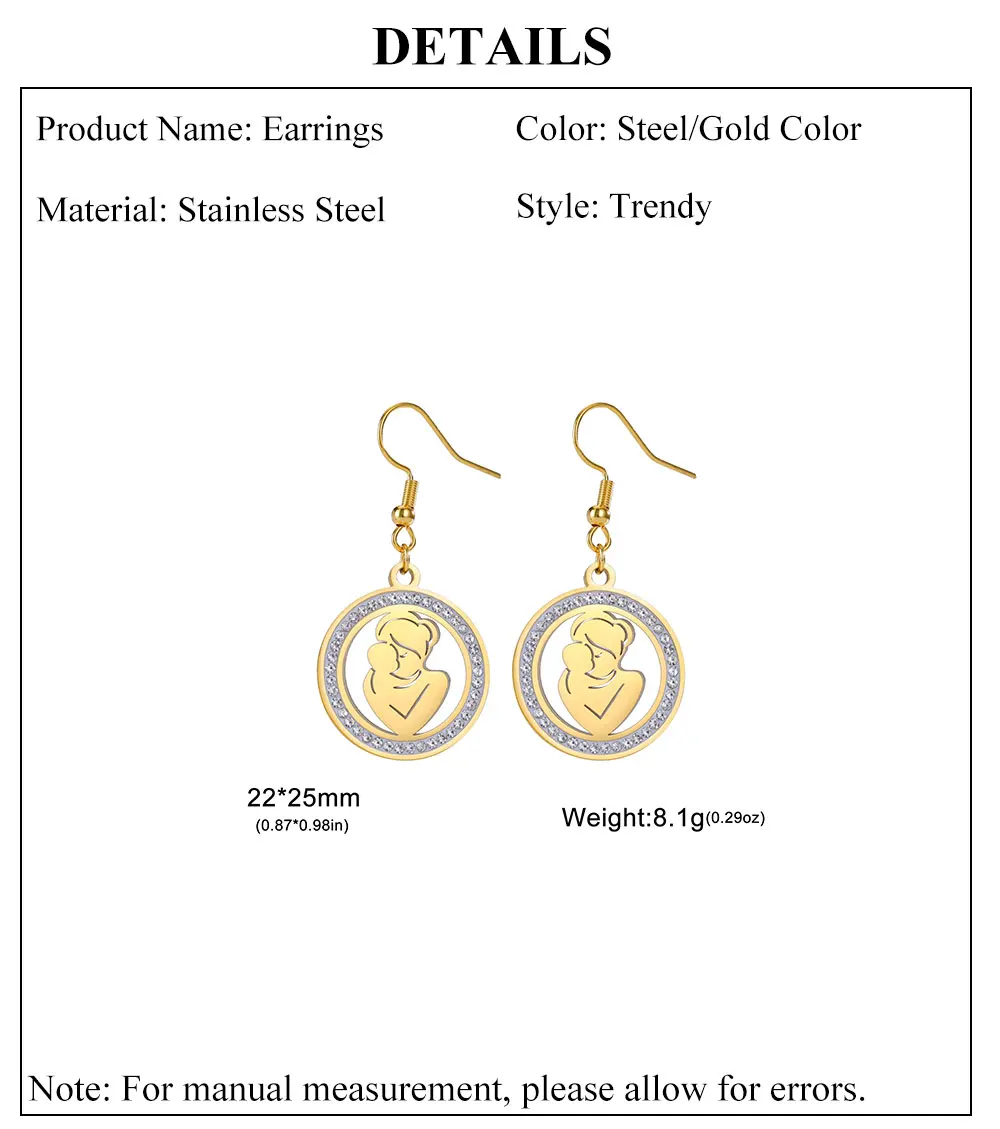 Cazador Clear Zircon Mom Baby Pregnant Mother Round Dangle Earrings Stainless Steel Jewelry Earrings Mother’s Day Gift 2026