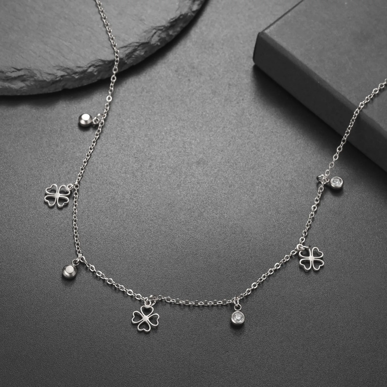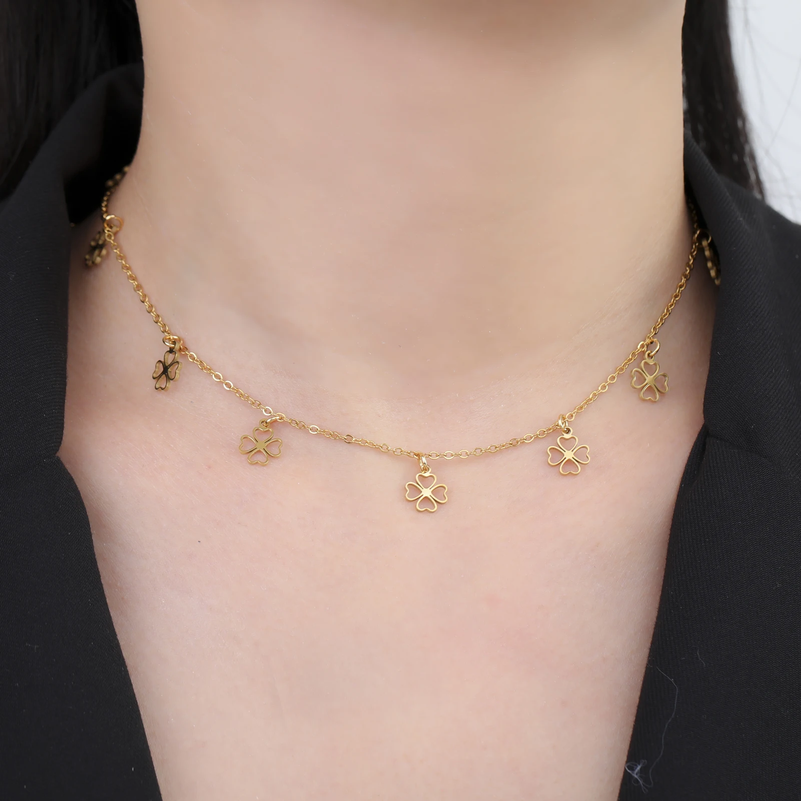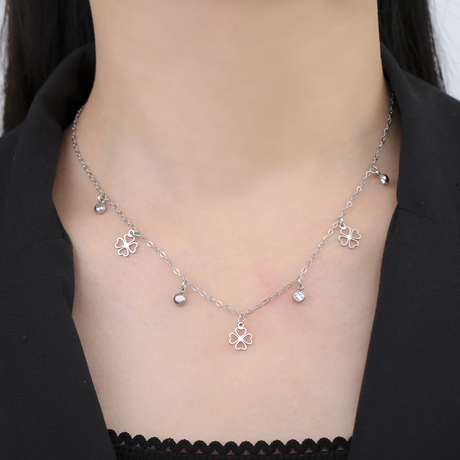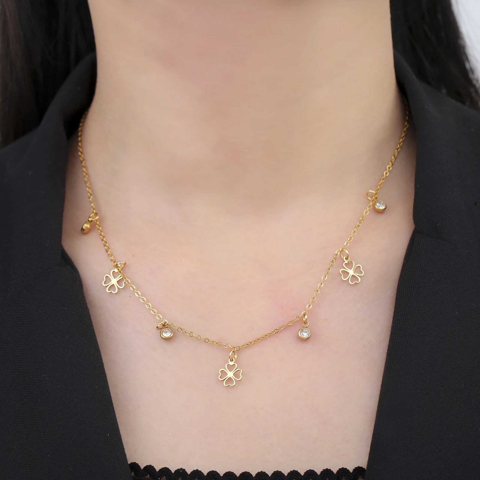 Cazador Mini Clear Zircon Four-leaf Clover Charms Necklaces for Women Stainless Steel Choker Chain Jewelry 2026 Valentine’s Gift