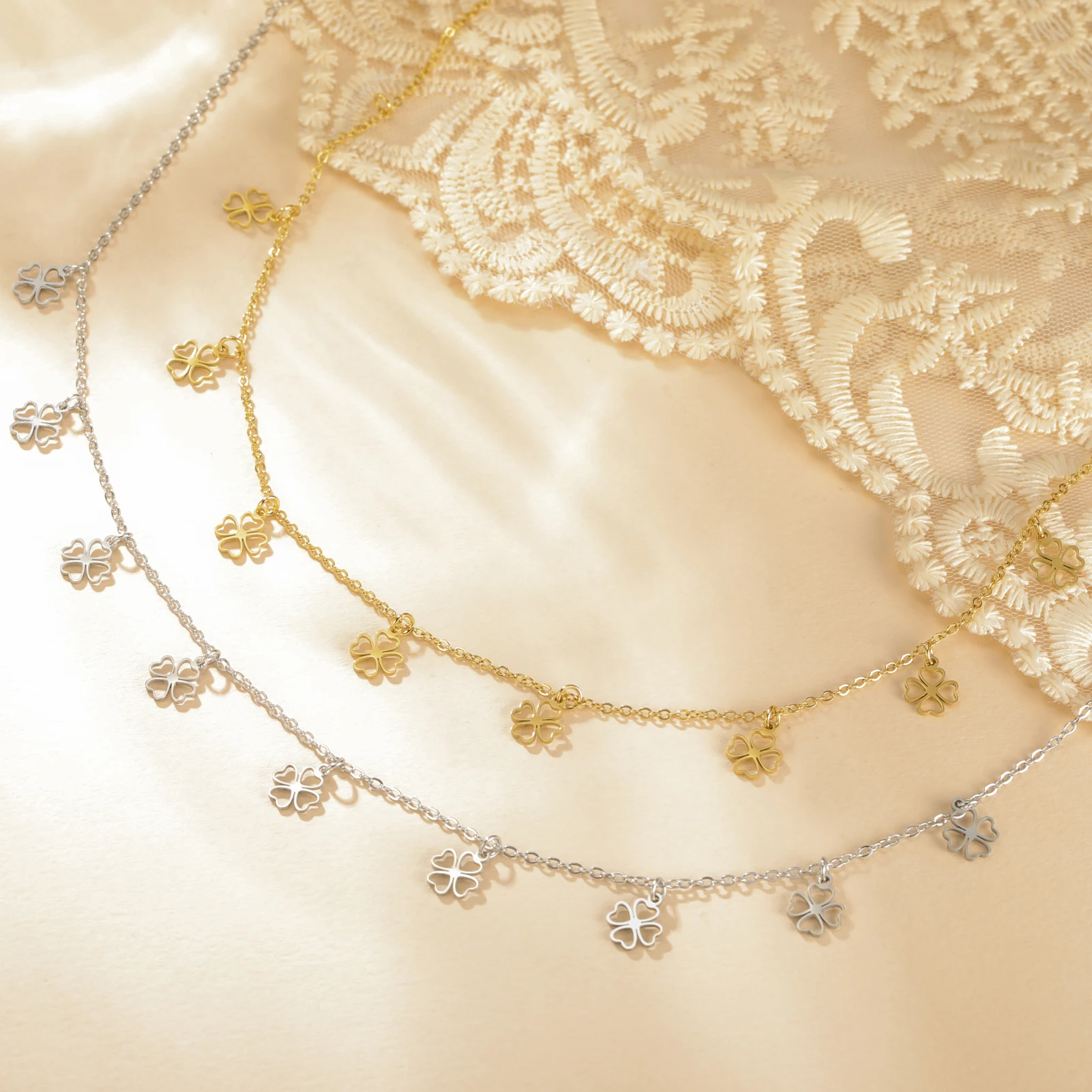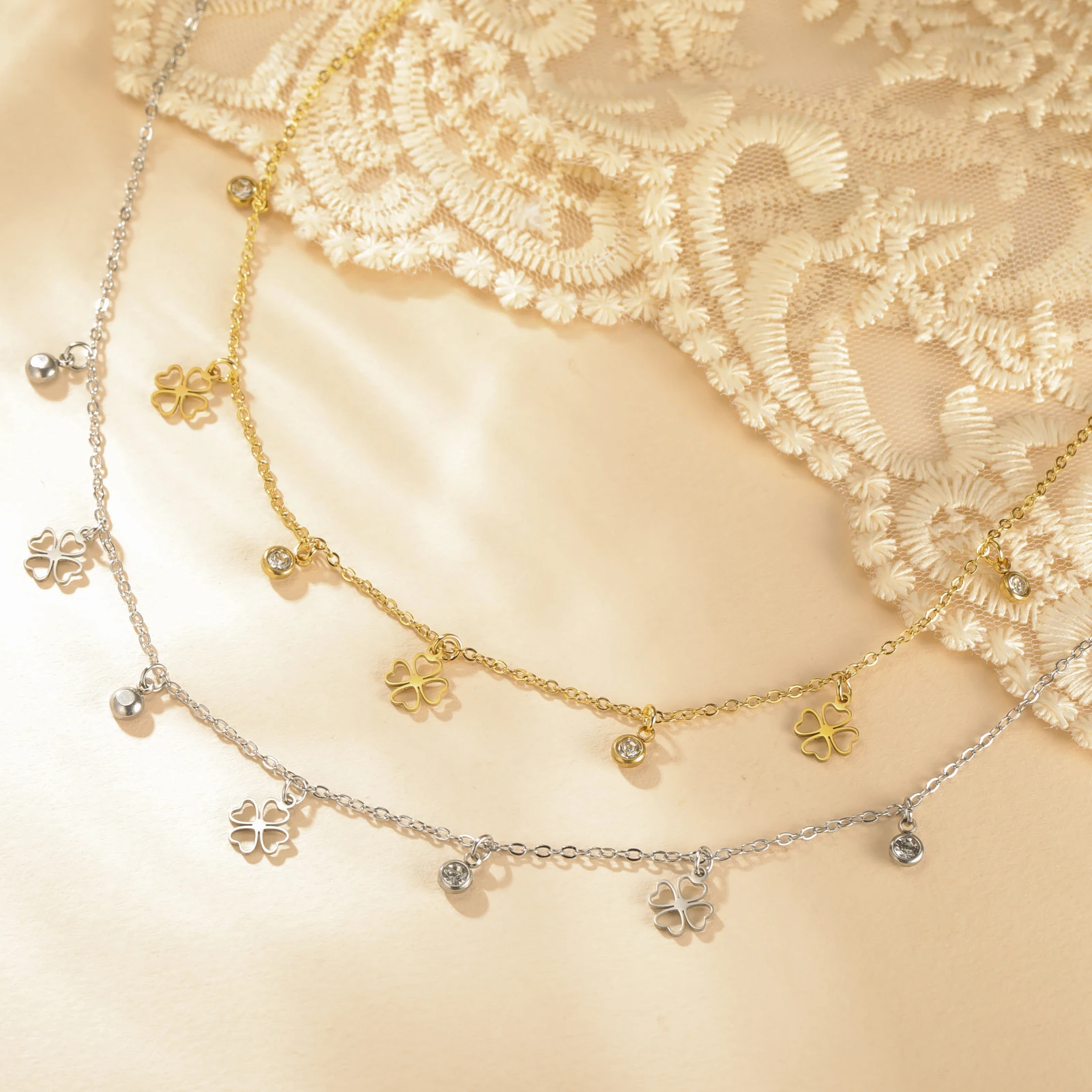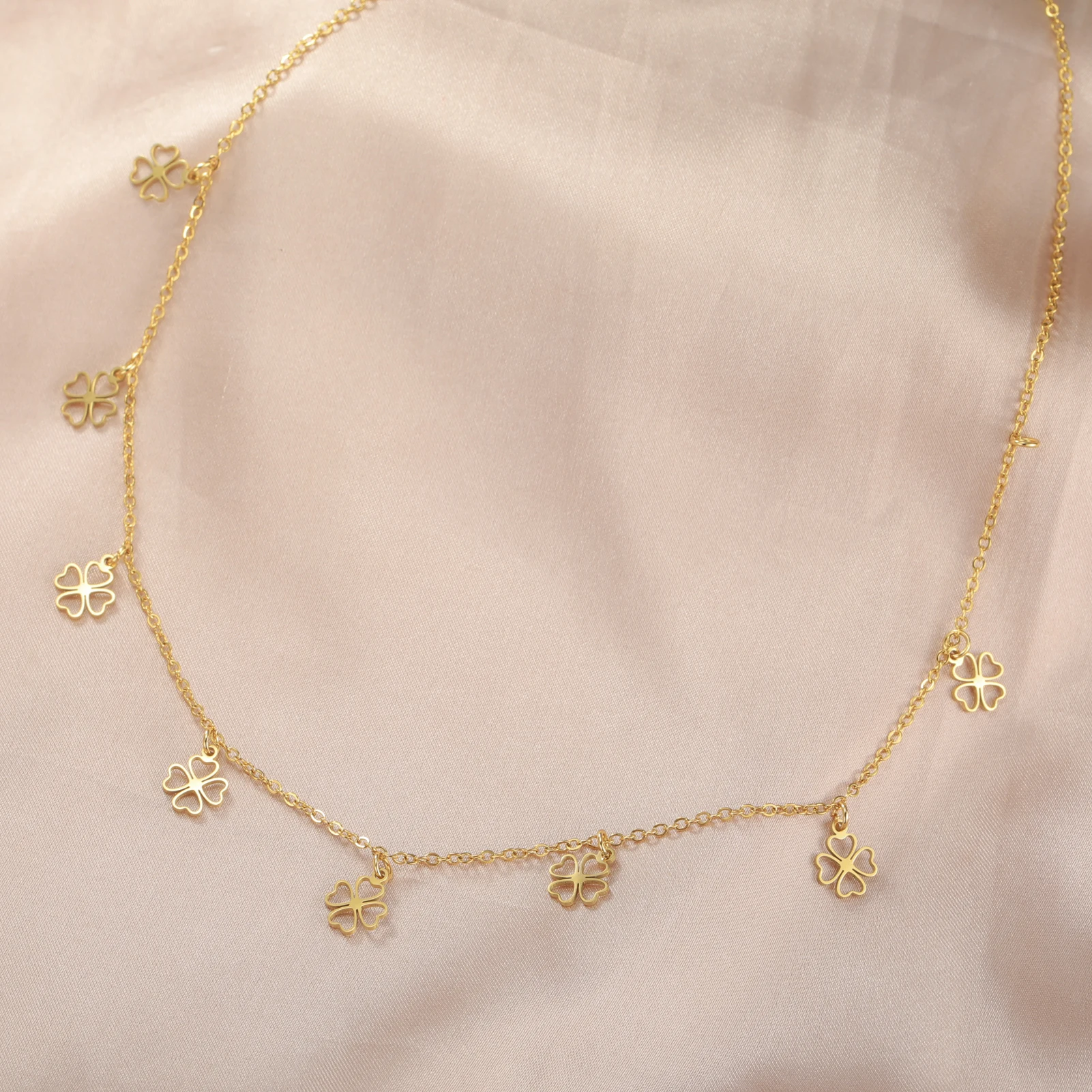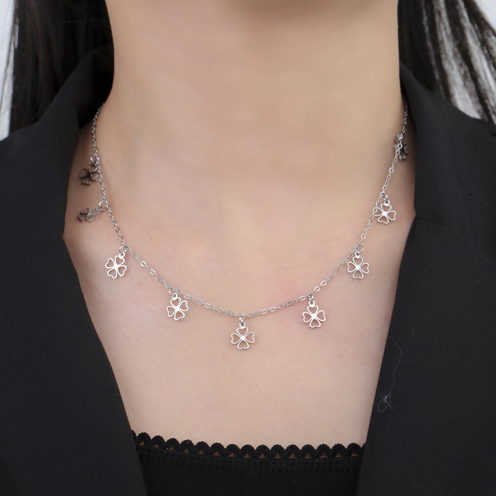 Cazador Mini Clear Zircon Four-leaf Clover Charms Necklaces for Women Stainless Steel Choker Chain Jewelry 2026 Valentine’s Gift