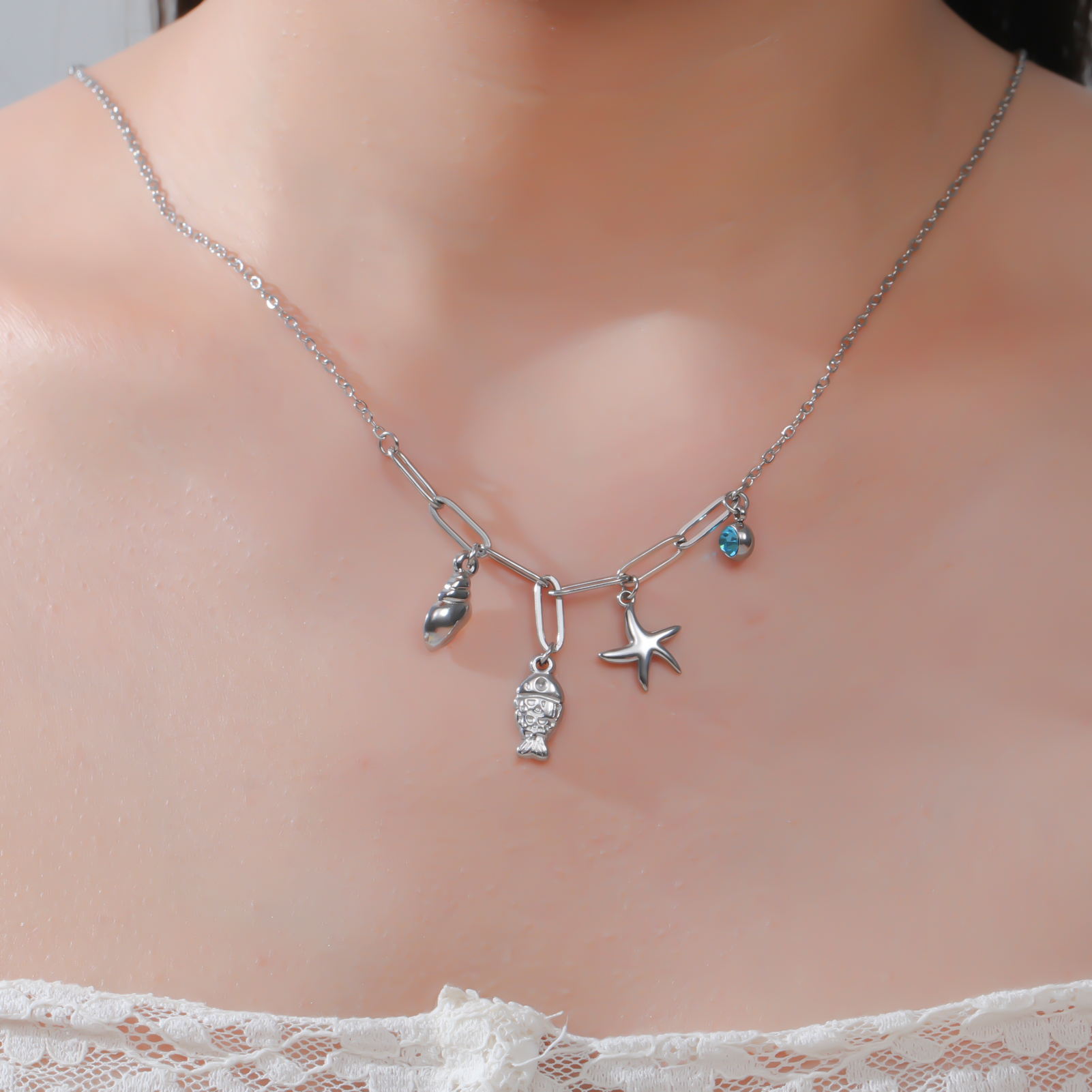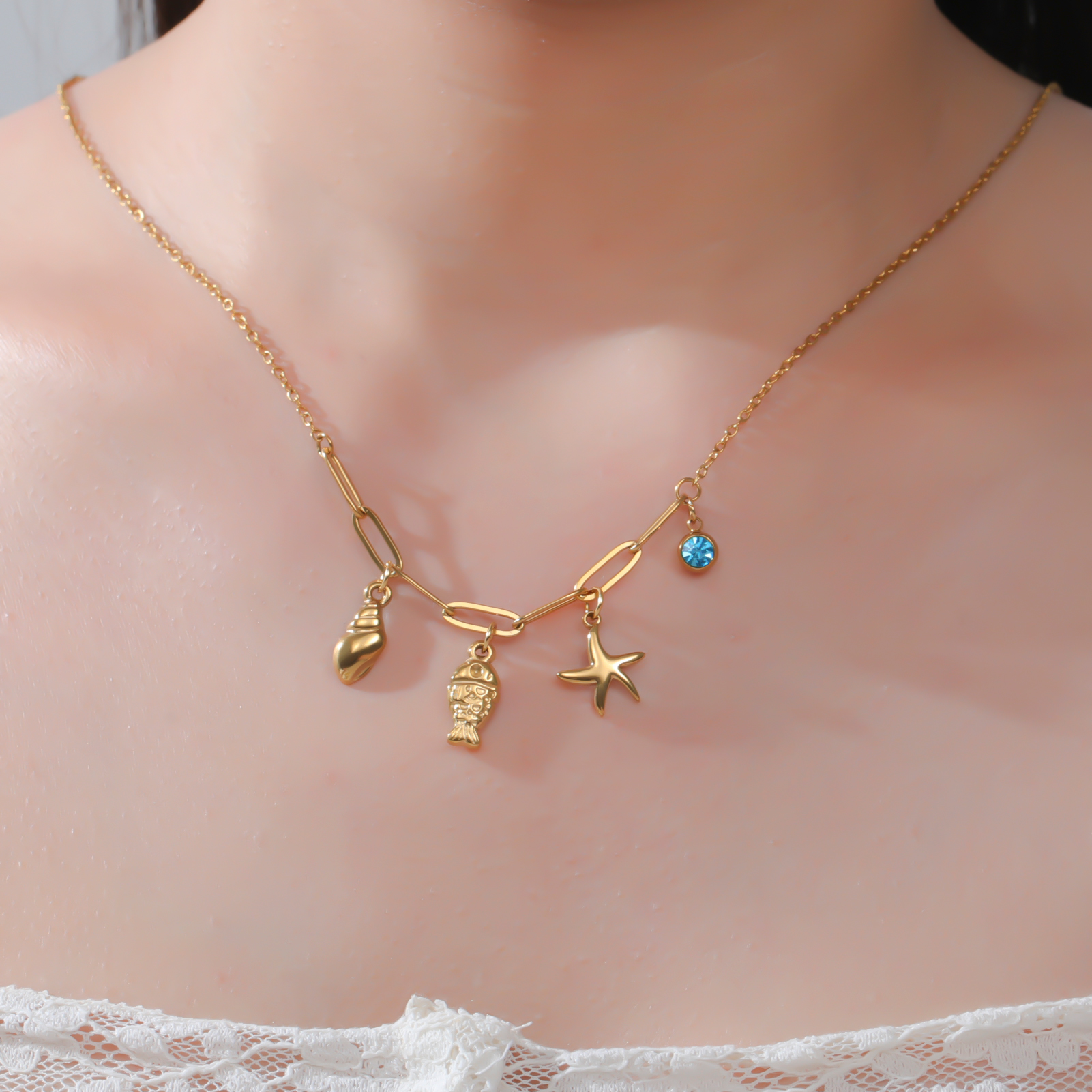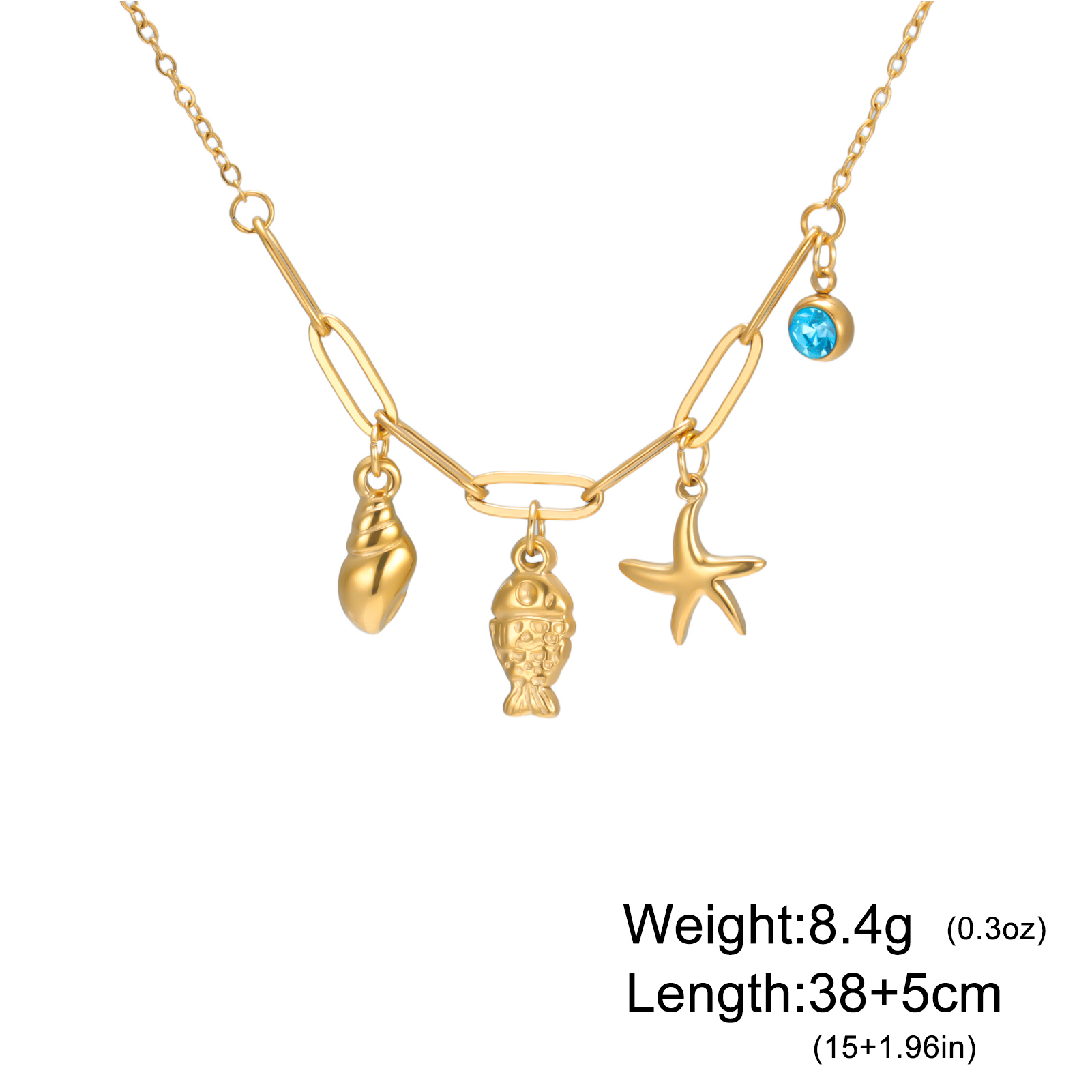 Cazador Sea Fish Conch Starfish Necklaces for Women Girls 2025 Jewelry Stainless Steel Choker Bohemian Birthday Gift Wholesale