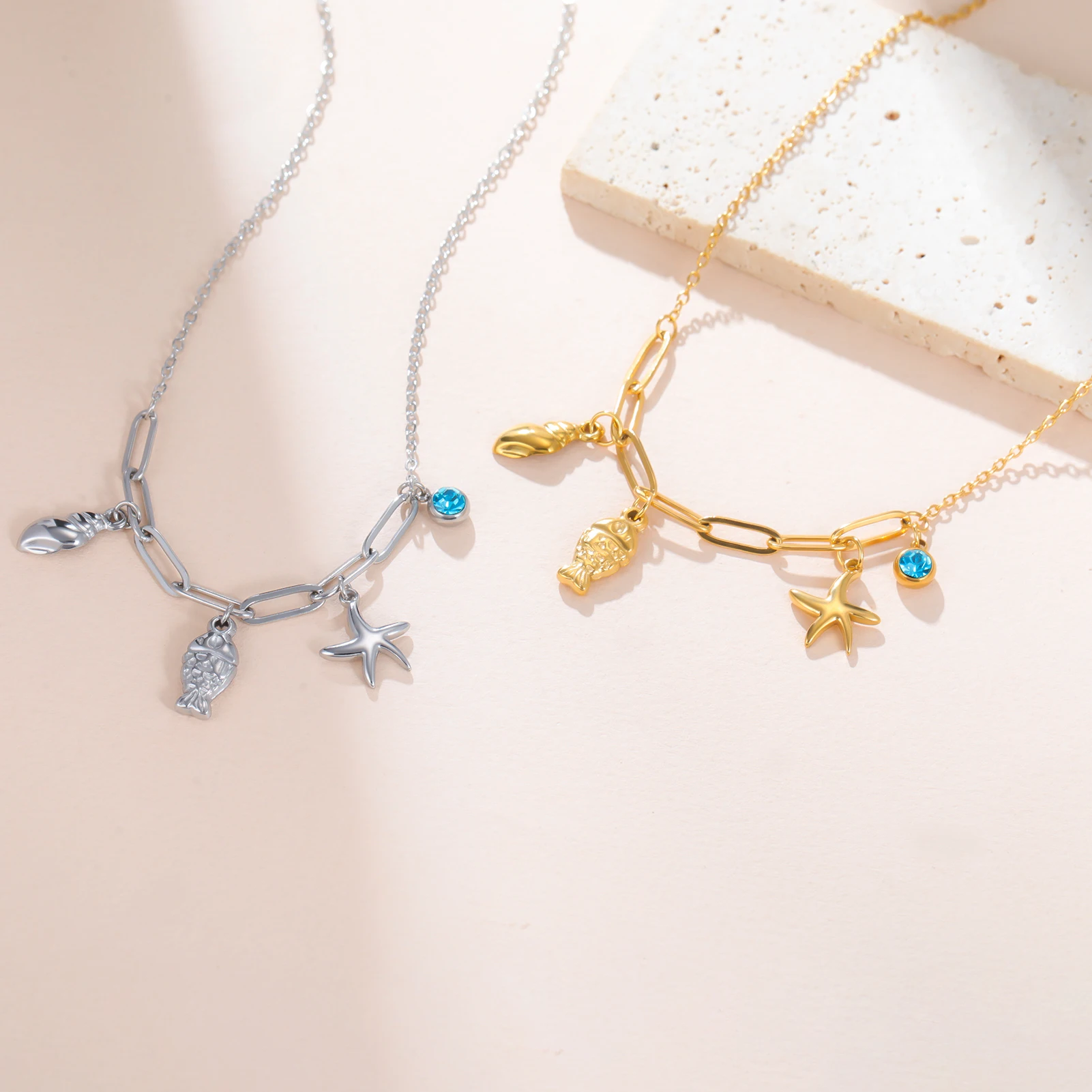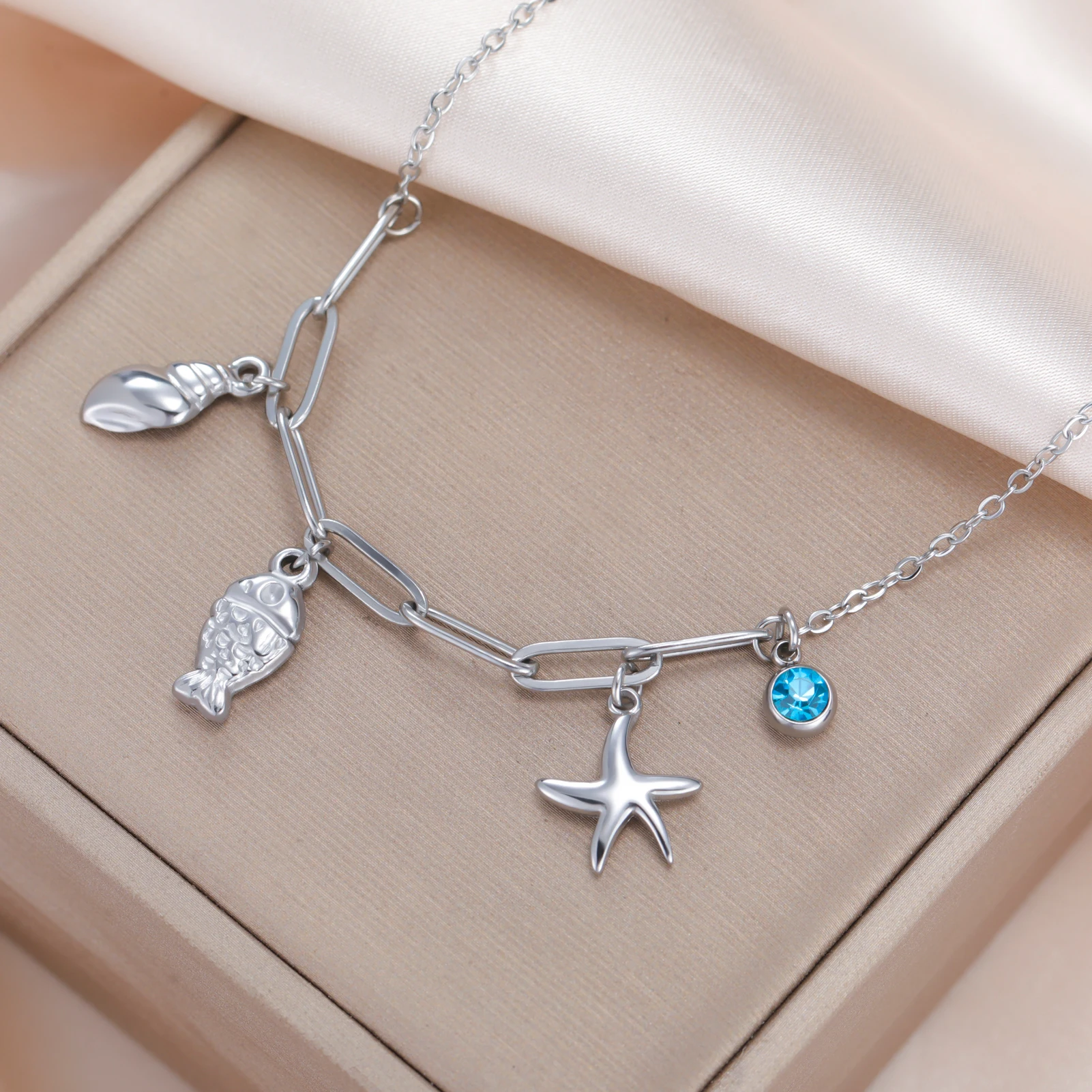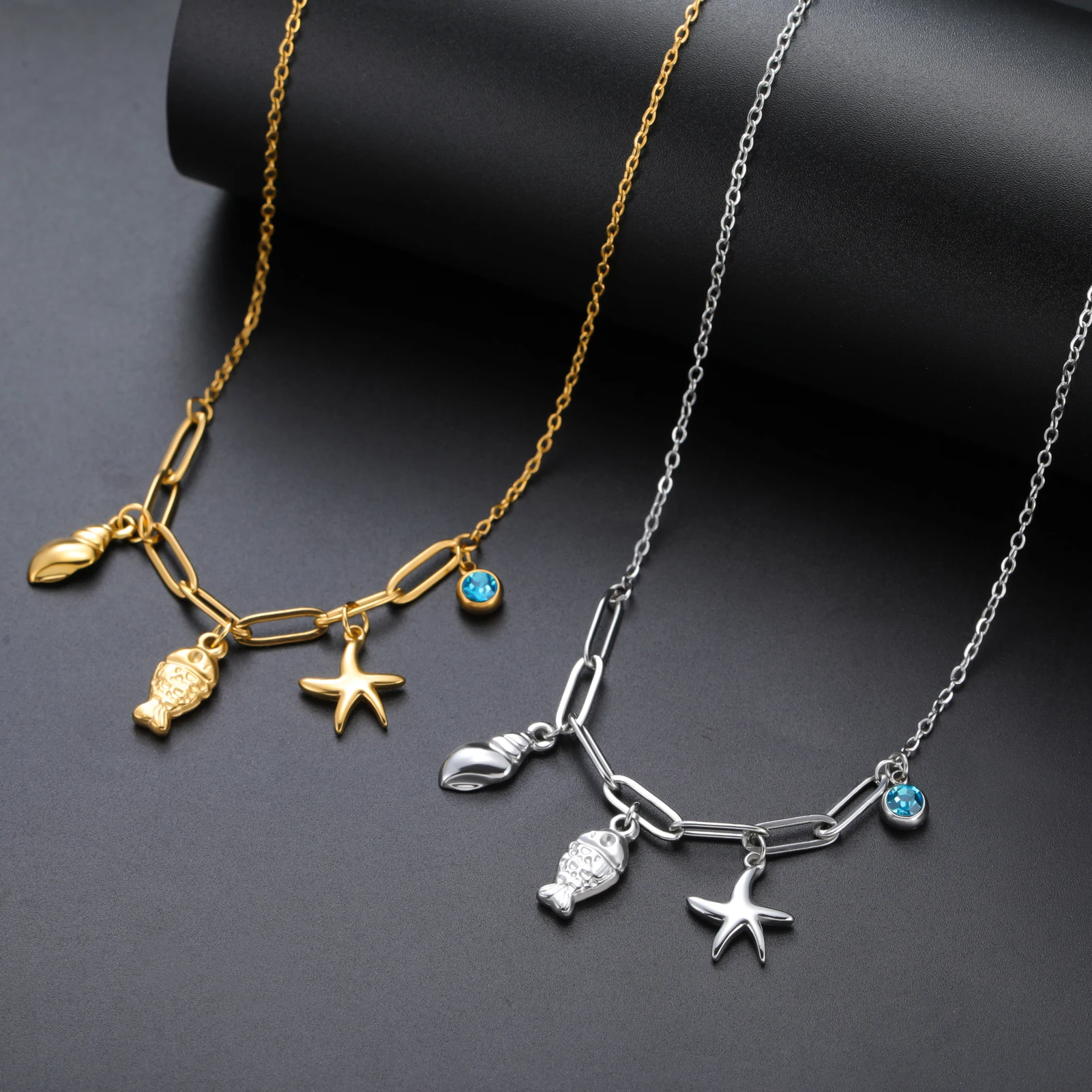 Cazador Sea Fish Conch Starfish Necklaces for Women Girls 2025 Jewelry Stainless Steel Choker Bohemian Birthday Gift Wholesale