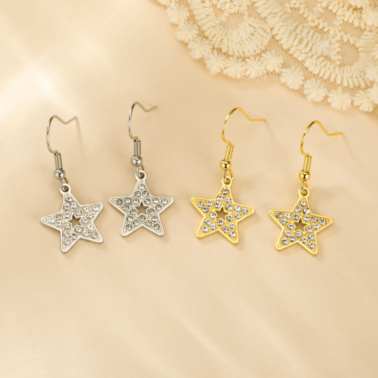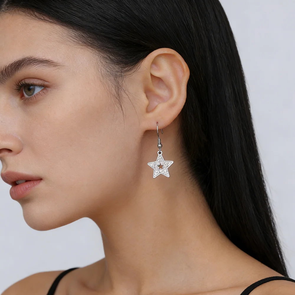 Clear Zircon Star Earrings for Women