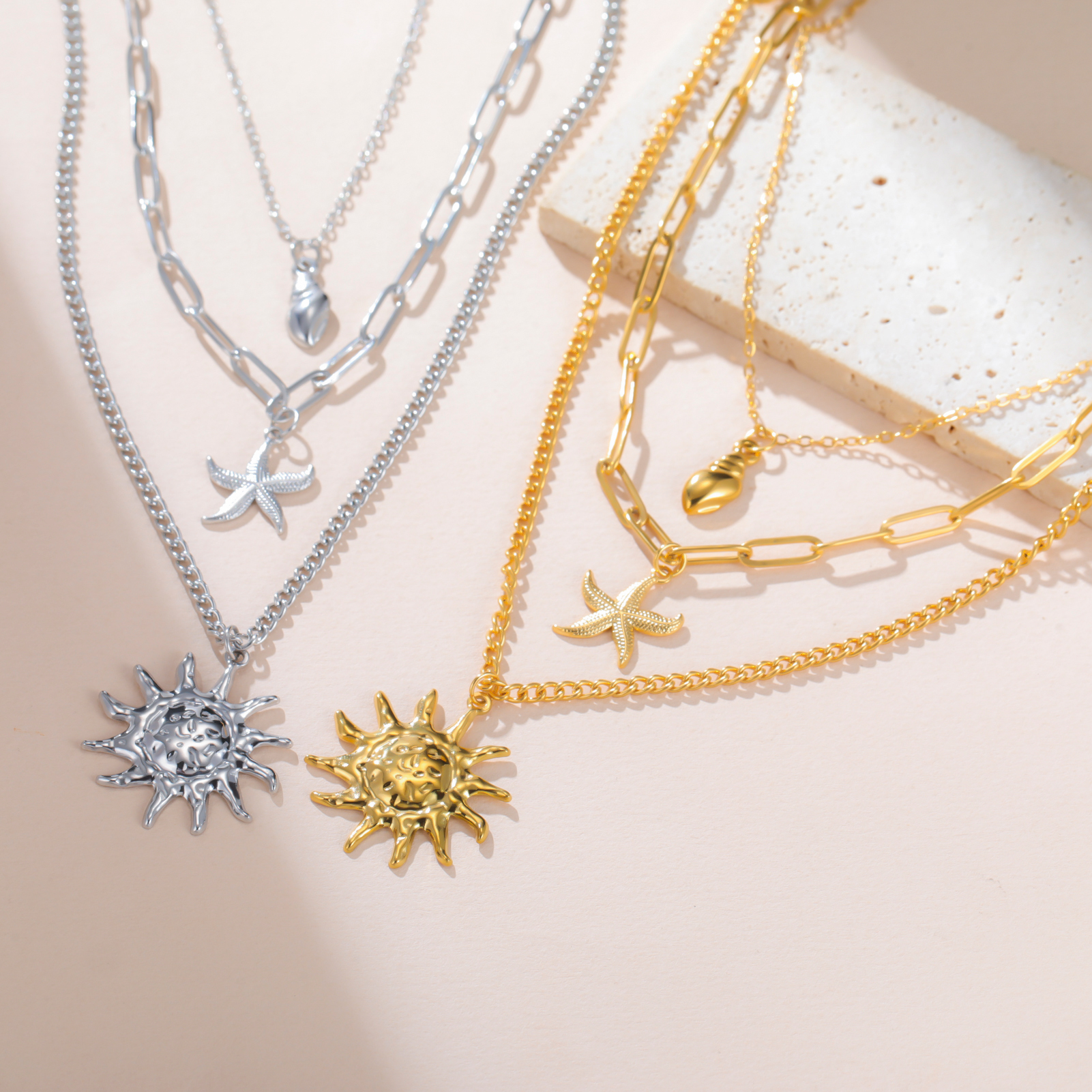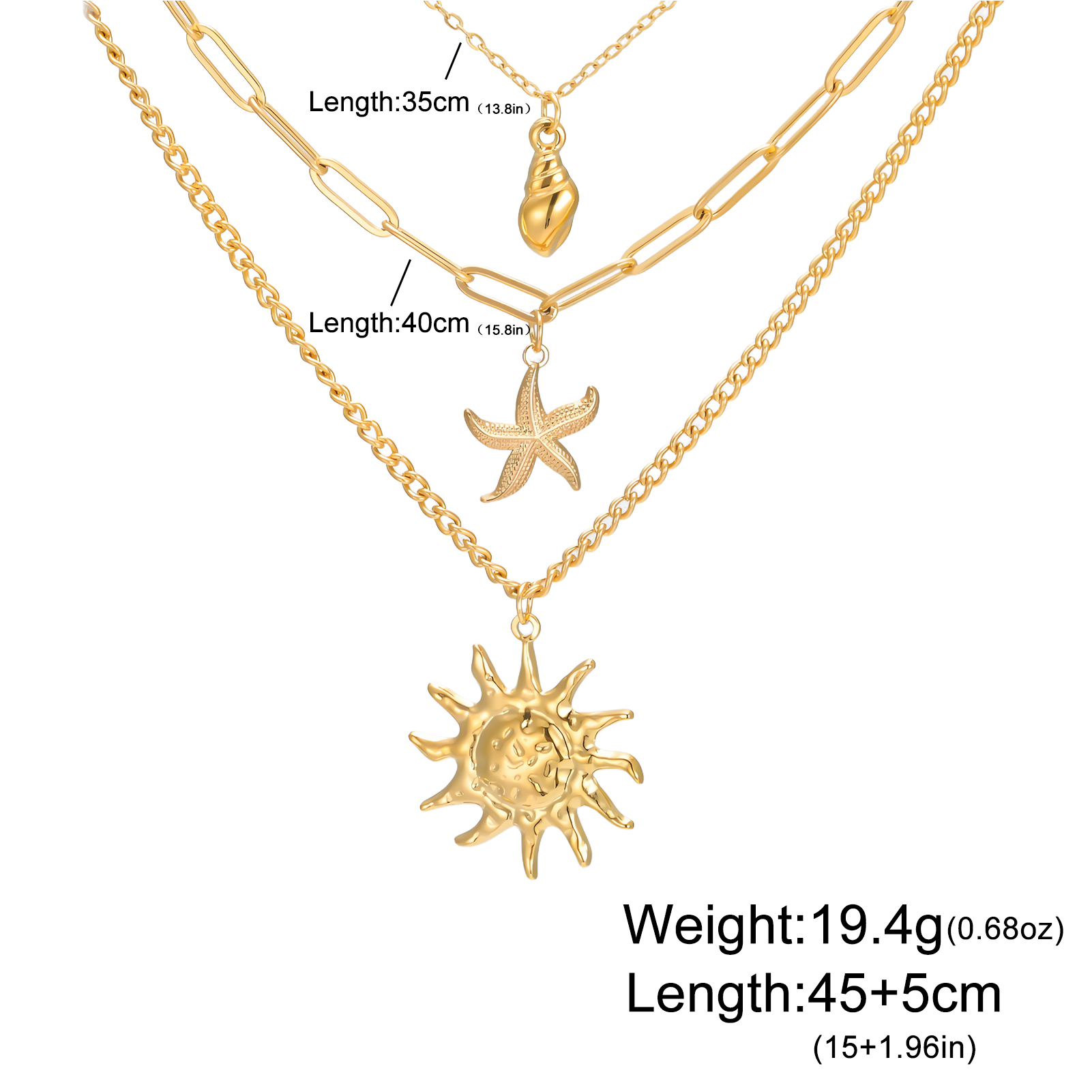 Sun Starfish Conch Pendant Necklace