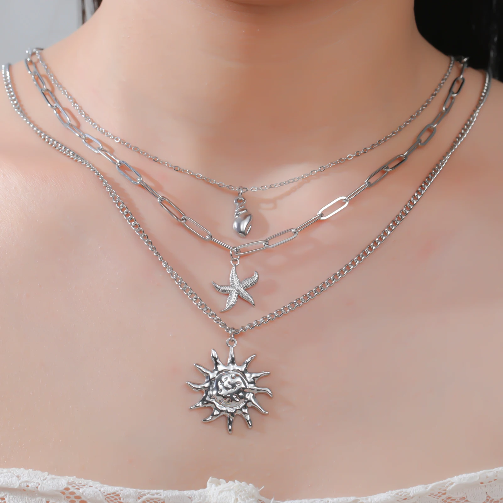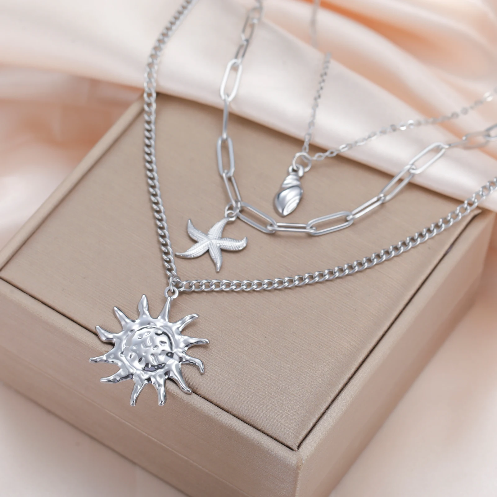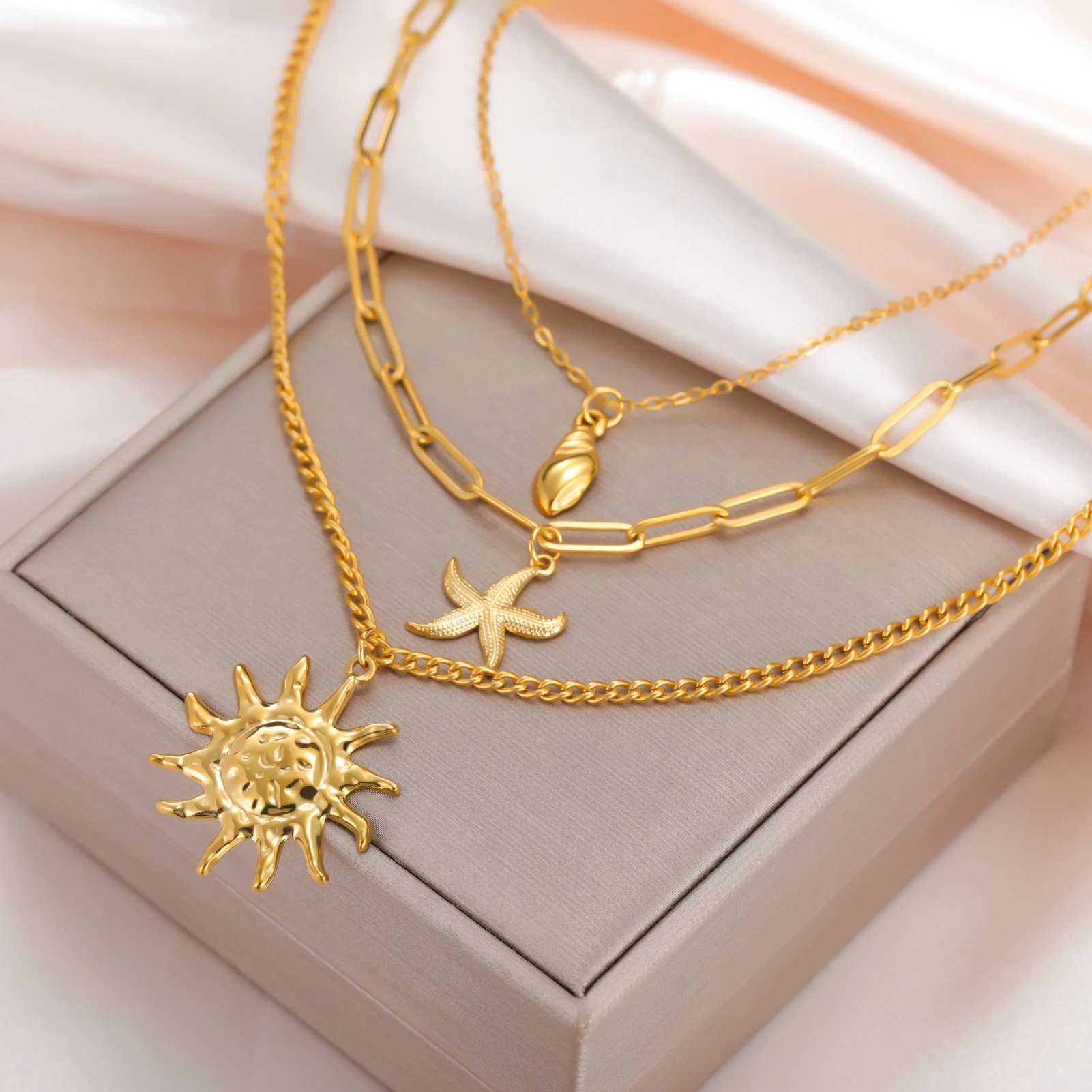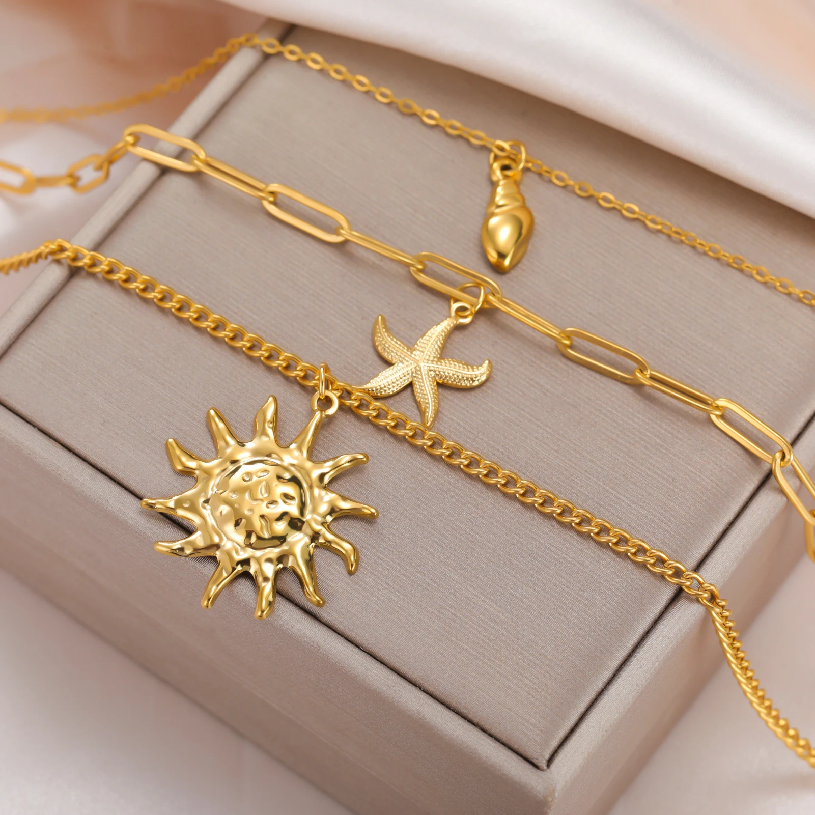 Sun Starfish Conch Pendant Necklace