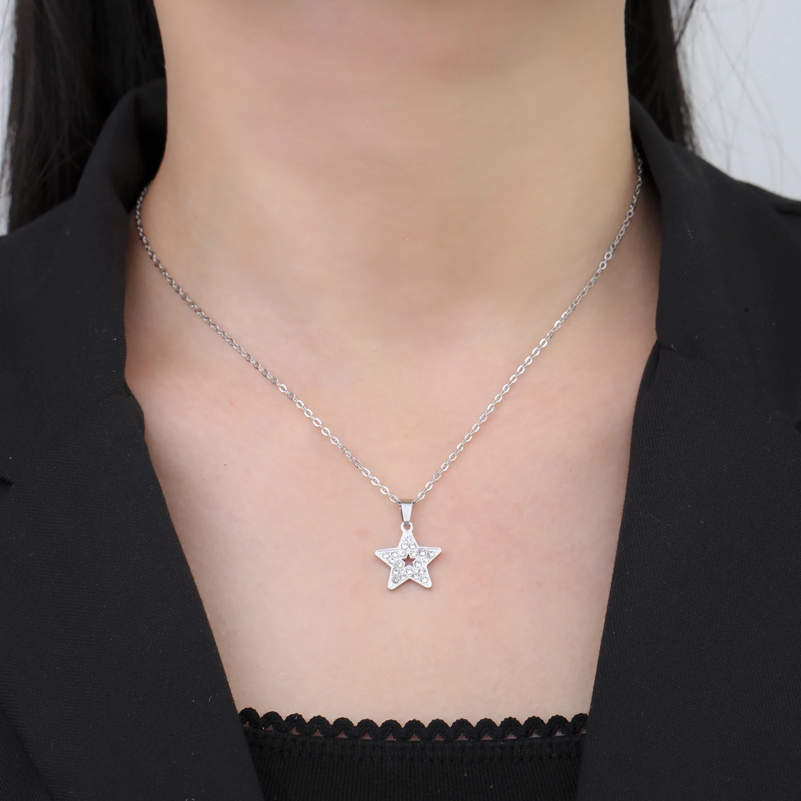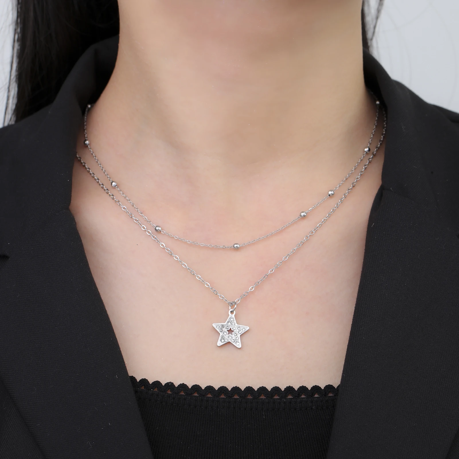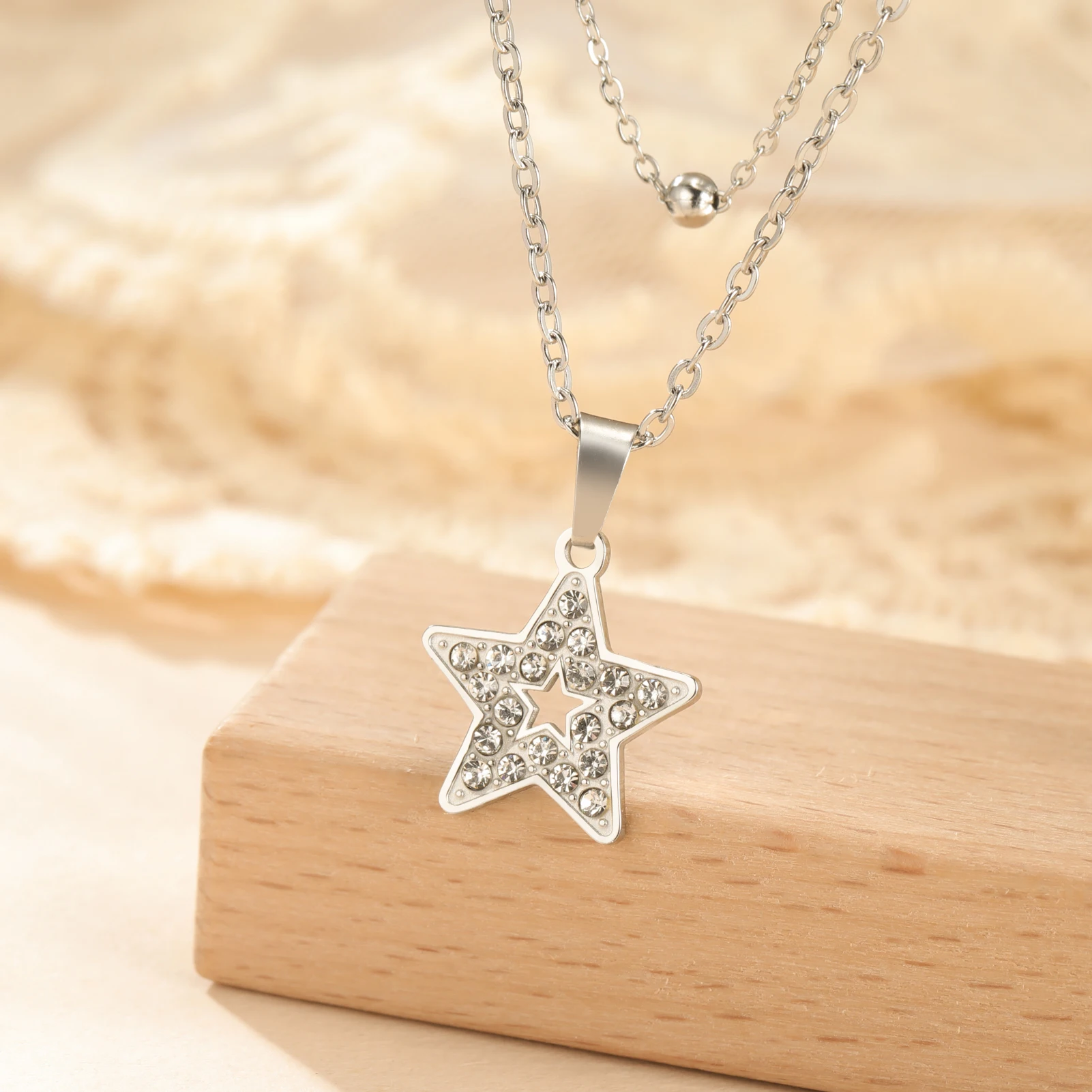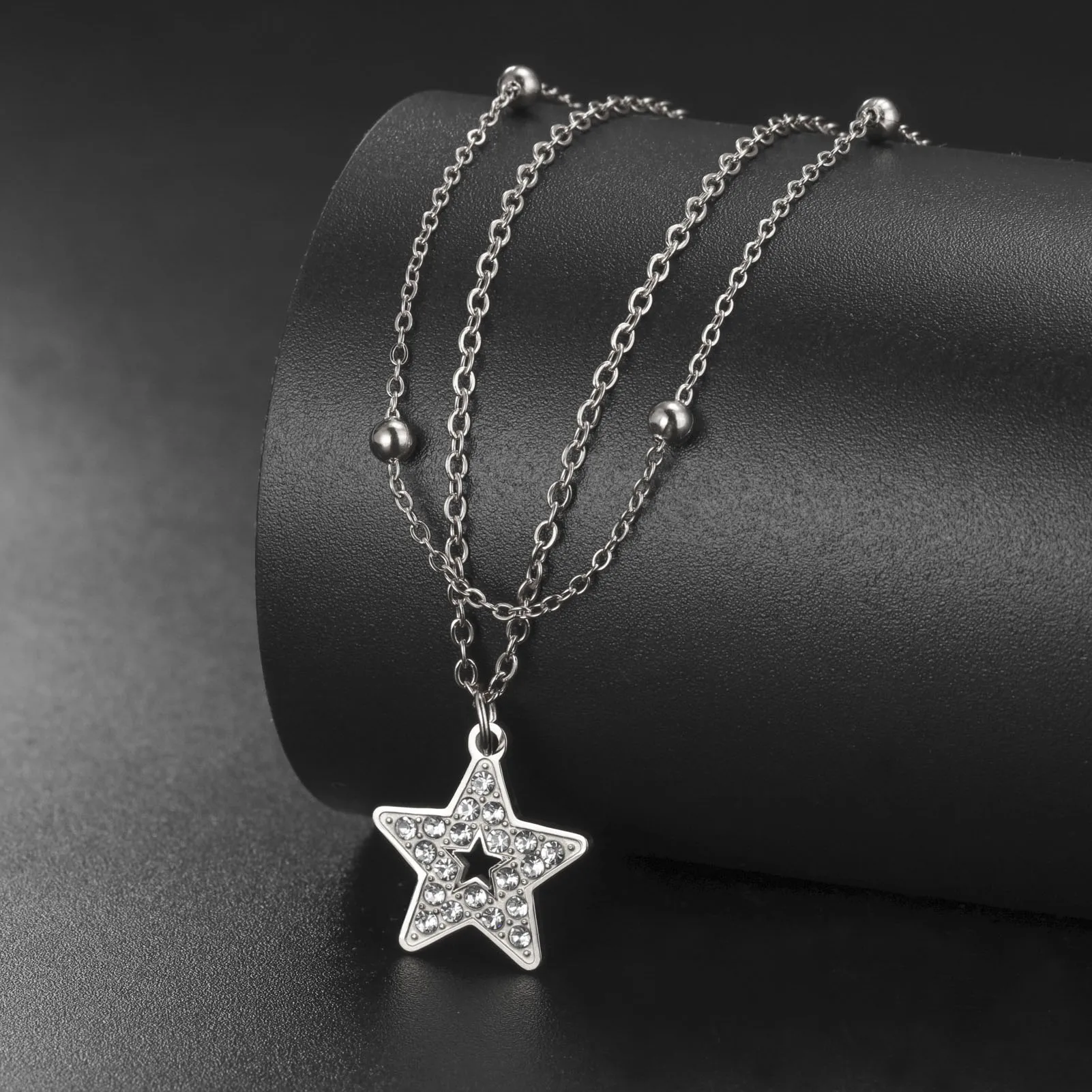 Cazador Trend Clear Zircon Star Pendant Necklaces for Women Stainless Steel Double Chains Necklace Jewelry 2026 Valentine’s Gift