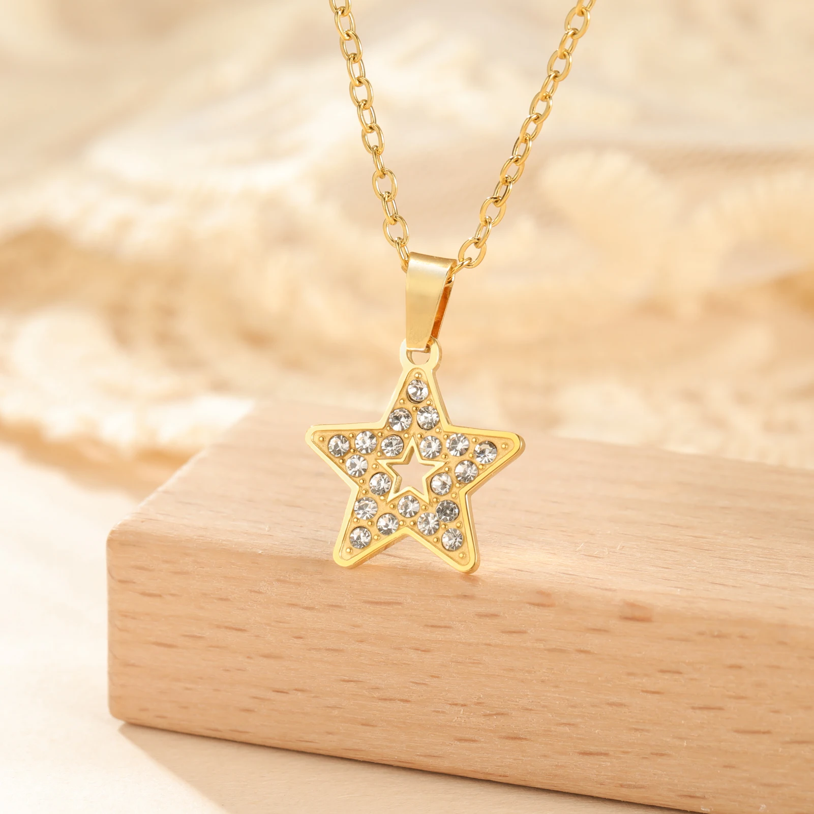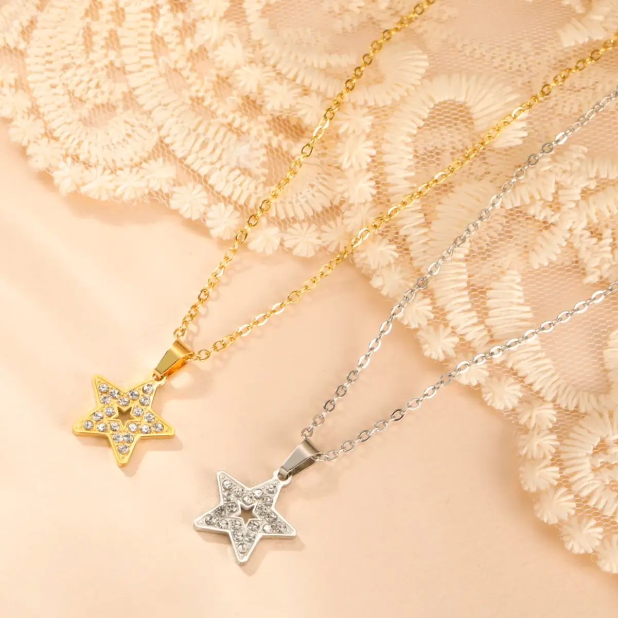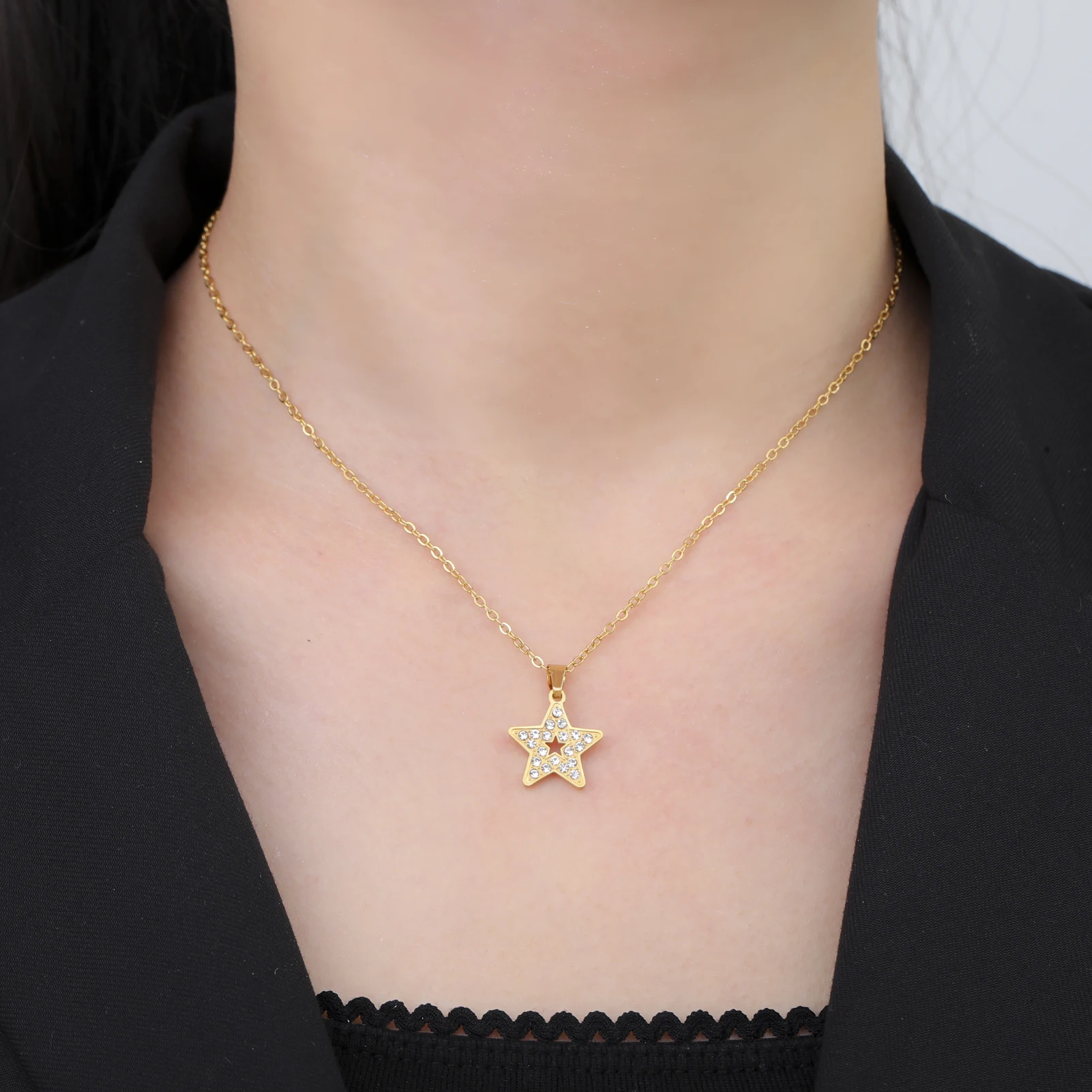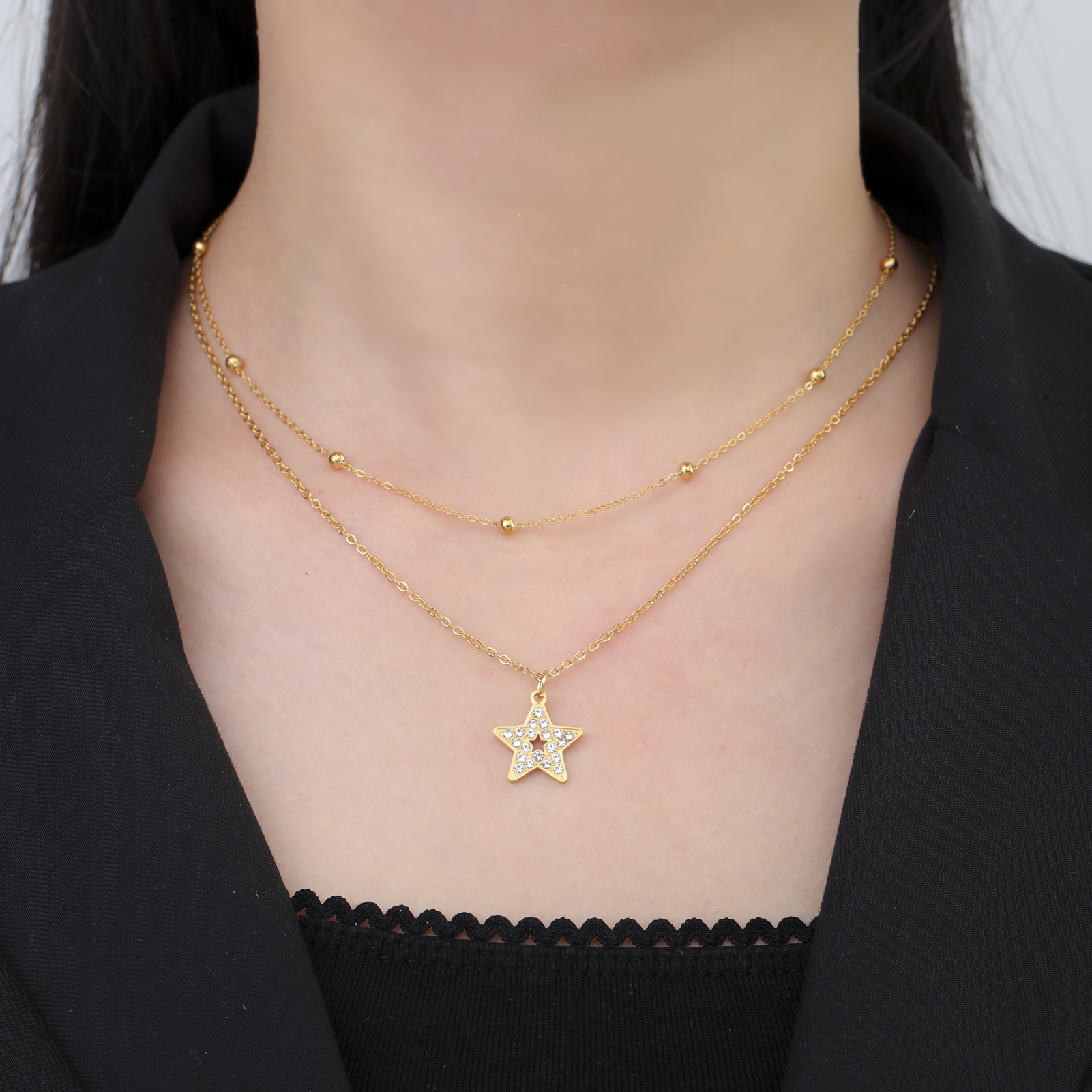 Cazador Trend Clear Zircon Star Pendant Necklaces for Women Stainless Steel Double Chains Necklace Jewelry 2026 Valentine’s Gift