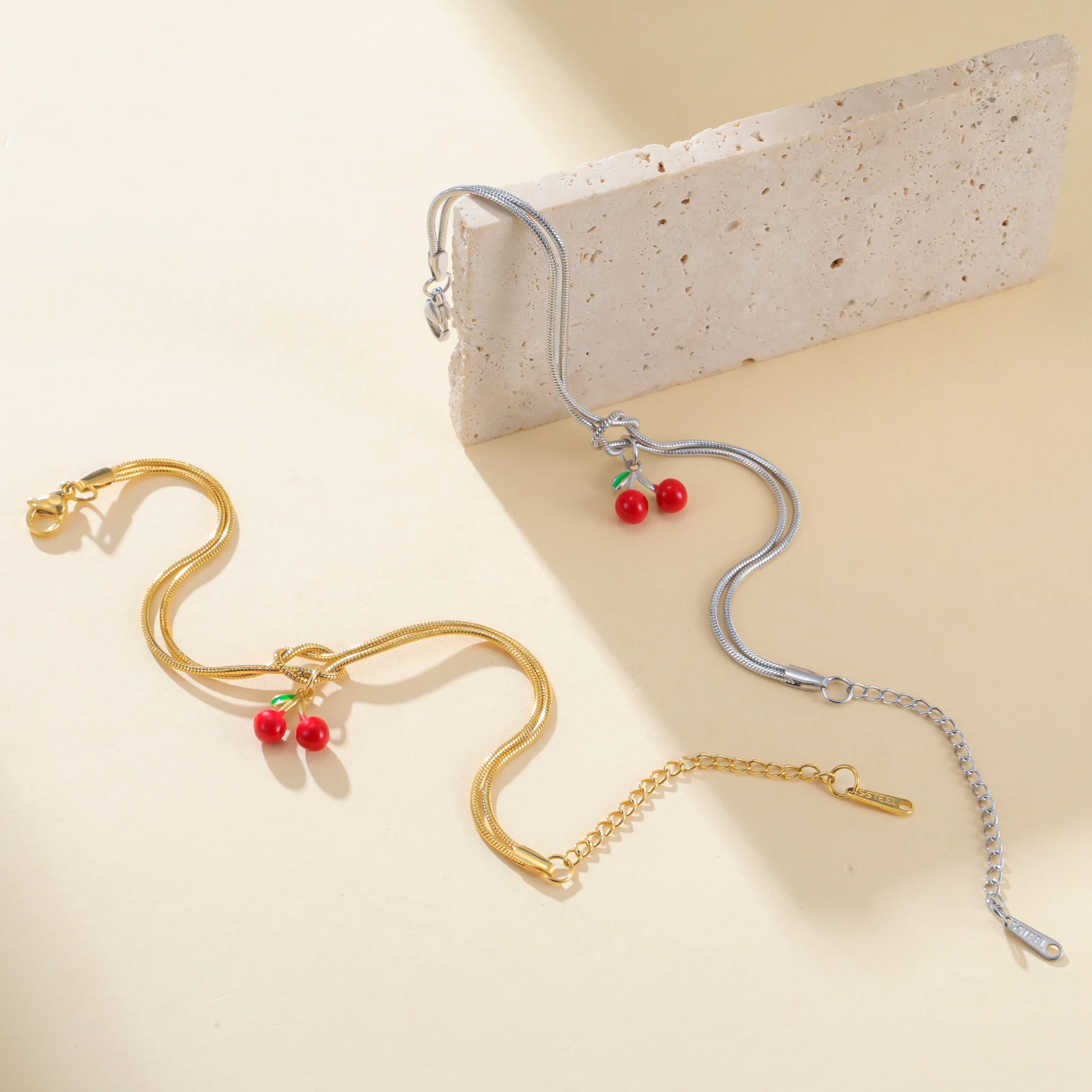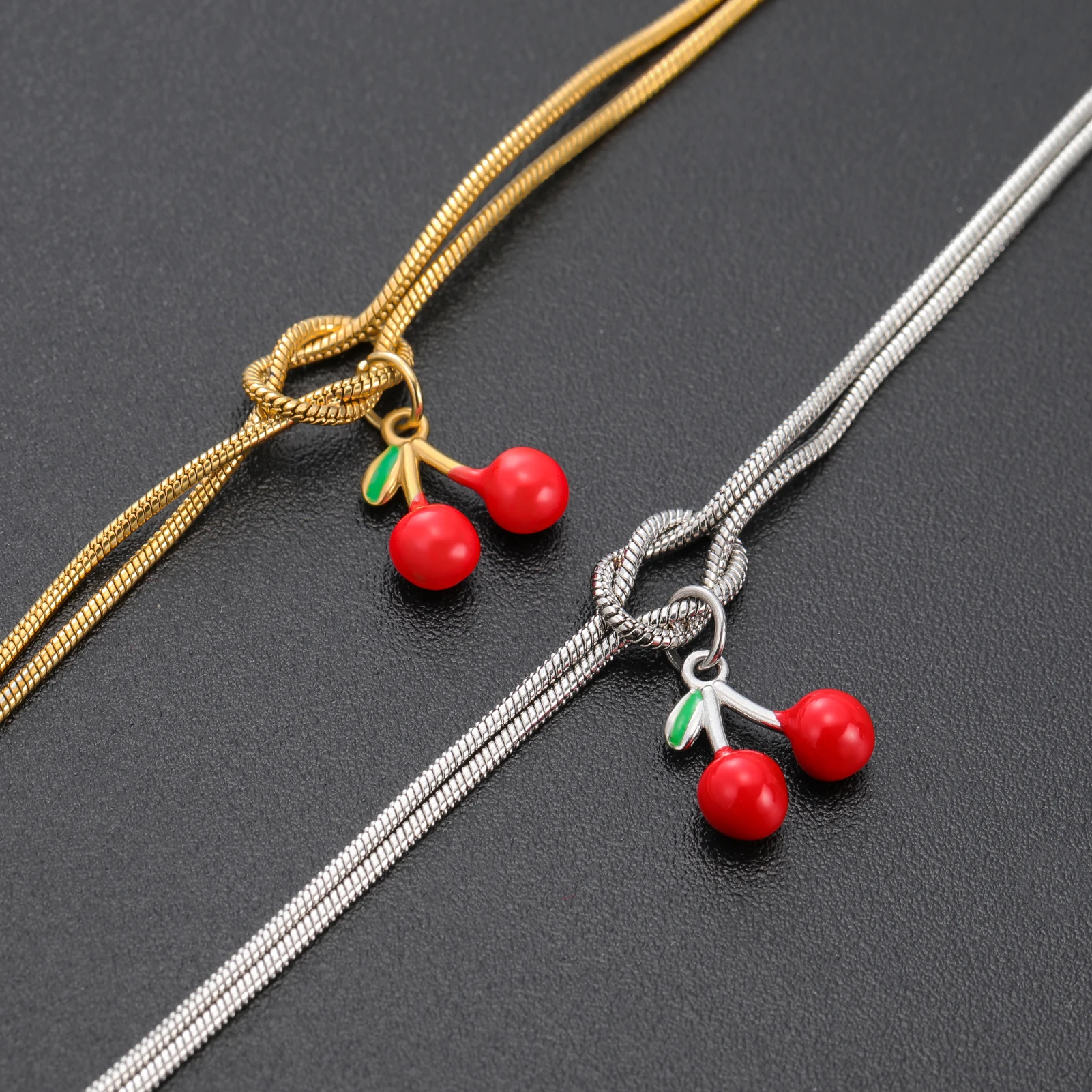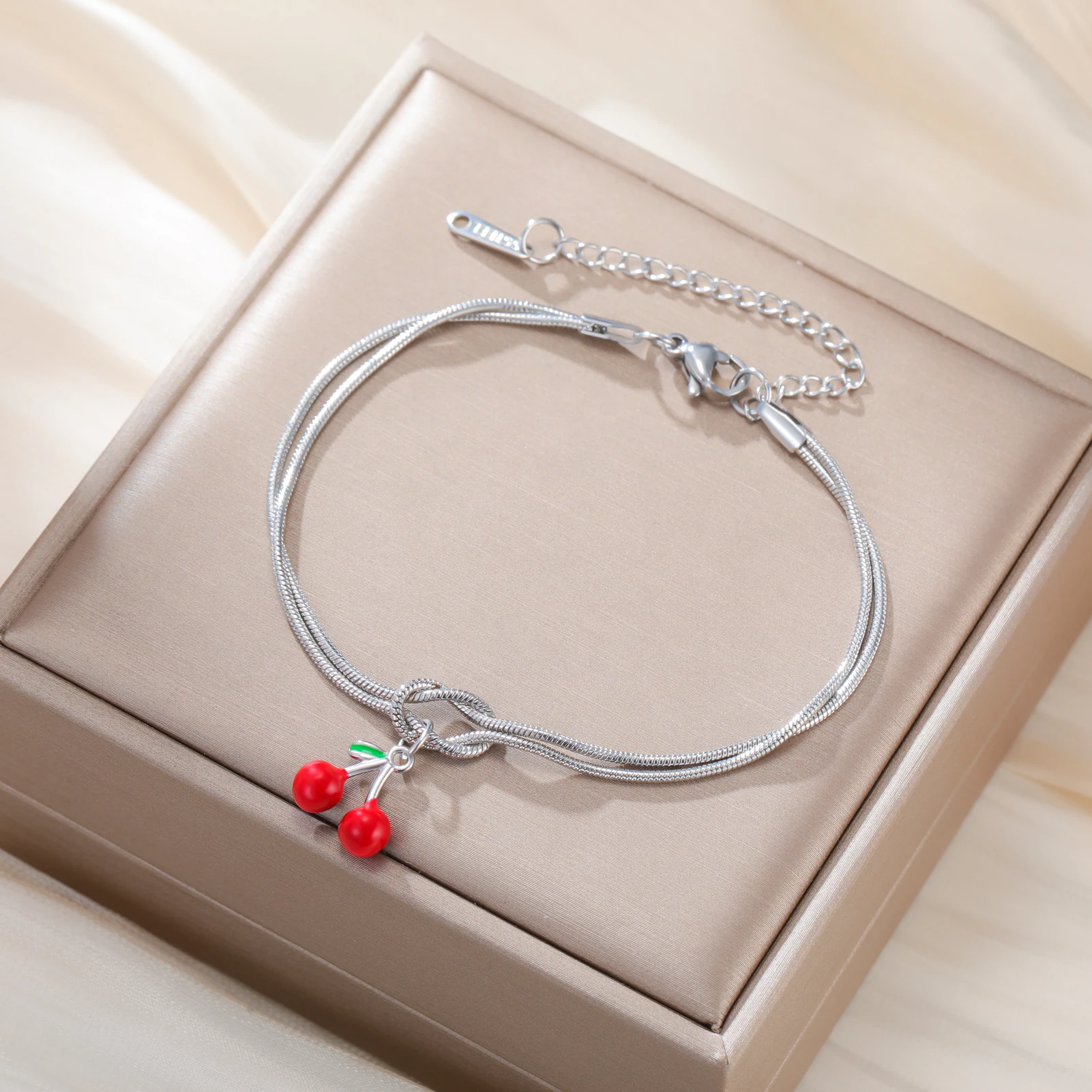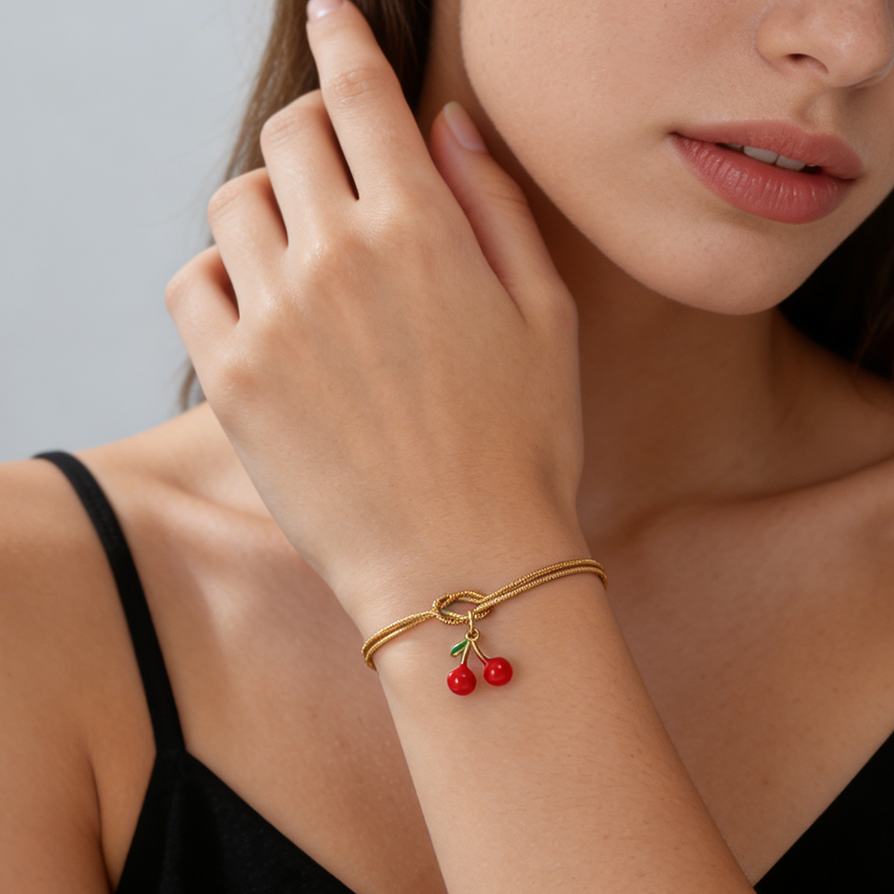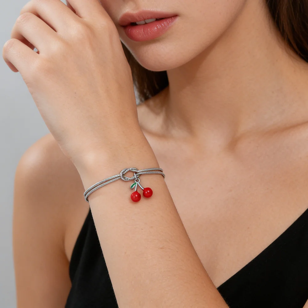 Cherry Charm Bracelet Stainless Steel Gold Color Women’s Love Knot Snake Chain Bracelets Fashion Fruit Jewelry Birthday Gift