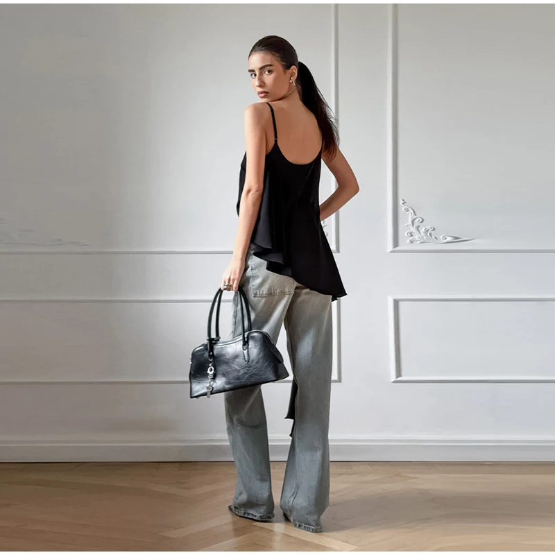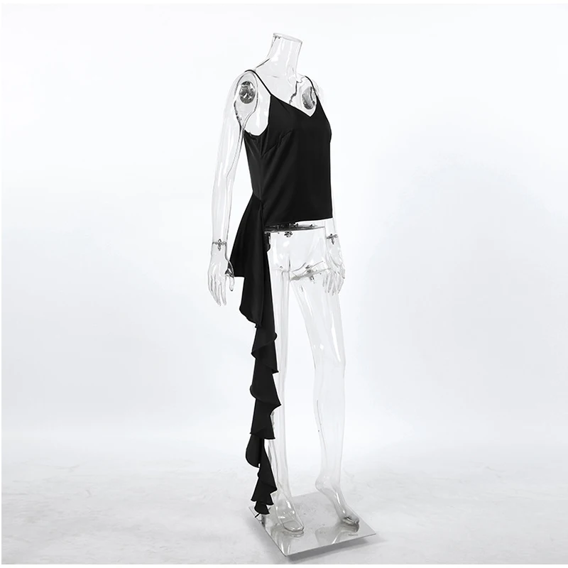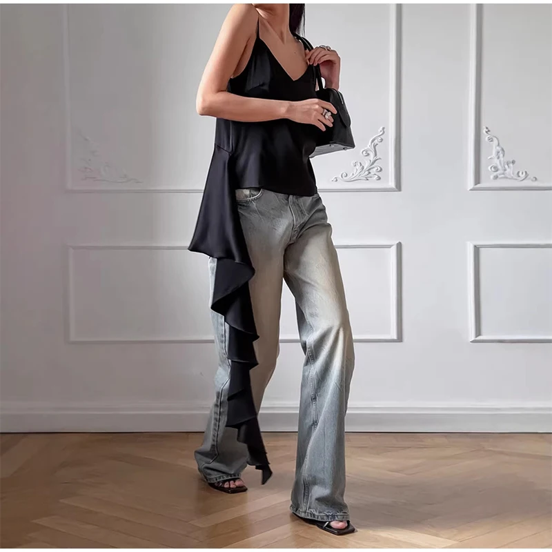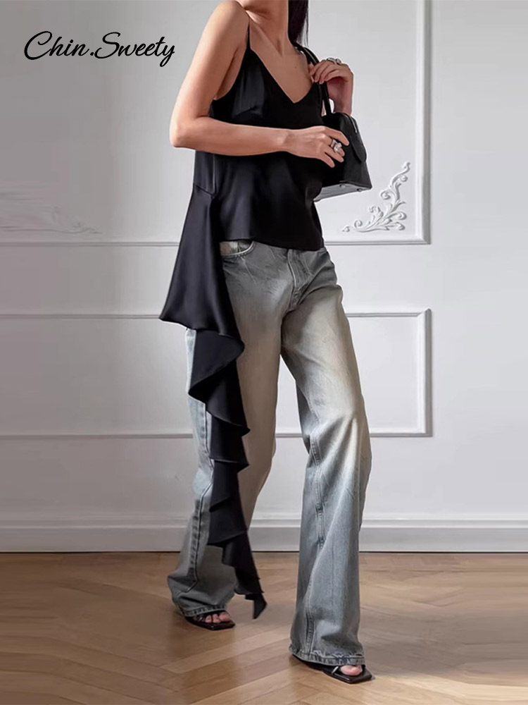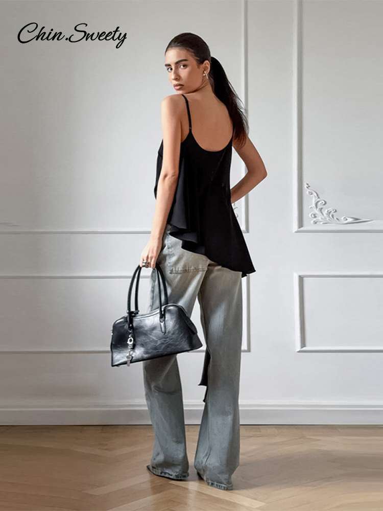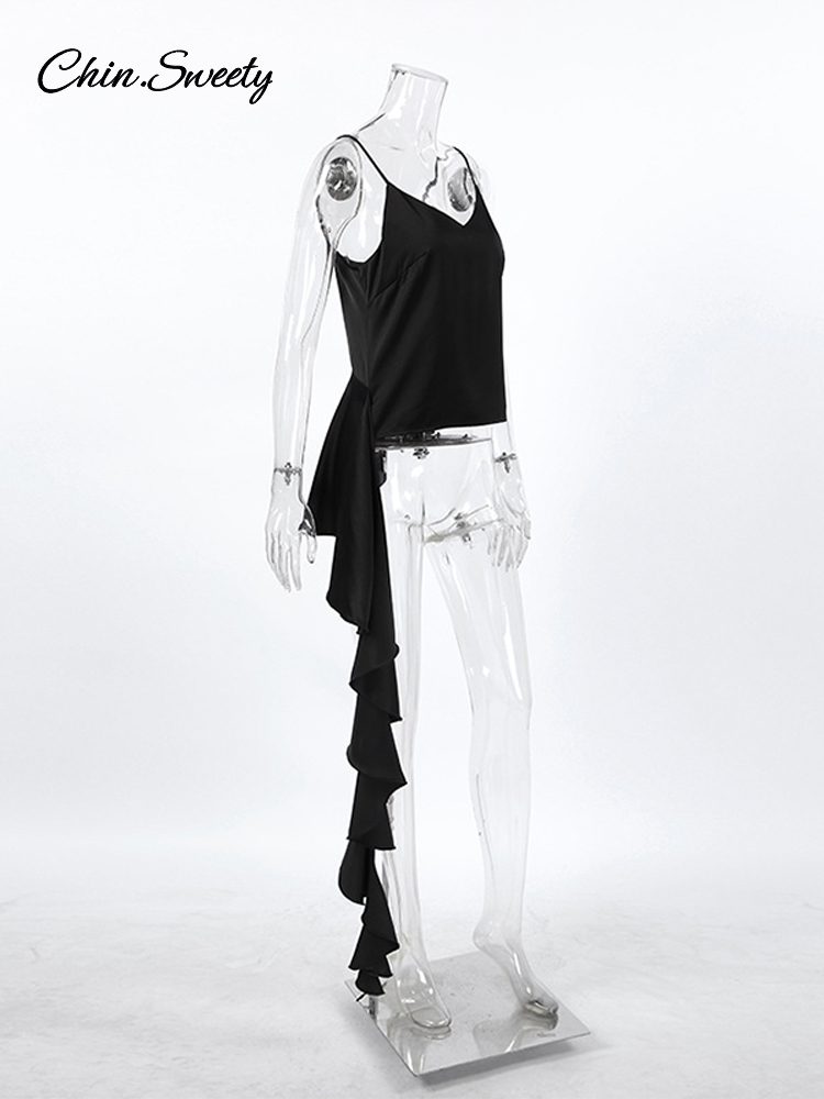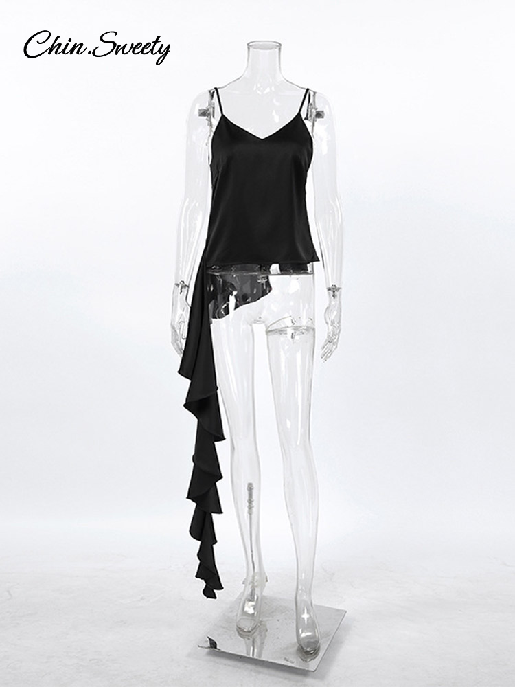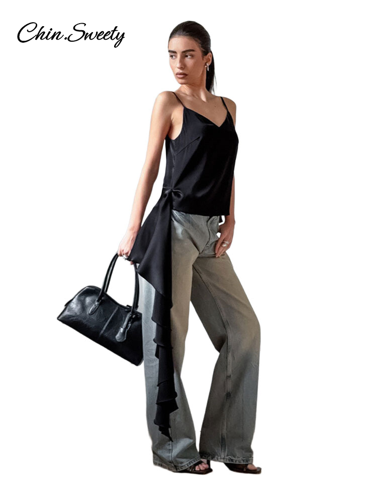 Chic Asymmetry Ribbon Top Women Street Black V Neck Sleeveless Backless Vest Lady New Fashion Casual Daily Summer Clothing 2026