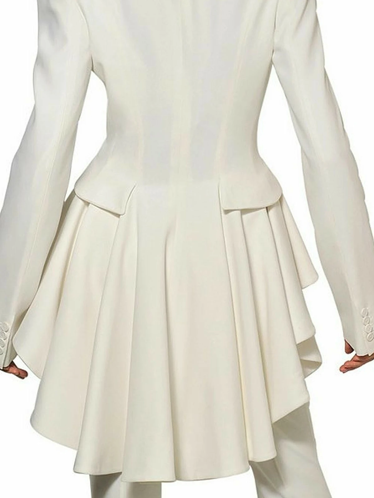 Chic Blazer Woman Spring Autumn Long Sleeve Stand Collar Solid Coat Slim Ruffle Casual Jackets Vintage Tailed Blazers Outwears