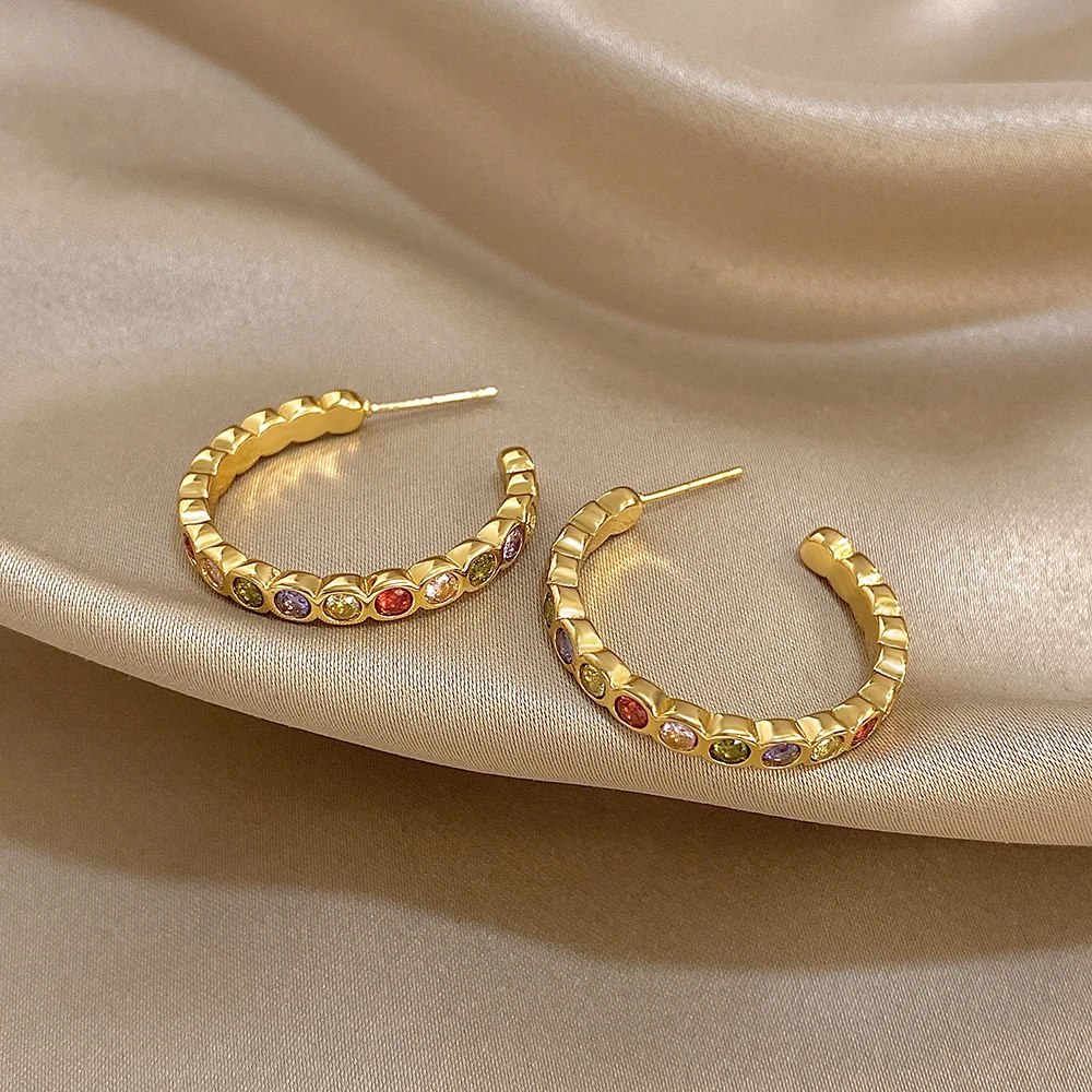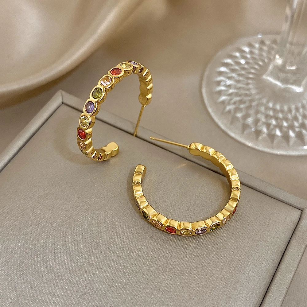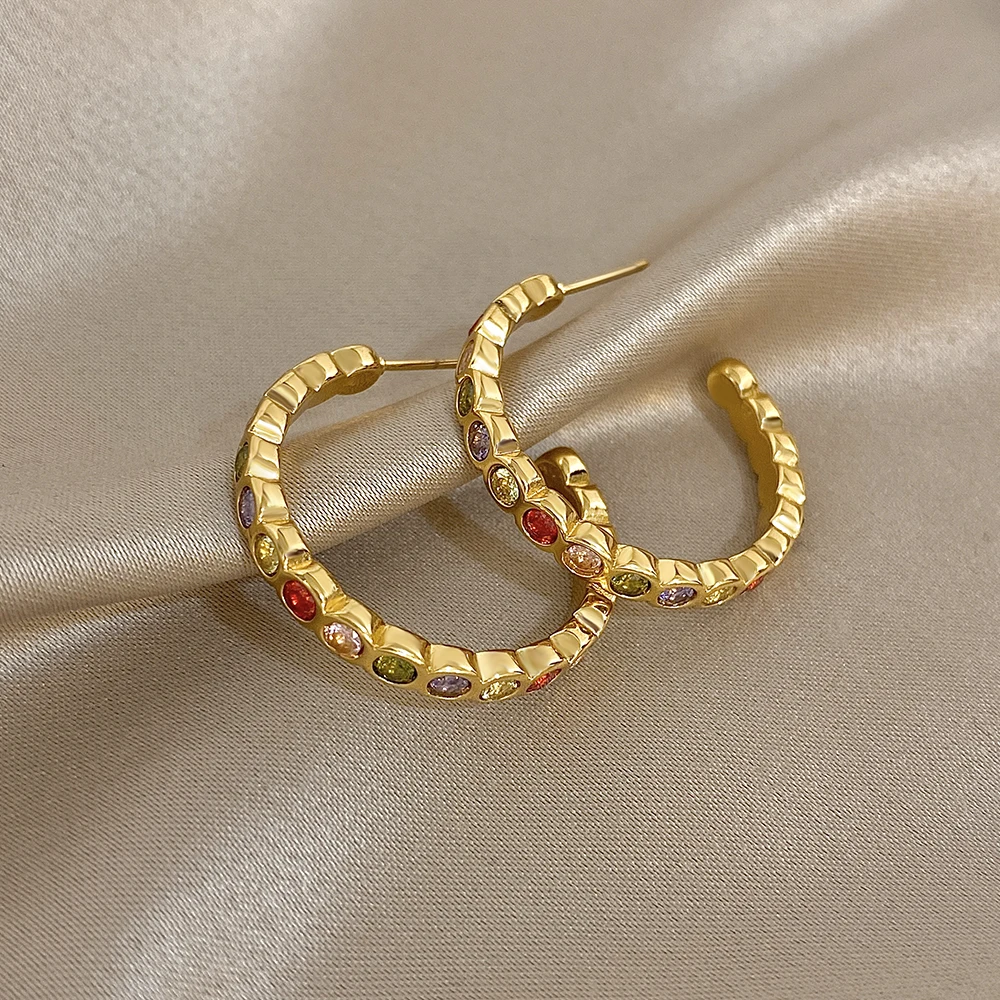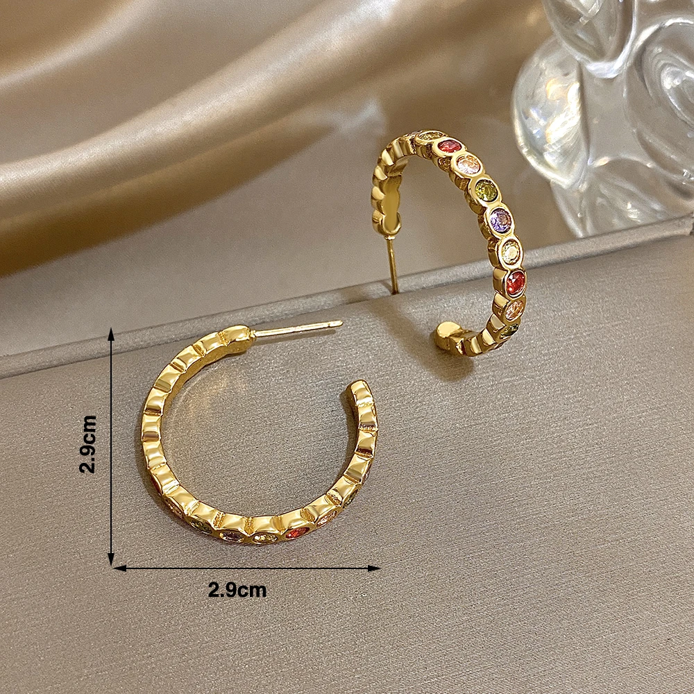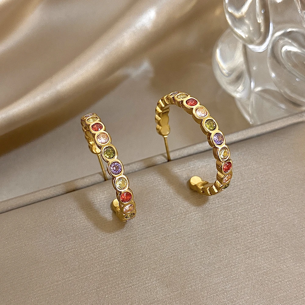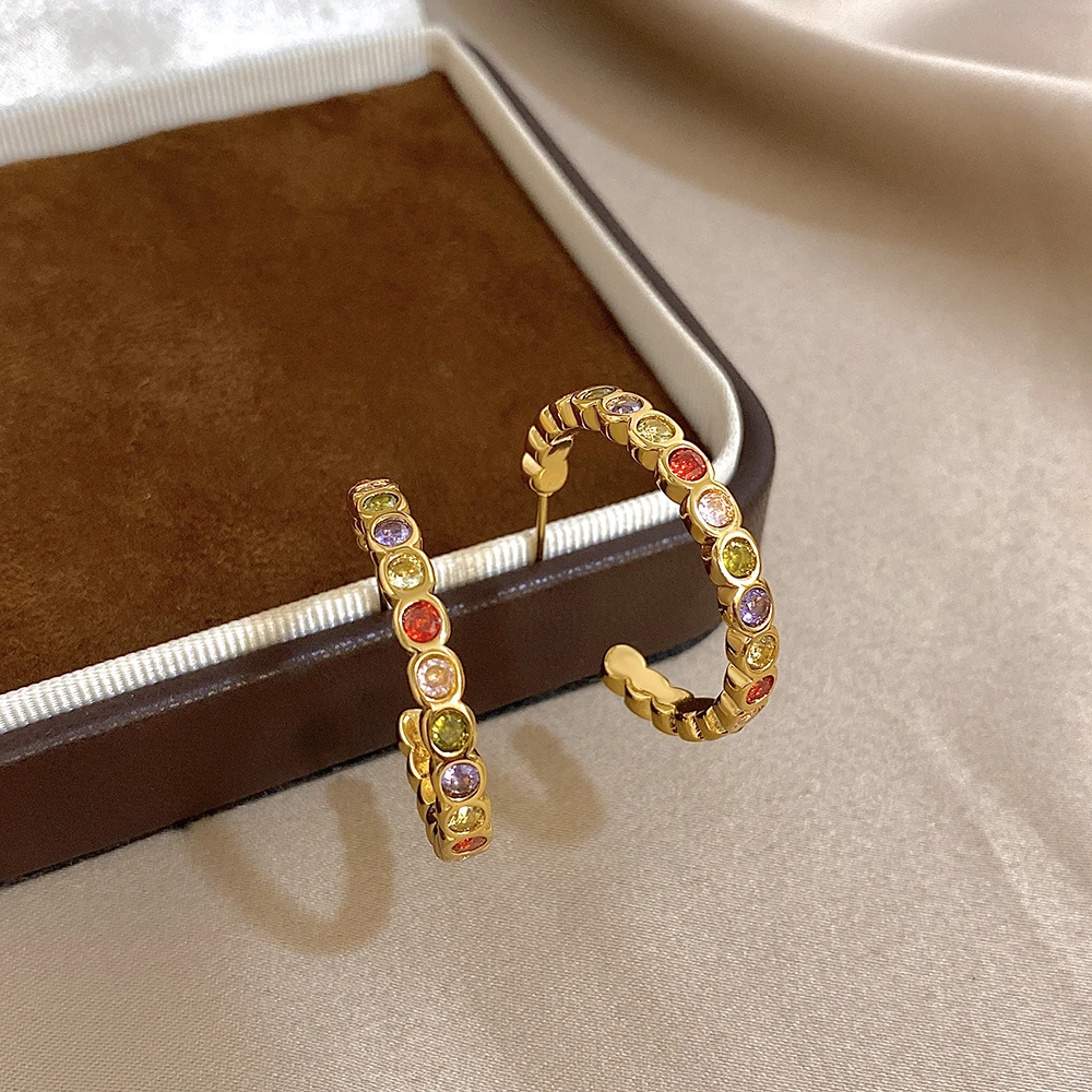 Chic Colorful Zircon Beads Stainless Steel Earrings for Women Fashion Gold Color Hoop Earrings Jewelry Gifts